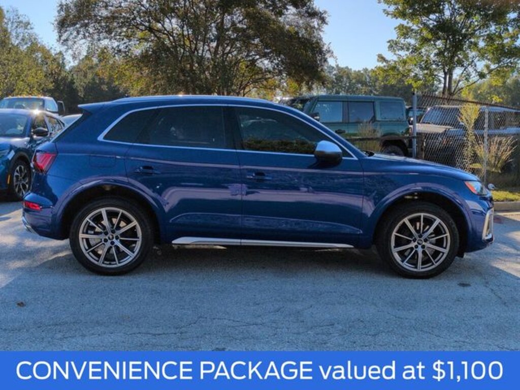 This 2022 Audi SQ5 Premium in Ultra Blue Metallic features: 4D Sport Utility, 3.0L TFSI, 8-Speed Automatic with Tiptronic, quattro, 10 Speakers, 10.1" Portriat Touchscreen, 4-Wheel Disc Brakes, ABS brakes, Adaptive suspension, AM/FM Stereo, Audi Advanced Key, Auto Emergency Braking, Auto High-beam Headlights, Auto LED Headlights, Auto-Dimming Power Folding Exterior Mirrors, Auto-dimming Rear-View mirror, Automatic temperature control, Backup Camera, Blind Spot Monitoring, Bluetooth w/ Audio Streaming, Brake assist, Cold Weather Package, Compass, Convenience Package, Delay-off headlights, Driver Seat Memory, Emergency communication system: Audi connect CARE, Exterior Parking Camera Rear, Four wheel independent suspension, Foward Collison Alert, Front & Rear Park Assist, Front Bucket Seats, Front Center Armrest, Front dual zone A/C, Front fog lights, Garage door transmitter: HomeLink, Heated door mirrors, Heated front seats, Heated Front Sport Seats, Heated Steering Wheel, Illuminated entry, Leather Seats, Leather Shift Knob, Leather/Dinamica Seating Surfaces, Low tire pressure warning, Memory Package, Outside temperature display, Overhead console, Panic alarm, Panoramic Sunroof, Panoramic Sunroof/Moonroof, Parking Sensors, Power door mirrors, Power driver seat, Power Liftgate, Power Mirror Package, Power Package, Power passenger seat, Power steering, Power windows, Radio data system, Rain sensing wipers, Rear air conditioning, Rear Climate Package, Rear Cross Traffic Alert, Rear fog lights, Rear window wiper, Remote keyless entry, Reverse Brake Assist, Reverse Sensing, Roof rack, Safety Package, Security system, SiriusXM All Access Service, Speed control, Speed-sensing steering, Speed-Sensitive Wipers, Split folding rear seat, Spoiler, Steering wheel mounted audio controls, Tachometer, Telescoping steering wheel, Tilt steering wheel, Traction control, Trip computer, Turn signal indicator mirrors, Wheels: 20" 10-Spoke-Star Design.
