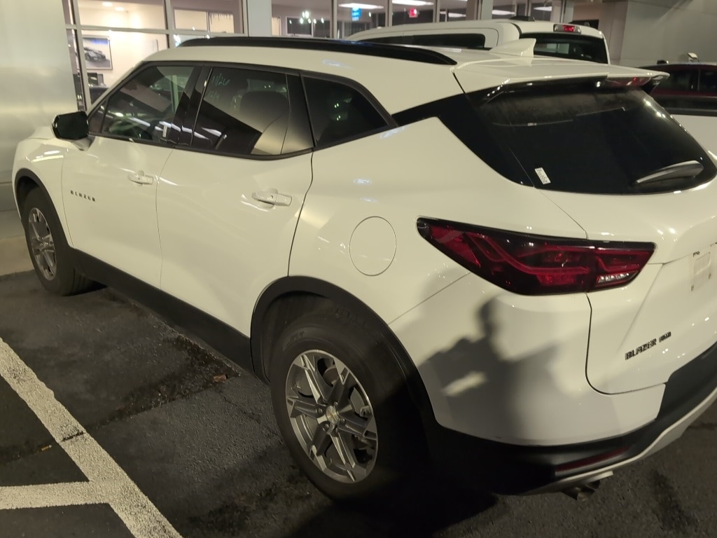 Summit White 2023 Chevrolet Blazer LT AWD AWD LT AWD 10.2" Digital Driver Cluster, Android Auto, Apple Carplay, Auto Emergency Braking, Auto LED Headlights, Backup Camera, Blind Spot Monitoring, Bluetooth w/ Audio Streaming, Following Distance Indicator, Foward Collison Alert, Front Pedestrian Braking, Lane Change Alert, Lane Departure Warning, Lane Keeping System, Leather Seats, LT Package, Power Mirror Package, Power Package, Push Button Start, Rear Cross Traffic Alert, Remote Start, Safety Package, 4D Sport Utility, 3.6L V6 SIDI, 9-Speed Automatic with Overdrive, AWD, 170 Amp Alternator, 4-Wheel Disc Brakes, 6-Speaker Audio System Feature, 6-Way Power Front Passenger Seat Adjuster, 8-Way Power Driver Seat Adjuster, ABS brakes, AM/FM radio: SiriusXM with 360L, Apple CarPlay/Android Auto, Auto High-beam Headlights, Auto-dimming door mirrors, Auto-dimming Rear-View mirror, Automatic temperature control, Black Roof-Mounted Side Rails, Brake assist, Compass, Delay-off headlights, Driver Confidence Package, Electronic Stability Control, Emergency communication system: OnStar and Chevrolet connected services capable, Four wheel independent suspension, Front Center Armrest, Front dual zone A/C, Fully automatic headlights, Garage door transmitter, Heated door mirrors, Heated Driver & Front Passenger Seats, Heated front seats, Illuminated entry, Inside Rear-View Auto-Dimming Mirror, Lane Change Alert w/Side Blind Zone Alert, Leather Shift Knob, Low tire pressure warning, Outside Heated Power-Adjustable Body-Color Mirrors, Outside temperature display, Overhead console, Panic alarm, Passenger vanity mirror, Perforated Leather-Appointed Seat Trim, Power door mirrors, Power Driver Lumbar Control, Power driver seat, Power Liftgate, Power passenger seat, Power steering, Power windows, Preferred Equipment Group 3LT, Premium audio system: Chevrolet Infotainment 3 Plus, Radio data system, Radio: Chevrolet Infotainment 3 Plus System, Rear Cross Traffic Alert, Rear Park Assist w/Audible Warning, Rear Power Programmable Liftgate, Rear seat center armrest, Rear window wiper, Remote keyless entry, Ride & Handling Suspension, Security system, SiriusXM w/360L, Speed control, Speed-sensing steering, Split folding rear seat, Spoiler, Steering wheel mounted audio controls, Telescoping steering wheel, Tilt steering wheel, Traction control, Trip computer, Turn signal indicator mirrors, Universal Home Remote, Variably intermittent wipers, Wheels: 18" Grazen Metallic Aluminum.