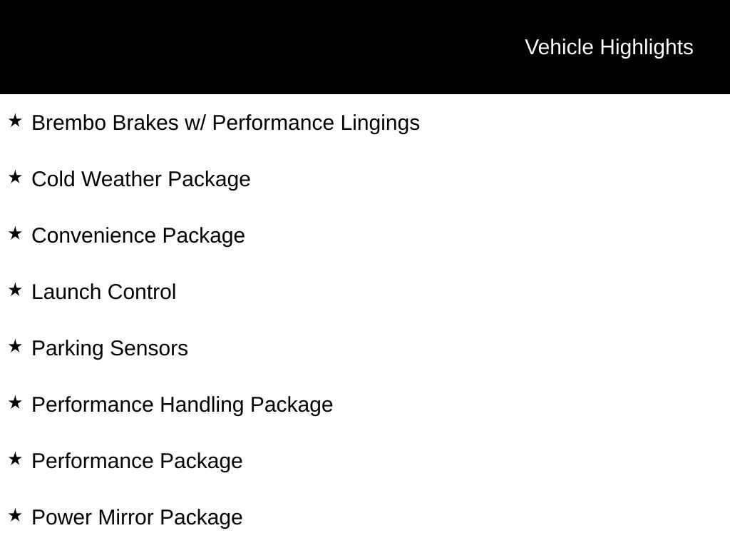 - Brembo Brakes w/ Performance Lingings