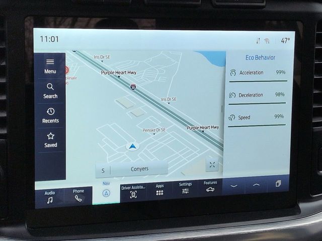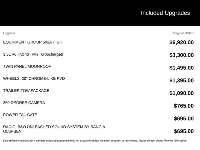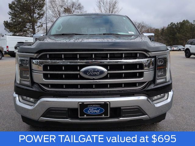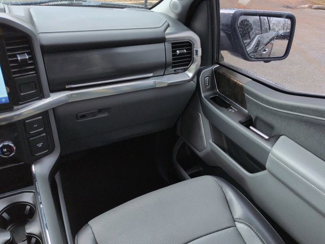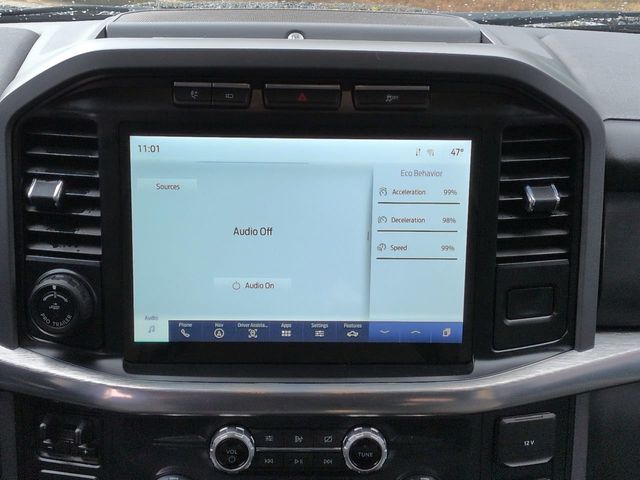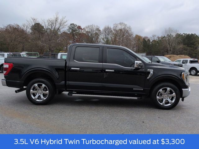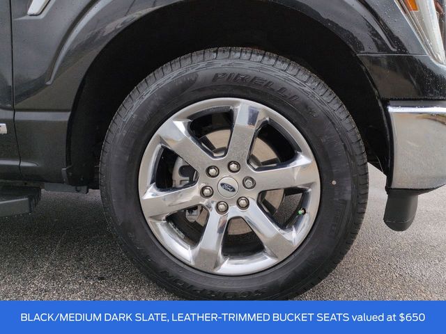 This 2021 Ford F-150 Lariat in Agate Black Metallic features: 4D SuperCrew, 3.5L PowerBoost Full-Hybrid V6, 10-Speed Automatic, RWD, 12" LCD Productivity Touchscreen, 2nd Row Heated Seats, 360 Degree Camera, 360-Degree Camera, 4-Wheel Disc Brakes, 6" Chrome Running Board, ABS brakes, Adjustable pedals, Auto Emergency Braking, Auto High-beam Headlights, Auto-dimming door mirrors, Auto-dimming Rear-View mirror, Automatic temperature control, Backup Camera, Blind Spot Monitoring, BLIS w/ Cross Traffic Alert, Bluetooth w/ Audio Streaming, Brake assist, Chrome 2-Bar Grille w/4 Minor Bars, Chrome Door & Tailgate Handles w/Body-Color Bezel, Chrome Single-Tip Exhaust, Chrome Skull Caps on Exterior Mirrors, Class IV Trailer Hitch Receiver, Compass, Connected Built-In Navigation, Delay-off headlights, Electronic Locking w/3.55 Axle Ratio, Electronic Stability Control, Emergency communication system: SYNC 4 911 Assist, Equipment Group 502A High, Evasive Steering Assist, Exterior Parking Camera Rear, Ford Co-Pilot360 Assist 2.0, Front Center Armrest w/Storage, Front dual zone A/C, Front fog lights, Front wheel independent suspension, Fully automatic headlights, GVWR: 7,050 lbs Payload Package, Heated door mirrors, Heated front seats, Heated Steering Wheel, Illuminated entry, Integrated Trailer Brake Controller, Intelligent Adaptive Cruise Control w/Stop & Go, Interior Work Surface, Intersection Assist, Lane Keeping System, Lariat Chrome Appearance Package, Lariat Package, Leather Seats, Leather-Trimmed Bucket Seats, LED Foglights, LED Projector w/Dynamic Bending Headlamps, LED Sideview Mirror Spotlights, Low tire pressure warning, Memory Package, Memory seat, Navigation system: Connected Navigation (90-Day Trial), Onboard 400W Outlet, Outside temperature display, Overhead console, Panic alarm, Panoramic Sunroof/Moonroof, Parking Sensors, Pedal memory, Power door mirrors, Power Glass Sideview Mirr w/Chrome Skull Caps, Power Mirror Package, Power Package, Power passenger seat, Power Sliding Rear Window, Power Tailgate, Power Tilt/Telescoping Steering Column w/Memory, Pre Collision Assist w/ AEB, Premium Audio Package, Premium Sound Package, Pro Trailer Backup Assist, Radio: B&O Unleashed Sound System by Bang & Olufsen, Rain-Sensing Wipers, Rear seat center armrest, Rear step bumper, Remote keyless entry, Reverse Brake Assist, Reverse Sensing, Security system, Speed Sign Recognition, Speed-sensing steering, Split folding rear seat, Steering wheel mounted audio controls, Telescoping steering wheel, Tilt steering wheel, Tow Package, Traction control, Trailer Package, Trailer Tow Package, Trip computer, Turn signal indicator mirrors, Twin Panel Moonroof, Universal Garage Door Opener, Ventilated front seats, Wheels: 20" Chrome-Like PVD.