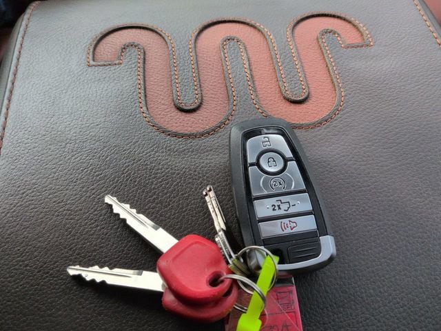 This 2021 Ford F-450SD King Ranch in Stone Gray Metallic features: 4D Crew Cab, Power Stroke 6.7L V8 DI 32V OHV Turbodiesel, 10-Speed Automatic, 4WD, **LOCAL TRADE**, 10 Speakers, 110V/400W Outlet, 19.5" Forged Polished Aluminum Wheels, 4-Wheel Disc Brakes, 4G WiFi Hotspot Telematics, 8" Color Touchscreen, ABS brakes, Adaptive Cruise Control, Adaptive Cruise Control & Collision Warning, Adaptive Steering, AM/FM radio: SiriusXM, Auto Emergency Braking, Auto LED Headlights, Automatic temperature control, Backup Camera, Blind Spot Monitoring, BLIS Blind Spot Information System, BLIS w/ Cross Traffic Alert, Bluetooth w/ Audio Streaming, Brake assist, Cold Weather Package, Compass, Delay-off headlights, Dual rear wheels, Electronic Stability Control, Exterior Parking Camera Rear, Front dual zone A/C, FX4 Off-Road Package, GVWR: 14,000 lb Payload Package, Heated door mirrors, Heated Rear Seats, Heated Steering Wheel, Heavy Duty Trailer Package, Hill Descent Control, Hill Descent Control, Intelligent Access w/Push-Button Start, King Ranch Package, King Ranch Ultimate Package, Leather Seats, LED Foglights, Limited Slip w/4.30 Axle Ratio, Multi-Contour Seats, Navigation System, Off Road Package, Off-Road Specifically Tuned Shock Absorbers, Order Code 770A, Outside temperature display, Overhead console, Panoramic Sunroof/Moonroof, Power door mirrors, Power Mirror Package, Power Package, Power Running Boards, Power Sliding Rear Window, Power steering, Power-Deployable Running Boards, Pre Collision Assist w/ AEB, Preferred Equipment Package, Premium Audio Package, Premium Sound Package, Pro Trailer Backup Assist, Pro Trailer Hitch Assist, Quad Beam LED Headlamps & LED Taillamps, Radio: B&O System by Bang & Olufsen, Rain-Sensing Windshield Wipers, Rear step bumper, Remote Start System, SiriusXM Radio, Skid Plate Package, Steering wheel mounted audio controls, SYNC 3 Communications & Entertainment System, Tailgate Step & Handle, Telescoping steering wheel, Tilt steering wheel, Traction control, Trip computer, Twin Panel Power Moonroof, Unique FX4 Off-Road Box Decal, Upfitter Switches (6), Voice-Activated Navigation, Wireless Charging Pad.