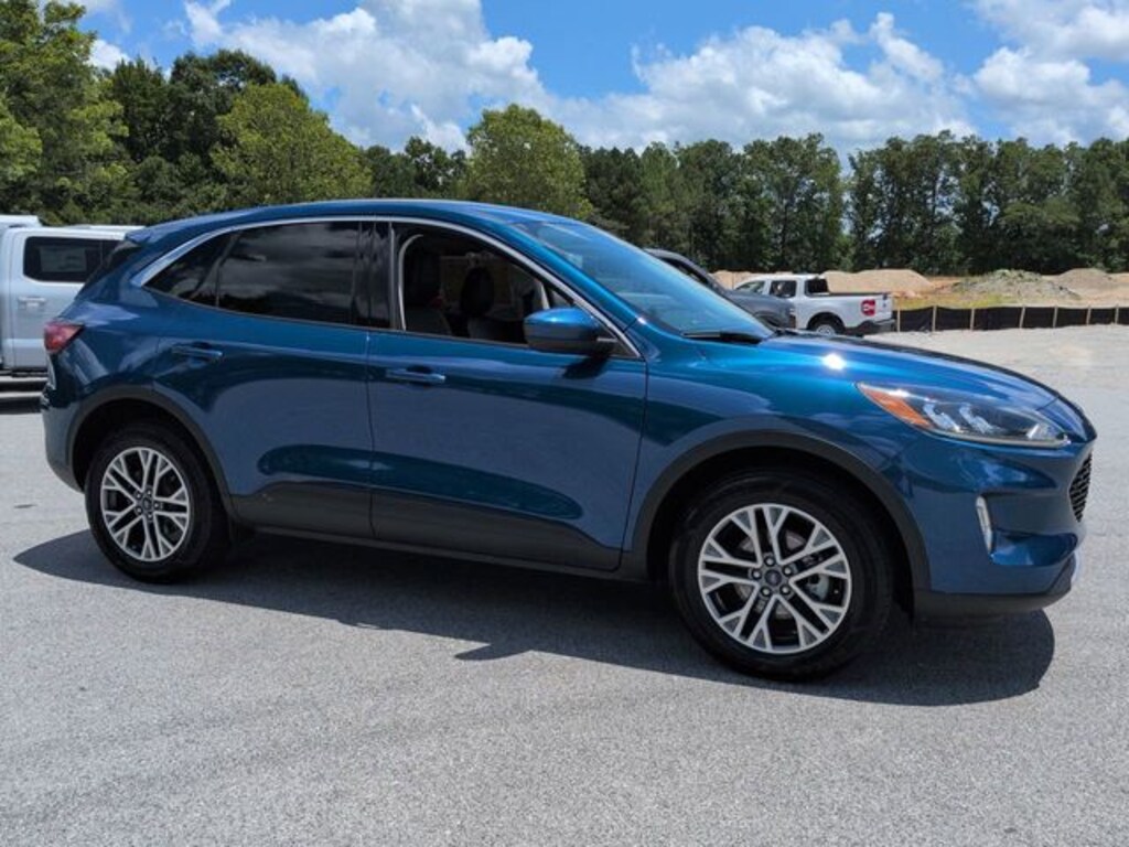 This 2022 Ford Escape SEL in Atlas Blue Metallic features: 4D Sport Utility, 1.5L EcoBoost, 8-Speed Automatic, AWD, 10-Way Power Driver's Seat, 18" Machined-Face Aluminum Wheels, 3.81 Axle Ratio, 4-Wheel Disc Brakes, 6 Speakers, 8" Color Touchscreen, ABS brakes, Adaptive Cruise Control, AM/FM radio: SiriusXM, Auto High-beam Headlights, Automatic temperature control, Backup Camera, Blind Spot Monitoring, BLIS w/ Cross Traffic Alert, Bluetooth w/ Audio Streaming, Brake assist, Cold Weather Package, Compass, Delay-off headlights, Electronic Stability Control, Emergency communication system: SYNC 3 911 Assist, Equipment Group 301A, Exterior Parking Camera Rear, Ford Co-Pilot360 Assist+, Four wheel independent suspension, Front Bucket Seats, Front Center Armrest, Front dual zone A/C, Front fog lights, Fully automatic headlights, Hands-Free Foot-Activated Liftgate, Heated ActiveX Trimmed Front Sport Contour Bucket Seats, Heated door mirrors, Heated front seats, Heated steering wheel, Illuminated entry, Instrument Panel w/6.5" Digital Screen, Intelligent Adaptive Cruise Control w/Stop-and-Go, Low tire pressure warning, Memory Package, Memory Package, Outside temperature display, Overhead console, Panic alarm, Parking Sensors, Power door mirrors, Power driver seat, Power Liftgate, Power Mirror Package, Power Package, Power steering, Power windows, Premium Audio Package, Premium Sound Package, Push Button Start, Radio data system, Radio: B&O Sound System by Bang & Olufsen, Rear seat center armrest, Rear window wiper, Remote keyless entry, Remote Start, Reverse Brake Assist, Reverse Sensing, Speed Sign Recognition, Speed-sensing steering, Speed-Sensitive Wipers, Split folding rear seat, Spoiler, Steering wheel mounted audio controls, SYNC 3 Communications & Entertainment System, Technology Package, Telescoping steering wheel, Tilt steering wheel, Traction control, Trip computer, Voice-Activated Touchscreen Navigation System, Wireless Charging Pad, Wireless Charging Pad.