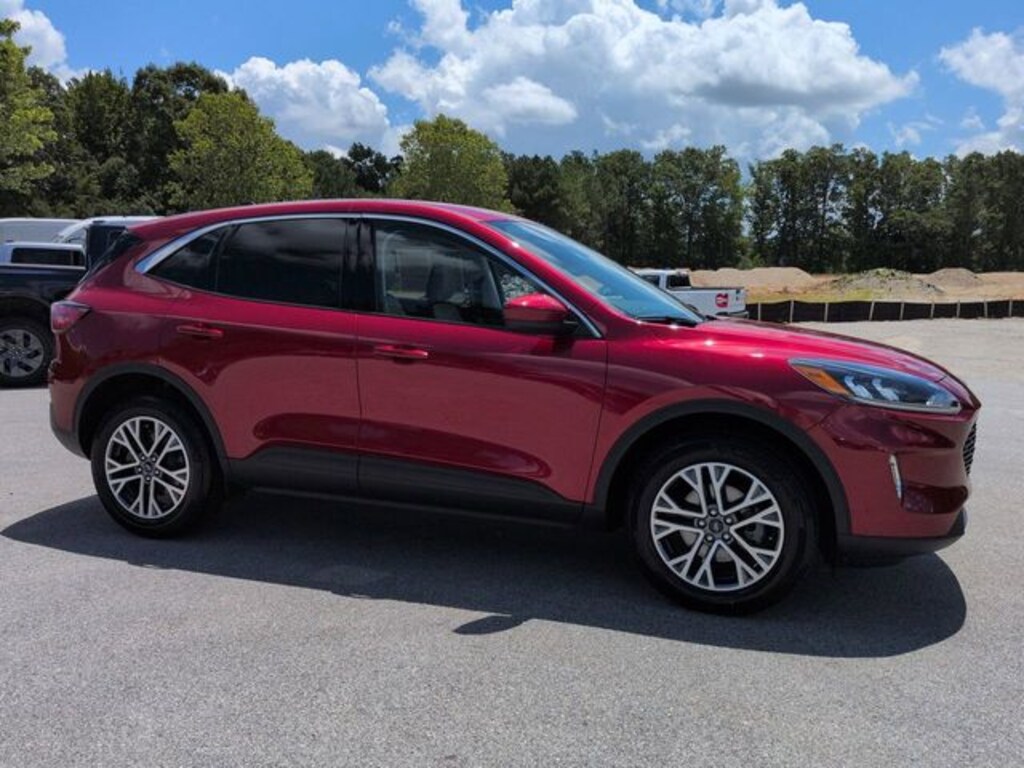 This 2022 Ford Escape SEL in Rapid Red Metallic Tinted Clearcoat features: 4D Sport Utility, 1.5L EcoBoost, 8-Speed Automatic, AWD, 10-Way Power Driver's Seat, 18" Machined-Face Aluminum Wheels, 3.81 Axle Ratio, 4-Wheel Disc Brakes, 8" Color Touchscreen, ABS brakes, AM/FM radio: SiriusXM, Auto High-beam Headlights, Automatic temperature control, Backup Camera, Blind Spot Monitoring, BLIS w/ Cross Traffic Alert, Bluetooth w/ Audio Streaming, Brake assist, Cold Weather Package, Compass, Delay-off headlights, Electronic Stability Control, Emergency communication system: SYNC 3 911 Assist, Equipment Group 301A, Exterior Parking Camera Rear, FordPass Connect, Four wheel independent suspension, Front Center Armrest, Front dual zone A/C, Front fog lights, Fully automatic headlights, Hands-Free Foot-Activated Liftgate, Hands-Free Foot-Activated Liftgate Feature Removal, Heated ActiveX Trimmed Front Sport Contour Bucket Seats, Heated door mirrors, Heated front seats, Heated steering wheel, Illuminated entry, Instrument Panel w/6.5" Digital Screen, Low tire pressure warning, Memory Package, Memory Package, Outside temperature display, Overhead console, Panic alarm, Parking Sensors, Power door mirrors, Power driver seat, Power Liftgate, Power Mirror Package, Power Package, Power steering, Power windows, Premium Audio Package, Premium Sound Package, Push Button Start, Radio data system, Radio: B&O Sound System by Bang & Olufsen, Rear seat center armrest, Rear window wiper, Remote keyless entry, Remote Start, Reverse Brake Assist, Reverse Sensing, Speed control, Speed-sensing steering, Speed-Sensitive Wipers, Split folding rear seat, Spoiler, Steering wheel mounted audio controls, SYNC 3 Communications & Entertainment System, Technology Package, Telescoping steering wheel, Tilt steering wheel, Traction control, Trip computer, Wireless Charging Pad, Wireless Charging Pad.