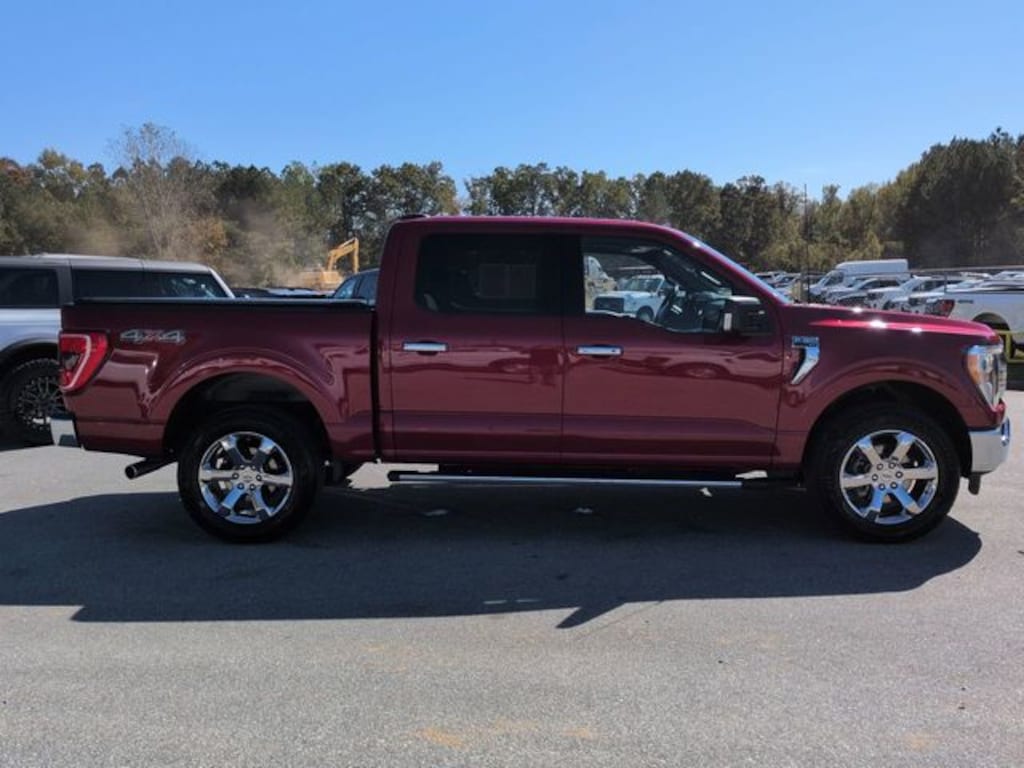 This 2022 Ford F-150 XLT in Rapid Red Metallic Tinted Clearcoat features: 4D SuperCrew, 2.7L V6 EcoBoost, 10-Speed Automatic, 4WD, 10-Way Power Driver & Passenger Seats, 2-Bar Style Grille w/Chrome 2 Minor Bars, 4-Wheel Disc Brakes, 4G WiFi Hotspot Telematics, 8" Color Touchscreen, 8" Productivity Screen in Instrument Cluster, ABS brakes, Alloy wheels, Auto Emergency Braking, Auto High-beam Headlights, Auto-Dimming Rear-View Mirror, Backup Camera, Blind Spot Monitoring, BLIS w/ Cross Traffic Alert, Bluetooth w/ Audio Streaming, Brake assist, Bright Polished Step Bars, Chrome Door & Tailgate Handles w/Body-Color Bezel, Chrome Single-Tip Exhaust, Class IV Trailer Hitch Receiver, Cloth 40/20/40 Front Seat, Compass, Delay-off headlights, Dual Zone Electronic Automatic Temperature Control, Electronic Locking w/3.55 Axle Ratio, Electronic Stability Control, Emergency communication system: SYNC 4 911 Assist, Equipment Group 302A High, Exterior Parking Camera Rear, Front Center Armrest w/Storage, Front fog lights, Front wheel independent suspension, Fully automatic headlights, GVWR: 6,600 lbs Payload Package, Heated door mirrors, Heated Front Seats, Illuminated entry, Intelligent Access w/Push Button Start, Lane Keeping System, Leather-Wrapped Steering Wheel, LED Reflector Headlamps, LED Sideview Mirror Spotlights, Low tire pressure warning, Onboard 400W Outlet, Outside temperature display, Overhead console, Panic alarm, Panoramic Sunroof/Moonroof, Parking Sensors, Post Collision Braking, Power Glass Heated Sideview Mirrors, Power Mirror Package, Power Package, Power Sliding Rear Window, Power steering, Power windows, Power-Sliding Rear Window, Pre Collision Assist w/ AEB, Radio data system, Radio: AM/FM SiriusXM w/360L, Rear Under-Seat Storage, Remote keyless entry, Remote Start System w/Remote Tailgate Release, Reverse Brake Assist, Reverse Sensing, SecuriCode Drivers Side Keyless-Entry Keypad, Security system, Speed control, Speed-sensing steering, Split folding rear seat, Steering wheel mounted audio controls, SYNC 4 w/Enhanced Voice Recognition, Telescoping steering wheel, Tilt steering wheel, Tow Package, Traction control, Trailer Package, Trip computer, Variably intermittent wipers, Wheels: 20" Chrome-Like PVD, XLT Chrome Appearance Package, XLT Package, Zone Lighting.