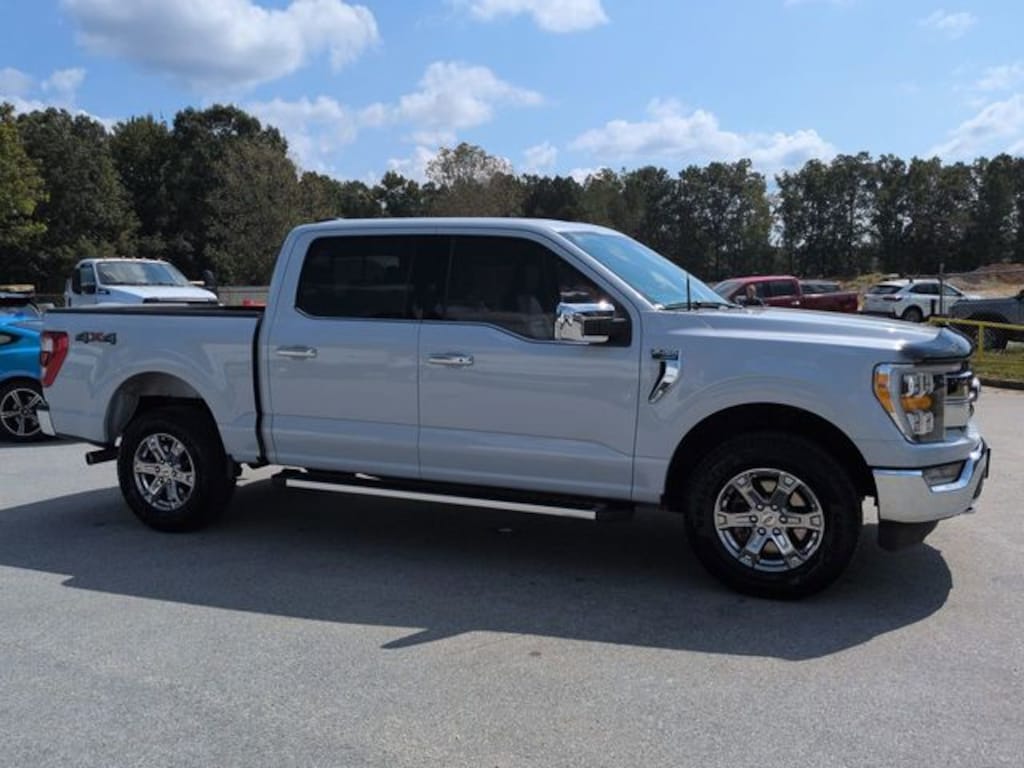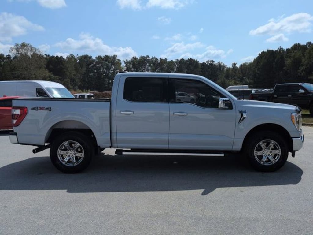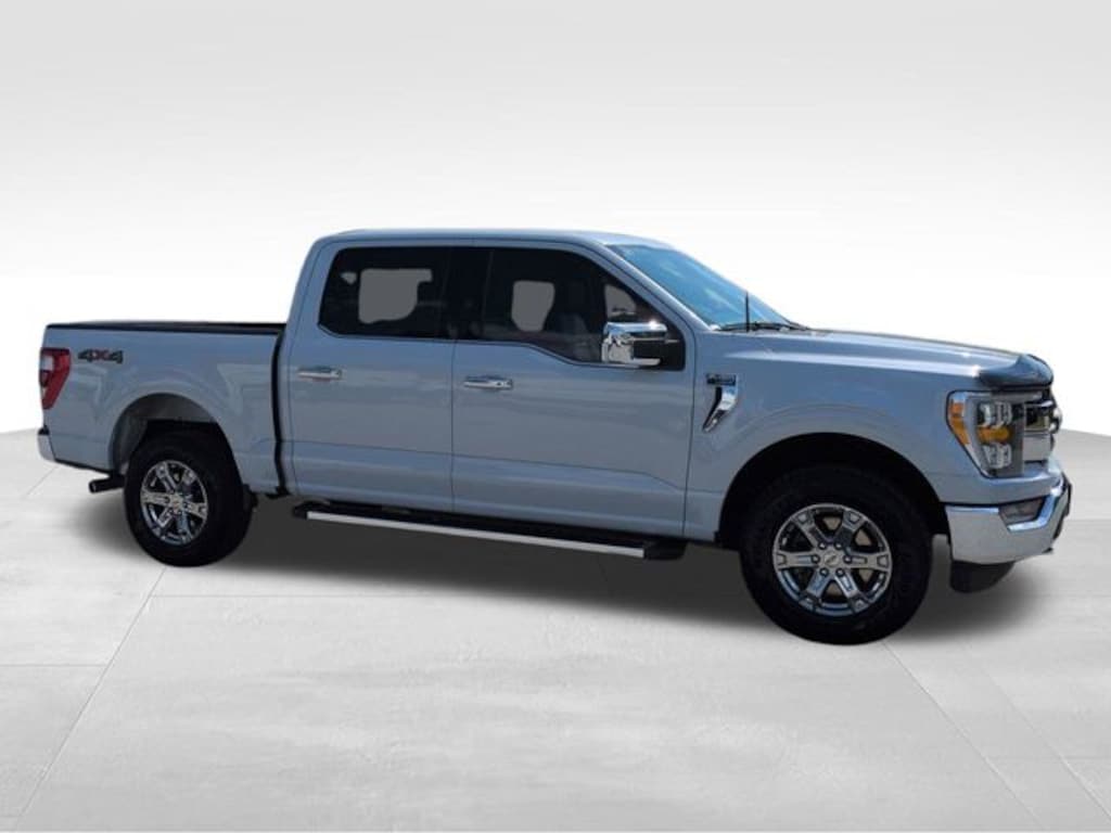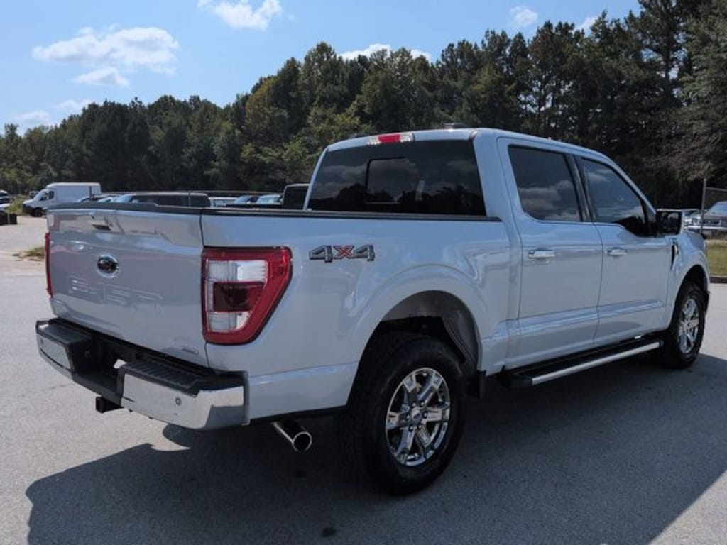 This 2022 Ford F-150 Lariat in White Metallic features: 4D SuperCrew, 2.7L V6 EcoBoost, 10-Speed Automatic, 4WD, **LOCAL TRADE**, 12" LCD Productivity Touchscreen, 4-Wheel Disc Brakes, 4G WiFi Hotspot Telematics, 6" Bright Polished Running Board, 7 Speakers, ABS brakes, Adjustable pedals, AM/FM radio: SiriusXM with 360L, Auto Emergency Braking, Auto High-beam Headlights, Auto-dimming door mirrors, Auto-dimming Rear-View mirror, Automatic temperature control, Backup Camera, Bed Utility Package, Blind Spot Monitoring, BLIS w/ Cross Traffic Alert, Bluetooth w/ Audio Streaming, BoxLink, Brake assist, Chrome 2-Bar Grille w/4 Minor Bars, Chrome Door & Tailgate Handles w/Body-Color Bezel, Chrome Single-Tip Exhaust, Chrome Skull Caps on Exterior Mirrors, Class IV Trailer Hitch Receiver, Compass, Connected Navigation & SiriusXM w/360L Removal, Delay-off headlights, Electronic Locking w/3.55 Axle Ratio, Electronic Stability Control, Emergency communication system: SYNC 4 911 Assist, Equipment Group 501A Mid, Exterior Parking Camera Rear, Front Center Armrest w/Storage, Front dual zone A/C, Front fog lights, Front wheel independent suspension, Fully automatic headlights, GVWR: 6,600 lbs Payload Package, Heated door mirrors, Heated front seats, Illuminated entry, Lane Keeping System, Lariat Chrome Appearance Package, Lariat Package, Leather Seats, Leather-Trimmed 40/20/40 Front Seat, LED Box Lighting, Low tire pressure warning, Memory Package, Memory seat, Navigation system: Connected Navigation, Onboard 400W Outlet, Outside temperature display, Overhead console, Panic alarm, Pedal memory, Post Collision Braking, Power door mirrors, Power Mirror Package, Power Package, Power passenger seat, Power Tailgate, Pre Collision Assist w/ AEB, Premium Audio Package, Premium Sound Package, Push Button Start, Radio data system, Radio: AM/FM SiriusXM w/360L, Radio: B&O Sound System by Bang & Olufsen, Rear seat center armrest, Rear step bumper, Remote keyless entry, Reverse Brake Assist, Reverse Sensing, Security system, Speed-sensing steering, Split folding rear seat, Steering wheel mounted audio controls, SYNC 4 w/Enhanced Voice Recognition, Tailgate Step w/Tailgate Work Surface, Telescoping steering wheel, Tilt steering wheel, Tow Package, Traction control, Trailer Package, Trip computer, Turn signal indicator mirrors, Universal Garage Door Opener, Variably intermittent wipers, Ventilated front seats, Wheels: 18" Chrome-Like PVD, Wireless Charging Pad, Wireless Charging Pad.