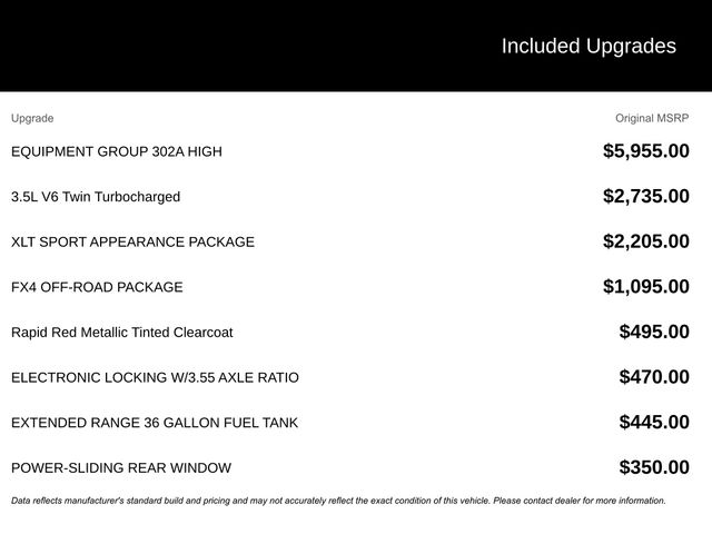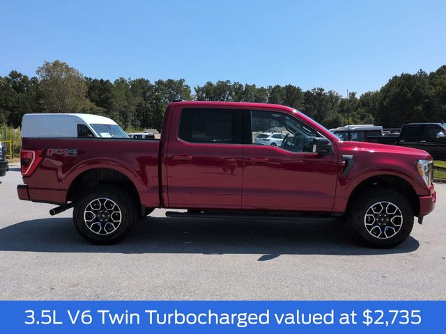 This 2022 Ford F-150 XLT in Rapid Red Metallic Tinted Clearcoat features: 4D SuperCrew, 3.5L V6 EcoBoost, 10-Speed Automatic, 4WD, 10-Way Power Driver & Passenger Seats, 2-Bar Style Grille w/Chrome 2 Minor Bars, 4-Wheel Disc Brakes, 4G WiFi Hotspot Telematics, 4x4 FX4 Off-Road Bodyside Decal, 6 Speakers, 8" Productivity Screen in Instrument Cluster, ABS brakes, Accent-Color Step Bars, Auto Emergency Braking, Auto High-beam Headlights, Auto Start-Stop Removal, Auto-Dimming Rear-View Mirror, Backup Camera, Black 2-Bar Style Grille w/Black Surround/Accents, Blind Spot Monitoring, BLIS w/ Cross Traffic Alert, Bluetooth w/ Audio Streaming, Body-Color Door & Tailgate Handles, Body-Color Front & Rear Bumpers, Box Side Decals, Brake assist, Bright Polished Step Bars, Chrome Door & Tailgate Handles w/Body-Color Bezel, Chrome Single-Tip Exhaust, Class IV Trailer Hitch Receiver, Compass, Connected Navigation & SiriusXM w/360L Removal, Delay-off headlights, Dual Zone Electronic Automatic Temperature Control, Electronic Locking w/3.55 Axle Ratio, Electronic Stability Control, Emergency communication system: SYNC 4 911 Assist, Equipment Group 302A High, Extended Range 36 Gallon Fuel Tank, Exterior Parking Camera Rear, Front Center Armrest w/Storage, Front fog lights, Front wheel independent suspension, Fully automatic headlights, FX4 Off-Road Package, Heated door mirrors, Heated Front Seats, Hill Descent Control, Illuminated entry, Intelligent Access w/Push Button Start, Lane Keeping System, Leather-Wrapped Steering Wheel, LED Reflector Headlamps, LED Sideview Mirror Spotlights, Low tire pressure warning, Monotube Rear Shocks, Off Road Package, Off-Road Tuned Front Shock Absorbers, Onboard 400W Outlet, Outside temperature display, Overhead console, Panic alarm, Parking Sensors, Partitioned Lockable Fold-Flat Storage, Post Collision Braking, Power door mirrors, Power Glass Heated Sideview Mirrors, Power Mirror Package, Power Package, Power steering, Power windows, Power-Sliding Rear Window, Pre Collision Assist w/ AEB, Pro Trailer Backup Assist, Pro Trailer Hitch Assist, Radio data system, Radio: AM/FM SiriusXM w/360L, Radio: AM/FM Stereo w/6 Speakers, Rear step bumper, Rear Under-Seat Storage, Remote keyless entry, Remote Start, Remote Start System, Remote Start System w/Remote Tailgate Release, Reverse Brake Assist, Reverse Sensing, Rock Crawl Mode, SecuriCode Drivers Side Keyless-Entry Keypad, Security system, Skid Plate Package, Speed-sensing steering, Split folding rear seat, Steering wheel mounted audio controls, SYNC 4, SYNC 4 w/Enhanced Voice Recognition, Telescoping steering wheel, Tilt steering wheel, Tow Package, Traction control, Trailer Package, Tray Style Floor Liner (47W), Trip computer, Unique Sport Cloth 40/Console/40 Front-Seats, Variably intermittent wipers, Wheels: 18" 6-Spoke Machined Aluminum, XLT Chrome Appearance Package, XLT Package, XLT Sport Appearance Package, Zone Lighting.