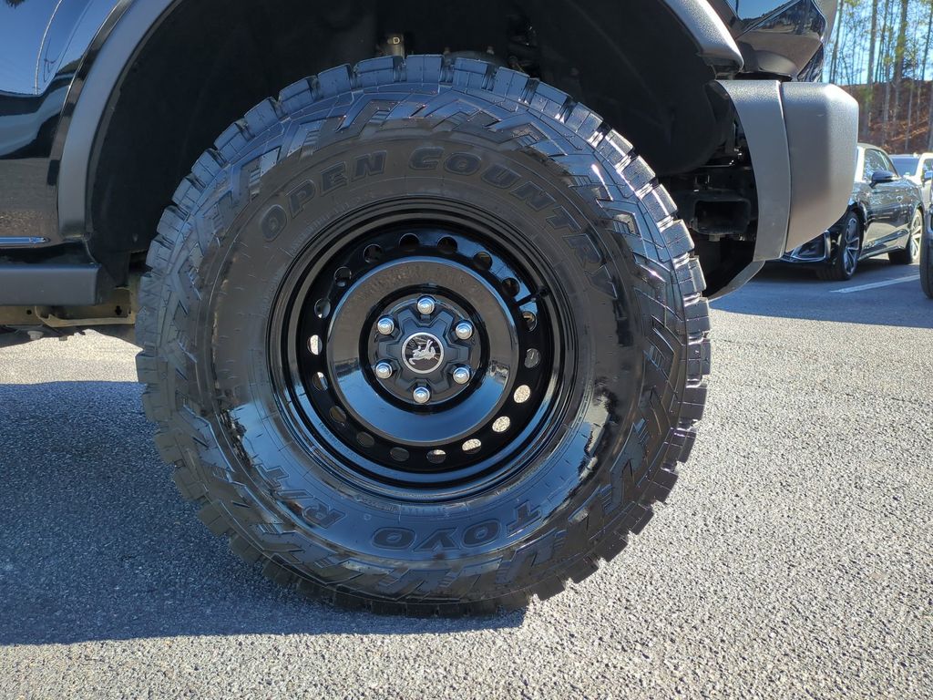 Indulge in the latest technology with features like SYNC 4, SiriusXM Radio with 360L, and a 7-speaker sound system. Stay connected and entertained on the go. The Bronco's rugged yet refined exterior, with its Black paint and Black Gloss-Painted Steel wheels, exudes a bold and confident presence.