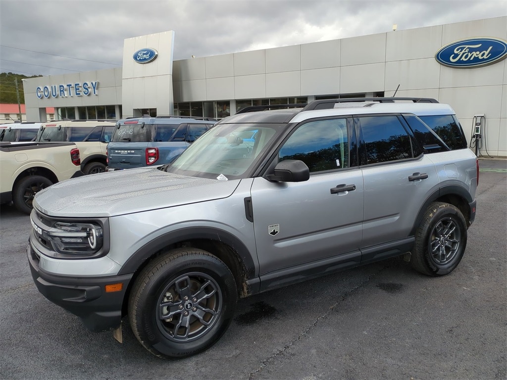 Iconic Silver Metallic 2023 Ford Bronco Sport Big Bend 4WD 4WD Big Bend 4WD 8" Color Touchscreen, Auto LED Headlights, Backup Camera, LED Foglights, Parking Sensors, Power Mirror Package, Power Package, Reverse Brake Assist, Reverse Sensing, Sunroof/Moonroof, Tow Package, Trailer Package, Wireless Charging Pad, 4D Sport Utility, 1.5L EcoBoost, 8-Speed Automatic, 4WD, 4-Wheel Disc Brakes, ABS brakes, AM/FM radio: SiriusXM, AM/FM Stereo, Auto High-beam Headlights, Automatic temperature control, Brake assist, Class II Trailer Tow Package w/Trailer Sway Control, Compass, Convenience Package, Delay-off headlights, Electronic Stability Control, Emergency communication system: SYNC 3 911 Assist, Equipment Group 200A, Evasive Steering Assist, Ford Co-Pilot360 Assist+, Four wheel independent suspension, Front Center Armrest, Front Driver & Passenger Seatback Zipper Pockets, Fully automatic headlights, Heated door mirrors, Heated Front Bucket Seats, Illuminated entry, Intelligent Access (Lock/Unlock), Intelligent Adaptive Cruise Control w/Stop & Go, Leather-Wrapped Steering Wheel, LED Fog Lamps, Low tire pressure warning, Outside temperature display, Overhead console, Power door mirrors, Power Moonroof, Power steering, Power windows, Radio data system, Rear Parking Sensors, Rear seat center armrest, Remote keyless entry, SiriusXM, Speed-sensing steering, Speed-Sensitive Wipers, Split folding rear seat, Steering wheel mounted audio controls, SYNC 3 Communications & Entertainment System, SYNC 3/Apple CarPlay/Android Auto, Telescoping steering wheel, Tilt steering wheel, Traction control, Trip computer, Universal Garage Door Opener (UGDO), Voice-Activated Touchscreen Navigation System, Wheels: 17" Carbonized Gray-Painted Aluminum, Wireless Charging Pad.