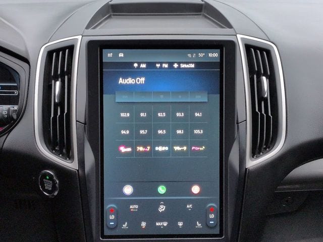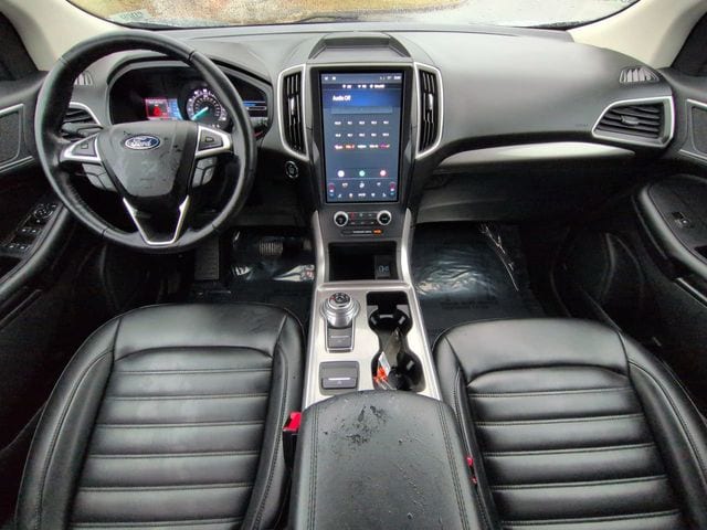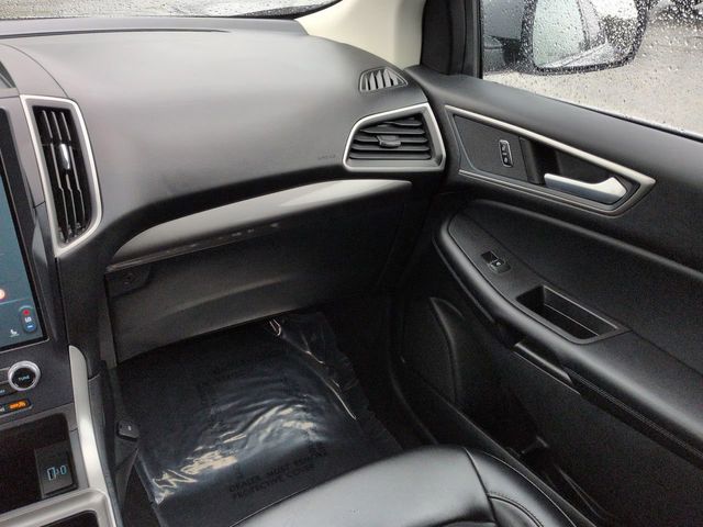 This 2023 Ford Edge SEL in Iconic Silver Metallic features: 4D Sport Utility, EcoBoost 2.0L I4 GTDi DOHC Turbocharged VCT, 8-Speed Automatic, AWD, 12" LCD Productivity Touchscreen, 4-Wheel Disc Brakes, 4G WiFi Hotspot Telematics, ABS brakes, ActiveX Seating Material Heated Bucket Seats, AM/FM radio: SiriusXM with 360L, Auto High-beam Headlights, Auto LED Headlights, Auto-dimming Rear-View mirror, Automatic temperature control, Backup Camera, Brake assist, Compass, Delay-off headlights, Electronic Stability Control, Emergency communication system: SYNC 4 911 Assist, Equipment Group 201A, FordPass Connect, Four wheel independent suspension, Front Center Armrest w/Storage, Front dual zone A/C, Front License Plate Bracket, Fully automatic headlights, Heated door mirrors, Heated front seats, Illuminated entry, Leather steering wheel, Leather-Wrapped Steering Wheel, Low tire pressure warning, Outside temperature display, Overhead console, Panic alarm, Parking Sensors, Power door mirrors, Power driver seat, Power Mirror Package, Power Package, Power passenger seat, Power steering, Power windows, Radio: AM/FM Stereo/MP3 Capable, Rear Parking Sensors, Rear seat center armrest, Rear window wiper, Remote keyless entry, Reverse Sensing, SiriusXM w/360L, Speed control, Split folding rear seat, Spoiler, Steering wheel mounted audio controls, SYNC 4A w/Enhanced Voice Recognition, Telescoping steering wheel, Tilt steering wheel, Traction control, Trip computer, Wheels: 18" Sparkle Silver-Painted Aluminum.