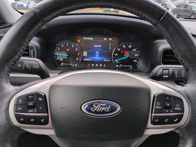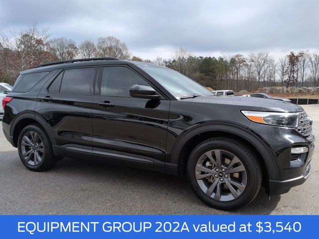 This 2023 Ford Explorer XLT in Agate Black Metallic features: 4D Sport Utility, 2.3L EcoBoost I-4, 10-Speed Automatic, RWD, 3.58 Non-Limited-Slip Rear Axle Ratio, 3rd Row Seating, 3rd row seats: bench, 4-Wheel Disc Brakes, 6 Speakers, 8" Color Touchscreen, ABS brakes, Adaptive Cruise Control, AM/FM radio: SiriusXM, AM/FM Stereo, Android Auto, Apple Carplay, Auto High-beam Headlights, Auto LED Headlights, Automatic temperature control, Backup Camera, Bluetooth w/ Audio Streaming, Brake assist, Class IV Trailer Tow Package, Cold Weather Package, Compass, Delay-off headlights, Dual Chrome Exhaust Tips, Electronic Stability Control, Emergency communication system: SYNC 3 911 Assist, Equipment Group 202A, Evasive Steering Assist, Evasive Steering Assist, Exterior Parking Camera Rear, Ford Co-Pilot360 Assist+, FordPass Connect, Four wheel independent suspension, Front Center Armrest, Front dual zone A/C, Fully automatic headlights, Heated ActiveX Captain's Chairs, Heated door mirrors, Heated front seats, Heated Steering Wheel, Heated Unique Cloth Captain's Chairs, Hill Start Assist, Illuminated entry, Intelligent Adaptive Cruise Control, Leather steering wheel, LED Fog Lamps, Low tire pressure warning, Multi Zone Climate Control, Navigation System, Outside temperature display, Overhead console, Panic alarm, Panoramic Sunroof/Moonroof, Parking Sensors, Power door mirrors, Power driver seat, Power Liftgate, Power Mirror Package, Power Package, Power passenger seat, Power steering, Power windows, Push Button Start, Rear air conditioning, Rear window wiper, Remote keyless entry, Remote Start, Remote Start System, Reverse Brake Assist, Reverse Sensing, Roof rack: rails only, SecuriCode Keyless Entry Keypad, Security system, Side-Wind Stabilization, Speed Sign Recognition, Speed-sensing steering, Speed-Sensitive Wipers, Split folding rear seat, Spoiler, Steering wheel mounted audio controls, SYNC 3 Communications & Entertainment System, SYNC 3/Apple CarPlay/Android Auto, Telescoping steering wheel, Tilt steering wheel, Tow Package, Traction control, Trailer Package, Trip computer, Twin Panel Moonroof, Voice-Activated Touchscreen Navigation System, Wheels: 20" 10-Spoke Carbonized Gray-Painted, XLT Package, XLT Sport Appearance Package.