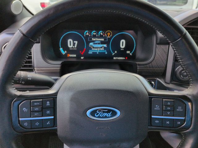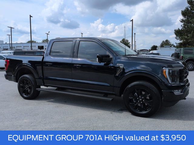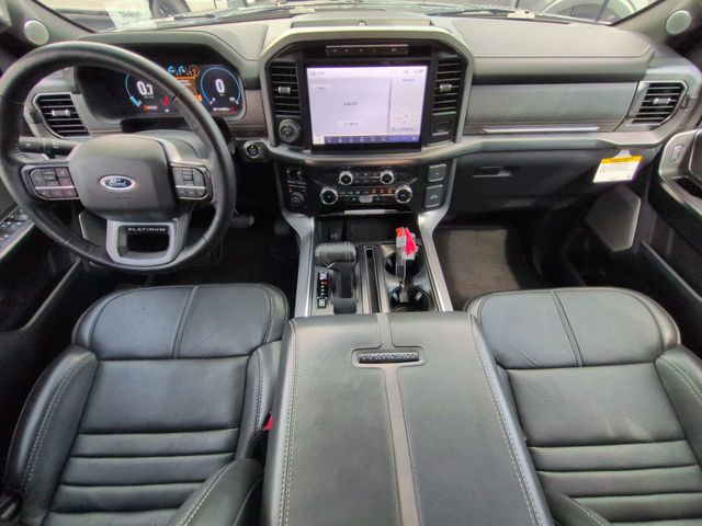 This 2023 Ford F-150 Platinum in Antimatter Blue Metallic features: 4D SuperCrew, 3.5L V6 EcoBoost, 10-Speed Automatic, 4WD, 12" LCD Productivity Touchscreen, 360 Degree Camera, 360-Degree Camera, 4-Wheel Disc Brakes, 4G WiFi Hotspot Telematics, ABS brakes, Adaptive Cruise Control, Adjustable pedals, AM/FM radio: SiriusXM with 360L, Auto Emergency Braking, Auto High-beam Headlights, Auto LED Headlights, Auto tilt-away steering wheel, Auto-dimming door mirrors, Auto-dimming Rear-View mirror, Automatic temperature control, Backup Camera, Bed Utility Package, Black Belt Moldings, Black Exterior Badging, Black Front Tow Hooks, Black Tailgate Applique, Black Taillamp Bezels, Blind Spot Monitoring, BLIS w/ Cross Traffic Alert, Bluetooth w/ Audio Streaming, Body-Color Door Handles & Mirror Caps, BoxLink, Brake assist, Class IV Trailer Hitch Receiver, Cold Weather Package, Compass, Dark Interior Appliques, Dark-Tinted Taillamps, Delay-off headlights, Electronic Locking w/3.55 Axle Ratio, Electronic Stability Control, Emergency communication system: SYNC 4 911 Assist, Equipment Group 701A High, Evasive Steering Assist, Extended Range 36 Gallon Fuel Tank, Exterior Parking Camera Rear, Ford BlueCruise 1.0, Front Center Armrest, Front dual zone A/C, Front fog lights, Front wheel independent suspension, Fully automatic headlights, Garage door transmitter, Heated door mirrors, Heated front seats, Heated steering wheel, Illuminated entry, Inclination/Intrusion Sensor Removal, Integrated Trailer Brake Controller, Lane Keeping System, Leather Seats, LED Box Lighting, LED Foglights, Low tire pressure warning, Max Trailer Tow Package, Memory Package, Memory seat, Outside temperature display, Overhead console, Panic alarm, Parallel and Perpendicular Parkâ"Assist with Stop, Pedal memory, Platinum Black Appearance, Post Collision Braking, Power door mirrors, Power Mirror Package, Power Package, Power passenger seat, Power Running Boards, Power Tailgate, Power-Deployable Running Boards w/Black Accent, Pre Collision Assist w/ AEB, Premium Audio Package, Premium Sound Package, Pro Trailer Backup Assist & Pro Trailer Hitch Assist, Radio data system, Radio: B&O Unleashed Sound System by Bang & Olufsen, Rain sensing wipers, Rear seat center armrest, Rear step bumper, Remote keyless entry, Reverse Brake Assist, Reverse Sensing, Security system, Speed control, Speed-sensing steering, Split folding rear seat, Steering Wheel Heat Removal (DISC), Steering wheel memory, Steering wheel mounted audio controls, Tailgate Step w/Tailgate Work Surface, Telescoping steering wheel, Tilt steering wheel, Tough Bed Spray-In Bedliner, Tow Package, Traction control, Trailer Package, Turn signal indicator mirrors, Unique Hood & Grille w/Black Accent, Unique Multi-Contour Leather Bucket Seats, Ventilated front seats, Wheels: 20" Gloss Black Painted Aluminum.
