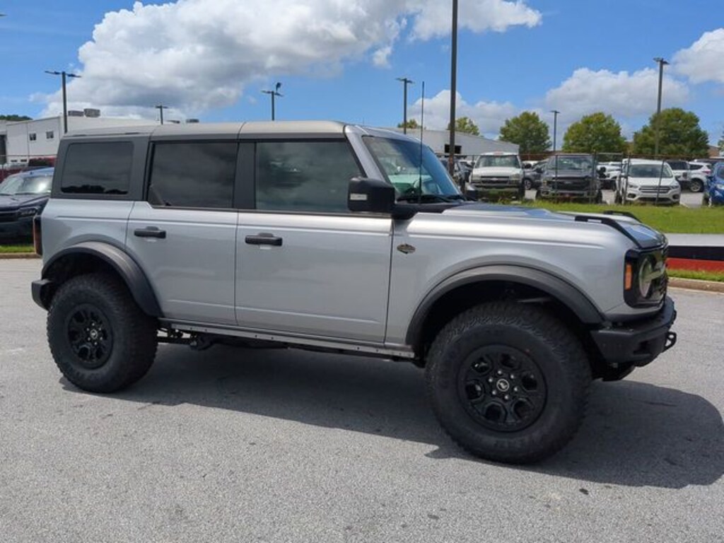 This 2024 Ford Bronco Wildtrak in Iconic Silver Metallic features: 4D Sport Utility, 2.7L EcoBoost V6, 10-Speed Automatic, 4WD, 10 Speakers w/Subwoofer, 12" LCD Productivity Touchscreen, 360-Degree Camera, 360-Degree Camera, 4-Wheel Disc Brakes, ABS brakes, Adaptive Cruise Control, Adaptive Cruise Control, Additional Sound Deadening, AM/FM radio: SiriusXM with 360L, Auto High-beam Headlights, Auto LED Headlights, Auto-dimming Rear-View mirror, Automatic temperature control, Backup Camera, Brake assist, Carbonized Gray Molded-In-Color Hard Top, Compass, Delay-off headlights, Electronic Stability Control, Emergency communication system: 911 Assist, Equipment Group 354A High/Lux Package, Evasive Steering Assist, Exterior Parking Camera Rear, Front Center Armrest, Front fog lights, Front Parking Sensors, Front Row Top Panels Storage Bag, Front wheel independent suspension, Fully automatic headlights, Hard Top Sound Deadening Headliner, Heated door mirrors, Heated front seats, Heated Leather-Trimmed/Vinyl Bucket Seats, Heated Steering Wheel, Hill Start Assist, Illuminated entry, Information on Demand Panel, Integrated roll-over protection, Leather Seats, Leather Shift Knob, Low tire pressure warning, Luxury Package, Navigation system: Connected Navigation, Outside temperature display, Overhead console, Panic alarm, Power door mirrors, Power Mirror Package, Power Package, Power steering, Power windows, Premium Audio Package, Premium Sound Package, Radio data system, Radio: B&O Sound System by Bang & Olufsen, Rear-Window Defroster & Washer, Remote keyless entry, Security system, Sideview Mirrors, SiriusXM Radio w/360L, Split folding rear seat, Steering wheel mounted audio controls, SYNC 4, Telescoping steering wheel, Tilt steering wheel, Traction control, Trip computer, Universal Garage Door Opener, Variably intermittent wipers, Wheels: 17" Black High Gloss-Painted Aluminum, Wireless Charging Pad, Wireless Charging Pad.
