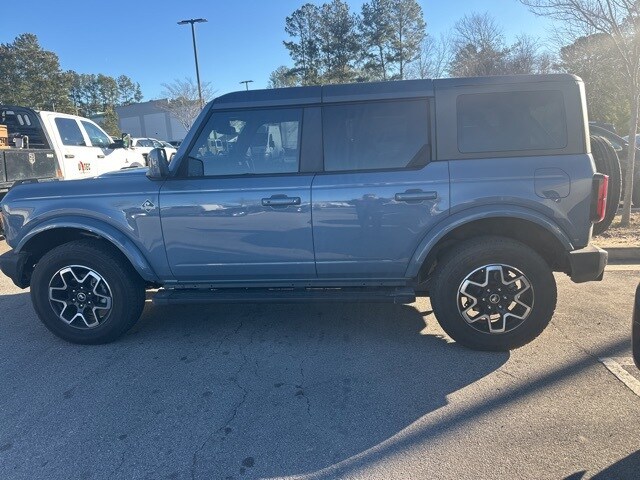 This 2024 Ford Bronco Outer Banks in Azure Gray Metallic features: 4D Sport Utility, 2.3L EcoBoost I-4, 10-Speed Automatic, 4WD, **LOCAL TRADE**, 12" LCD Productivity Touchscreen, 18" Bright Machined Aluminum Wheels, 4-Wheel Disc Brakes, 7 Speakers, ABS brakes, Additional Sound Deadening, AM/FM radio: SiriusXM with 360L, Auto High-beam Headlights, Auto LED Headlights, Auto-dimming Rear-View mirror, Automatic temperature control, Backup Camera, Bluetooth w/ Audio Streaming, Brake assist, Carbonized Gray Molded-In-Color Hard Top, Compass, Delay-off headlights, Electronic Stability Control, Emergency communication system: 911 Assist, Equipment Group 312A Mid Package, Exterior Parking Camera Rear, Front Center Armrest, Front dual zone A/C, Front fog lights, Front Row Top Panels Storage Bag, Front wheel independent suspension, Fully automatic headlights, Hard Top Sound Deadening Headliner, Heated front seats, Heated Leather-Trimmed/Vinyl Bucket Seats, Hill Start Assist, Illuminated entry, Integrated roll-over protection, Leather Seats, Leather Shift Knob, Low tire pressure warning, Navigation system: Connected Navigation, Outside temperature display, Overhead console, Panic alarm, Power door mirrors, Power driver seat, Power Mirror Package, Power Package, Power passenger seat, Power steering, Power windows, Push Button Start, Radio data system, Rear seat center armrest, Rear-Window Defroster & Washer, Remote keyless entry, Security system, SiriusXM Radio w/360L, Speed control, Split folding rear seat, Steering wheel mounted audio controls, SYNC 4, Telescoping steering wheel, Tilt steering wheel, Traction control, Trailer Tow Package (DIO), Trip computer, Variably intermittent wipers.