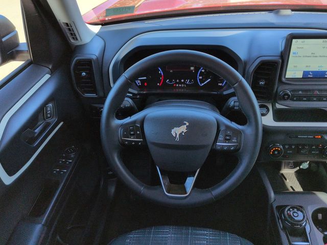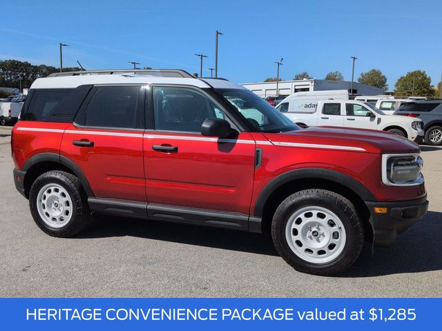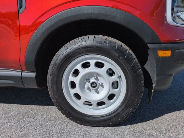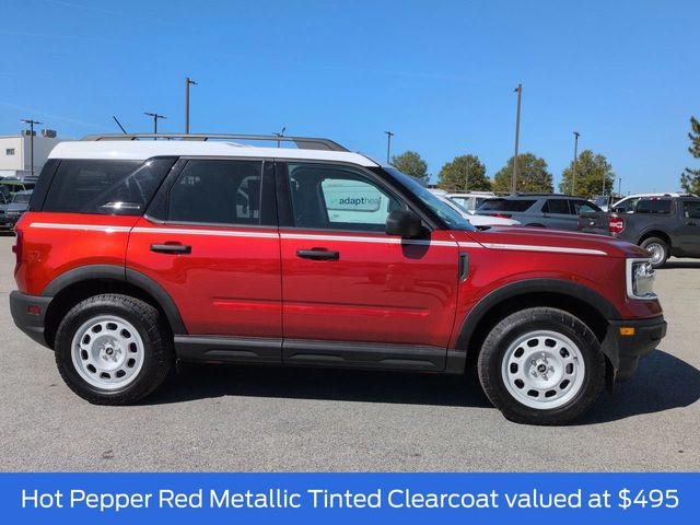 This 2024 Ford Bronco Sport Heritage in Hot Pepper Red Metallic Tinted Clearcoat features: 4D Sport Utility, 1.5L EcoBoost, 8-Speed Automatic, 4WD, 4-Wheel Disc Brakes, 8" Color Touchscreen, ABS brakes, AM/FM radio: SiriusXM, Auto High-beam Headlights, Auto LED Headlights, Automatic temperature control, Backup Camera, Brake assist, Compass, Delay-off headlights, Electronic Stability Control, Emergency communication system: SYNC 3 911 Assist, Equipment Group 250A, Four wheel independent suspension, Front Bucket Seats, Front Center Armrest, Front fog lights, Fully automatic headlights, Heated door mirrors, Heated Front Seats, Heritage Convenience Package, Illuminated entry, LED Foglights, Low tire pressure warning, Outside temperature display, Overhead console, Panic alarm, Parking Sensors, Plaid Cloth Front Bucket Seats, Power door mirrors, Power Mirror Package, Power Package, Power steering, Power windows, Premium Wrapped Steering Wheel, Push Button Start, Radio data system, Rear Parking Sensors, Rear seat center armrest, Rear window wiper, Remote keyless entry, Remote Start, Reverse Brake Assist, Reverse Sensing, Security system, SiriusXM, Speed control, Speed-sensing steering, Speed-Sensitive Wipers, Split folding rear seat, Steering wheel mounted audio controls, SYNC 3 Communications & Entertainment System, Telescoping steering wheel, Tilt steering wheel, Traction control, Trip computer, Universal Garage Door Opener (UGDO), Wheels: 17" Oxford White-Painted Aluminum, Wireless Charging Pad, Wireless Charging Pad.