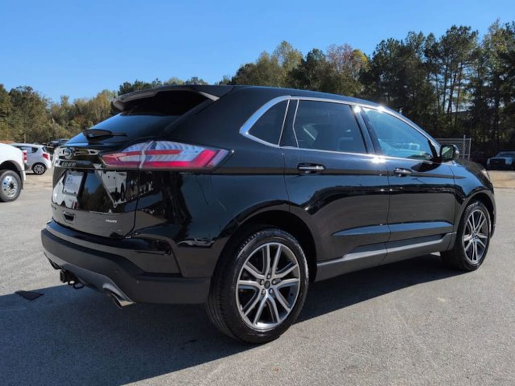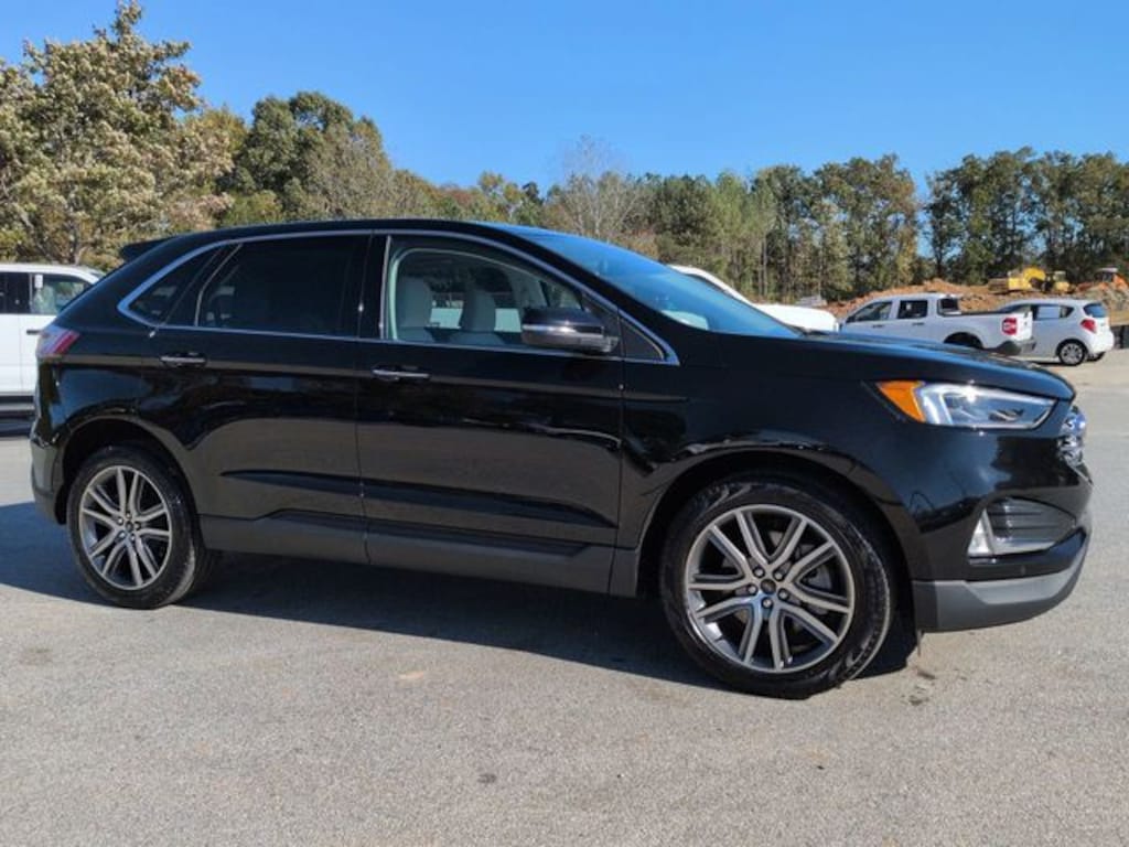 This 2024 Ford Edge Titanium in Agate Black Metallic features: 4D Sport Utility, EcoBoost 2.0L I4 GTDi DOHC Turbocharged VCT, 8-Speed Automatic, AWD, 12 Speakers, 12" LCD Productivity Touchscreen, 4-Wheel Disc Brakes, 4G WiFi Hotspot Telematics, ABS brakes, ActiveX Trimmed w/FreeForm Sport Bucket Seats, Adaptive Cruise Control, Adaptive Cruise Control w/Stop & Go, Adaptive LED Headlamps, Auto High-beam Headlights, Auto LED Headlights, Auto-Dimming Driver's Sideview Mirror, Auto-dimming Rear-View mirror, Automatic temperature control, Backup Camera, Bluetooth w/ Audio Streaming, Brake assist, Class II Trailer Tow Package, Cold Weather Package, Compass, Connected Navigation, Cooled Front Seats, Delay-off headlights, Electronic Stability Control, Emergency communication system: SYNC 4 911 Assist, Equipment Group 301A, Evasive Steering Assist, Evasive Steering Assist, FordPass Connect, Four wheel independent suspension, Front 180-Degree Camera w/Split View, Front Center Armrest w/Storage, Front dual zone A/C, Front fog lights, Fully automatic headlights, Garage door transmitter, Heated door mirrors, Heated front seats, Heated Rear Seats, Heated steering wheel, Lane Centering, Leather steering wheel, LED Foglights, Low tire pressure warning, Memory Package, Memory seat, Outside temperature display, Overhead console, Panic alarm, Panoramic Sunroof/Moonroof, Panoramic Vista Roof, Parking Sensors, Power door mirrors, Power Liftgate, Power Mirror Package, Power Package, Power passenger seat, Power Tilt/Telescoping Steering Column w/Memory, Premium Audio Package, Premium Sound Package, Radio: B&O Sound System by Bang & Olufsen, Rain sensing wipers, Rear seat center armrest, Rear window defroster, Rear window wiper, Remote keyless entry, Reverse Brake Assist, Reverse Sensing, Security system, SiriusXM w/360L, Speed-Sensitive Wipers, Split folding rear seat, Spoiler, Steering wheel mounted audio controls, SYNC 4A w/Enhanced Voice Recognition, Telescoping steering wheel, Tilt steering wheel, Tow Package, Trailer Package, Trip computer, Turn signal indicator mirrors, Wheels: 20" Bright-Machined Aluminum.