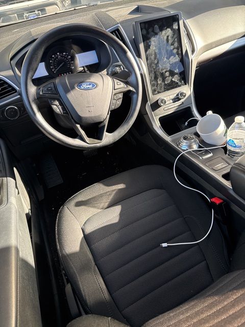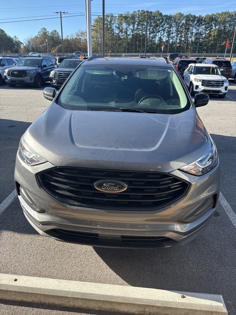 This 2024 Ford Edge SE in Carbonized Gray Metallic features: 4D Sport Utility, EcoBoost 2.0L I4 GTDi DOHC Turbocharged VCT, 8-Speed Automatic, AWD, **LOCAL TRADE**, 12" LCD Productivity Touchscreen, 4-Wheel Disc Brakes, 4G WiFi Hotspot Telematics, 6 Speakers, ABS brakes, AM/FM radio: SiriusXM with 360L, Auto High-beam Headlights, Auto LED Headlights, Automatic temperature control, Backup Camera, Black Appearance Package, Black Badges, Black Grille & Surround, Black Mirror Caps, Black Painted Lower Bodyside Molding, Black Painted Skid Plate, Body-Color Front & Rear Bumpers, Brake assist, Compass, Delay-off headlights, Electronic Stability Control, Emergency communication system: SYNC 4 911 Assist, Equipment Group 100A, Four wheel independent suspension, Front Bucket Seats, Front Center Armrest w/Storage, Fully automatic headlights, Illuminated entry, Low tire pressure warning, Outside temperature display, Overhead console, Panic alarm, Parking Sensors, Power door mirrors, Power Mirror Package, Power Package, Power steering, Power windows, Push Button Start, Rear Parking Sensors, Rear seat center armrest, Rear window wiper, Remote keyless entry, Reverse Brake Assist, Reverse Sensing, SE Package, SiriusXM w/360L, Speed-Sensitive Wipers, Split folding rear seat, Spoiler, Steering wheel mounted audio controls, SYNC 4A w/Enhanced Voice Recognition, Telescoping steering wheel, Tilt steering wheel, Traction control, Trip computer, Wheels: 18" Sparkle Silver-Painted Aluminum, Wheels: 19" High-Gloss Black Painted Aluminum.