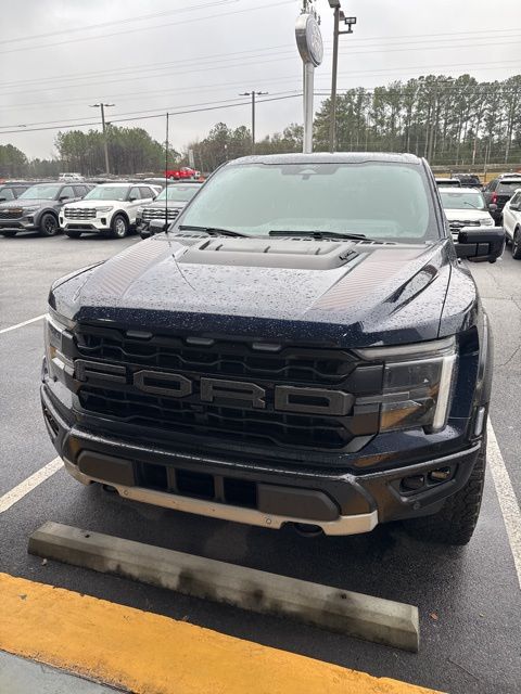 This 2024 Ford F-150 Raptor in Antimatter Blue Metallic features: 4D SuperCrew, 3.5L V6 EcoBoost, 10-Speed Automatic, 4WD, **LOCAL TRADE**, 12" LCD Productivity Touchscreen, 14 Speakers, 17" Cast Aluminum Wheels, 360-Degree Camera, 4-Wheel Disc Brakes, 5G WiFi Hotspot Telematics, ABS brakes, Adaptive Cruise Control, Adaptive suspension, Adjustable pedals, AM/FM radio: SiriusXM with 360L, Android Auto, Apple Carplay, Auto Emergency Braking, Auto High-beam Headlights, Auto LED Headlights, Auto tilt-away steering wheel, Auto-dimming door mirrors, Auto-dimming Rear-View mirror, Automatic temperature control, Backup Camera, Blind Spot Monitoring, BLIS w/ Cross Traffic Alert, Bluetooth w/ Audio Streaming, Brake assist, Cold Weather Package, Compass, Delay-off headlights, Electronic Locking w/4.10 Axle Ratio, Electronic Stability Control, Emergency communication system: SYNC 4 911 Assist, Equipment Group 801A Standard, Fox Suspension, Front & Rear Park Assist, Front Center Armrest, Front dual zone A/C, Front fog lights, Front wheel independent suspension, Fully automatic headlights, Garage door transmitter, Heads-Up Display, Heated door mirrors, Heated front seats, Heated rear seats, Heated steering wheel, Hill Descent Control, Illuminated entry, Lane Departure Warning System, Leather Seats, Leather Trim Seats, LED Foglights, LED Projector Headlights, Low tire pressure warning, Memory Package, Memory seat, Multimedia Package, Navigation system: Connected Navigation, Off Road Package, Outside temperature display, Overhead console, Panic alarm, Panoramic Sunroof/Moonroof, Parking Sensors, Pedal memory, Post Collision Braking, Power door mirrors, Power Mirror Package, Power Package, Power passenger seat, Power Sliding Rear Window, Premium Audio Package, Premium Sound Package, Pro Trailer Backup Assist, Pro Trailer Hitch Assist, Push Button Start, Radio data system, Radio: B&O Unleashed Sound System by Bang & Olufsen, Rain sensing wipers, Rear step bumper, Remote Start, Reverse Brake Assist, Reverse Sensing, Safety Package, Security system, Skid Plate Package, Speed control, Speed-sensing steering, Split folding rear seat, Steering wheel memory, Steering wheel mounted audio controls, SYNC 4 w/Enhanced Voice Recognition, Telescoping steering wheel, Tilt steering wheel, Tough Bed Spray-In Bedliner, Tow Package, Traction control, Trailer Package, Trip computer, Turn signal indicator mirrors, Twin Panel Moonroof, Ventilated front seats, Wireless Charging Pad.
