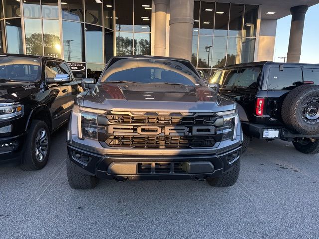This 2024 Ford F-150 Raptor in Carbonized Gray Metallic features: 4D SuperCrew, 3.5L V6 EcoBoost, 10-Speed Automatic, 4WD, **LOCAL TRADE**, 12" LCD Productivity Touchscreen, 14 Speakers, 17" Cast Aluminum Wheels, 360-Degree Camera, 4-Wheel Disc Brakes, 5G WiFi Hotspot Telematics, ABS brakes, Adaptive Cruise Control, Adaptive suspension, Adjustable pedals, AM/FM radio: SiriusXM with 360L, Auto Emergency Braking, Auto High-beam Headlights, Auto LED Headlights, Auto tilt-away steering wheel, Auto-dimming door mirrors, Auto-dimming Rear-View mirror, Automatic temperature control, Backup Camera, Blind Spot Monitoring, BLIS w/ Cross Traffic Alert, Bluetooth w/ Audio Streaming, Brake assist, Cold Weather Package, Compass, Delay-off headlights, Electronic Locking w/4.10 Axle Ratio, Electronic Stability Control, Emergency communication system: SYNC 4 911 Assist, Equipment Group 801A Standard, Front Center Armrest, Front dual zone A/C, Front fog lights, Front wheel independent suspension, Fully automatic headlights, Garage door transmitter, Heads-Up Display, Heated door mirrors, Heated front seats, Heated rear seats, Heated steering wheel, Hill Descent Control, Illuminated entry, Lane Departure Warning System, Lane Keeping System, Leather Seats, Leather Trim Seats, LED Foglights, LED Projector Headlights, Low tire pressure warning, Memory seat, Navigation system: Connected Navigation, Off Road Package, Outside temperature display, Overhead console, Panic alarm, Panoramic Sunroof/Moonroof, Parking Sensors, Pedal memory, Post Collision Braking, Power door mirrors, Power Mirror Package, Power Package, Power passenger seat, Power Sliding Rear Window, Pre Collision Assist w/ AEB, Premium Audio Package, Premium Sound Package, Pro Trailer Backup Assist, Pro Trailer Hitch Assist, Push Button Start, Radio data system, Radio: B&O Unleashed Sound System by Bang & Olufsen, Rain sensing wipers, Rear step bumper, Remote keyless entry, Remote Start, Reverse Brake Assist, Reverse Sensing, Security system, Speed control, Speed-sensing steering, Split folding rear seat, Steering wheel memory, Steering wheel mounted audio controls, SYNC 4 w/Enhanced Voice Recognition, Telescoping steering wheel, Tilt steering wheel, Tow Package, Traction control, Trailer Package, Trip computer, Turn signal indicator mirrors, Twin Panel Moonroof, Ventilated front seats, Wireless Charging Pad.