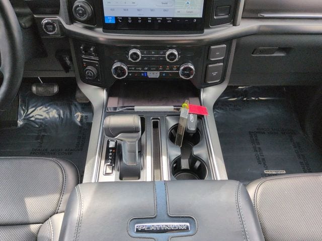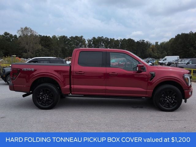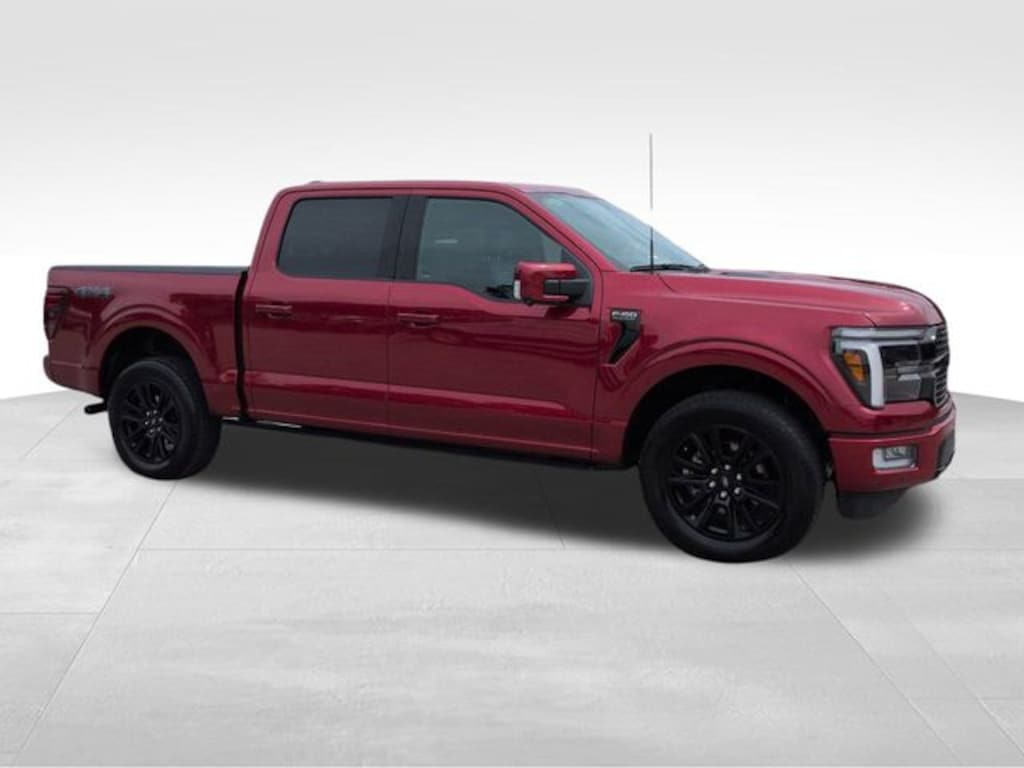 This 2024 Ford F-150 Platinum in Rapid Red Metallic Tinted Clearcoat features: 4D SuperCrew, 3.5L V6 EcoBoost, 10-Speed Automatic, 4WD, 12" LCD Productivity Touchscreen, 14 Speakers, 360-Degree Camera, 4-Wheel Disc Brakes, 5G WiFi Hotspot Telematics, ABS brakes, Adaptive Cruise Control, Adjustable pedals, AM/FM radio: SiriusXM with 360L, Auto Emergency Braking, Auto High-beam Headlights, Auto LED Headlights, Auto tilt-away steering wheel, Auto-dimming door mirrors, Auto-dimming Rear-View mirror, Automatic temperature control, Backup Camera, Blind Spot Monitoring, BLIS w/ Cross Traffic Alert, Bluetooth w/ Audio Streaming, Brake assist, Cold Weather Package, Compass, Continuously Controlled Damping, Delay-off headlights, Electronic Locking w/3.55 Axle Ratio, Electronic Stability Control, Emergency communication system: SYNC 4 911 Assist, Equipment Group 702A High, Front Center Armrest, Front dual zone A/C, Front fog lights, Front wheel independent suspension, Fully automatic headlights, Garage door transmitter, Hard Folding Tonneau Pickup Box Cover, Heads-Up Display, Heated door mirrors, Heated front seats, Heated rear seats, Heated steering wheel, Illuminated entry, Lane Keeping System, Leather Seats, LED Foglights, LED Projector Headlights, Low tire pressure warning, Memory Package, Memory seat, Navigation system: Connected Navigation, Outside temperature display, Overhead console, Panic alarm, Panoramic Sunroof/Moonroof, Parking Sensors, Pedal memory, Post Collision Braking, Power door mirrors, Power Mirror Package, Power Package, Power passenger seat, Power Sliding Rear Window, Pre Collision Assist w/ AEB, Radio data system, Radio: B&O Unleashed Sound System by Bang & Olufsen, Rain sensing wipers, Rear seat center armrest, Rear step bumper, Remote keyless entry, Reverse Brake Assist, Reverse Sensing, Security system, Speed control, Split folding rear seat, Steering wheel memory, Steering wheel mounted audio controls, SYNC 4 w/Enhanced Voice Recognition, Telescoping steering wheel, Tilt steering wheel, Tough Bed Spray-In Bedliner, Tow Package, Traction control, Trailer Package, Trip computer, Turn signal indicator mirrors, Twin Panel Moonroof, Unique Multi-Contour Leather Bucket Seats, Variably intermittent wipers, Ventilated front seats, Wheel Well Liner, Wheels: 20" Painted Gloss Ebony Black.
