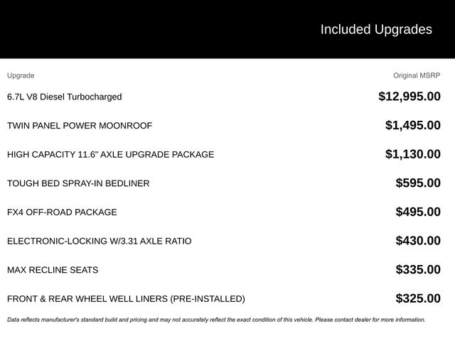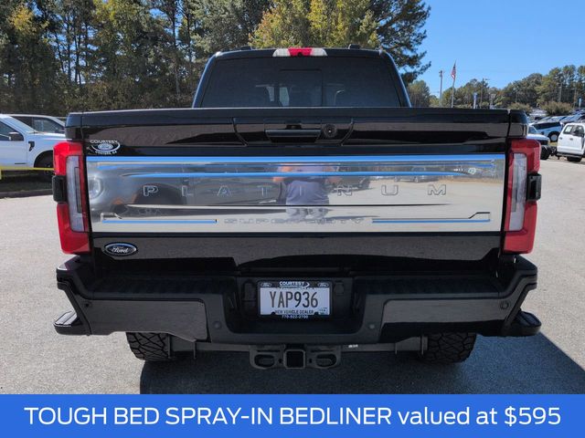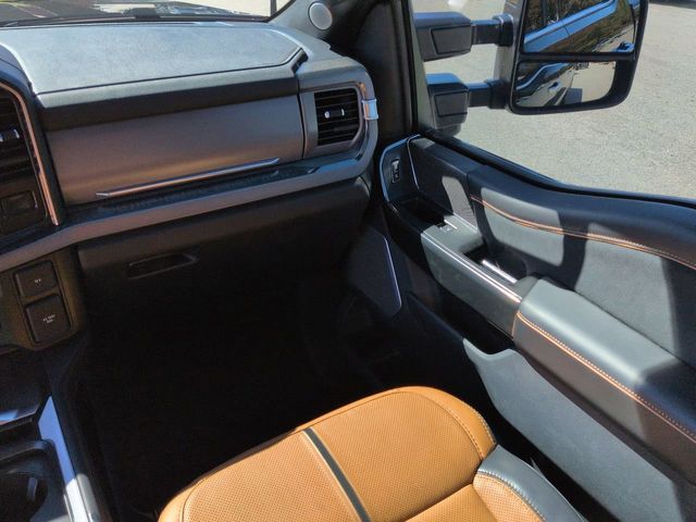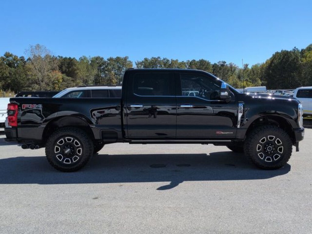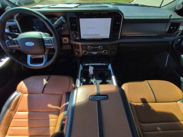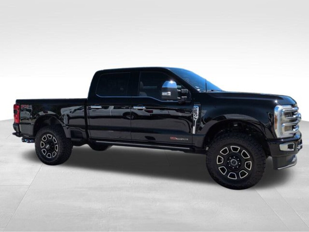 This 2024 Ford F-250SD Platinum in Agate Black Metallic features: 4D Crew Cab, 6.7L High Output Power Stroke V8 Diesel, 10-Speed Automatic, 4WD, **LOCAL TRADE**, 12" LCD Productivity Touchscreen, 360-Degree Camera, 4-Wheel Disc Brakes, 5G WiFi Hotspot Telematics, ABS brakes, Adaptive Cruise Control, Adjustable pedals, AM/FM radio: SiriusXM with 360L, Auto High-beam Headlights, Auto LED Headlights, Auto tilt-away steering wheel, Auto-dimming Rear-View mirror, Automatic temperature control, Backup Camera, Brake assist, Cold Weather Package, Compass, Delay-off headlights, Electronic Stability Control, Emergency communication system: SYNC 4 911 Assist, Exterior Parking Camera Rear, F-250 >10K GVWR Package, Flow-Through Console, Front & Rear Wheel Well Liners (Pre-Installed), Front Bucket Seats, Front Center Armrest, Front dual zone A/C, Front fog lights, Fully automatic headlights, FX4 Off-Road Package, Garage door transmitter, Heated door mirrors, Heated front seats, Heated rear seats, Heated steering wheel, High Capacity 11.6" Axle Upgrade Package, Hill Descent Control, Illuminated entry, Intelligent Adaptive Cruise Control w/Stop-and-Go, Leather Seats, Leather steering wheel, LED Foglights, LED Projector Headlights, Low tire pressure warning, Memory Package, Memory seat, Navigation system: Connected Navigation (includes complimentary 1-year trial), Off Road Package, Off-Road Specifically Tuned Shock Absorbers, Order Code 703A, Outside temperature display, Overhead console, Panic alarm, Panoramic Sunroof/Moonroof, Pedal memory, Power door mirrors, Power Mirror Package, Power Package, Power passenger seat, Power Running Boards, Power Sliding Rear Window, Preferred Equipment Package, Premium Audio Package, Premium Sound Package, Push Button Start, Radio: B&O Unleashed Sound System by Bang & Olufsen, Rain sensing wipers, Rear seat center armrest, Rear step bumper, Remote keyless entry, Security system, SiriusXM Radio w/360L, Skid Plate Package, Split folding rear seat, Steering wheel memory, Steering wheel mounted audio controls, SYNC 4 w/Enhanced Voice Recognition, Telescoping steering wheel, Tilt steering wheel, Tough Bed Spray-In Bedliner, Traction control, Trip computer, Turn signal indicator mirrors, Twin Panel Power Moonroof, Unique FX4 Off-Road Box Decal, Ventilated front seats, Wireless Charging Pad.