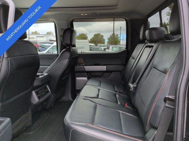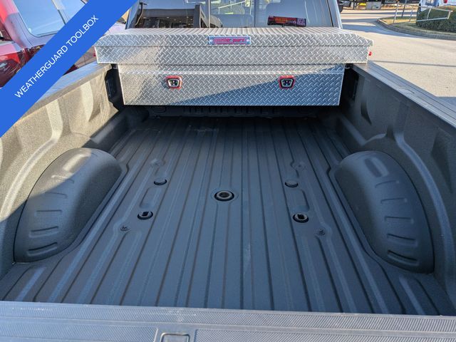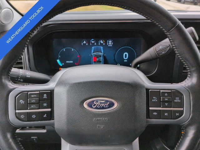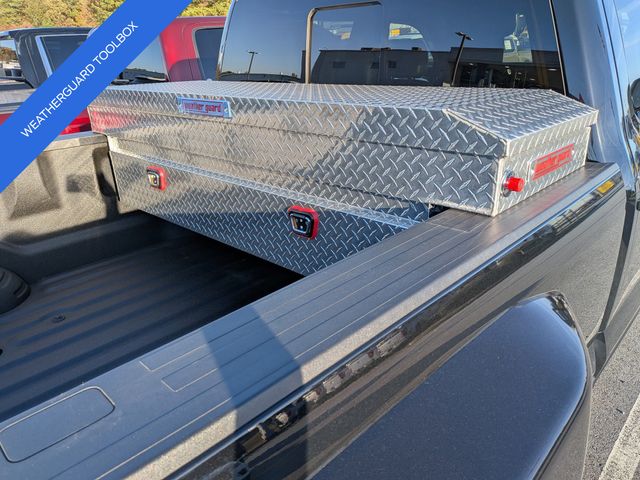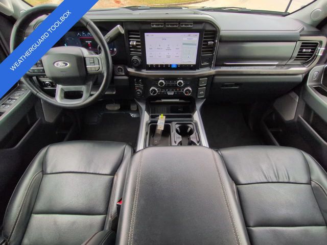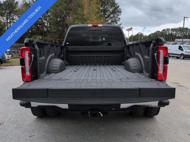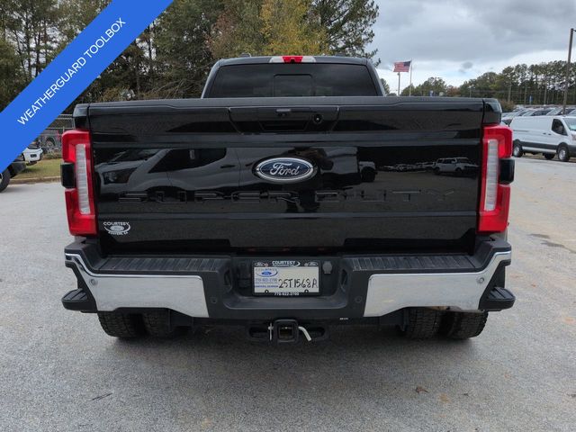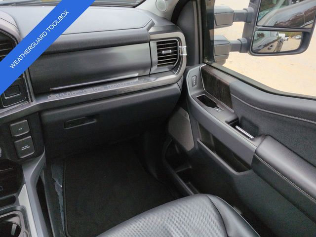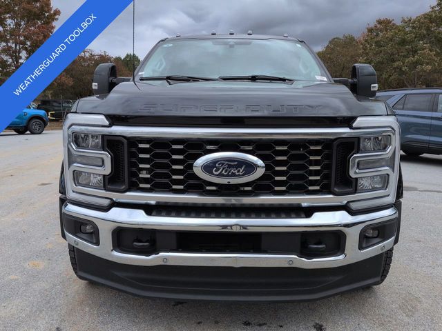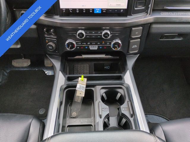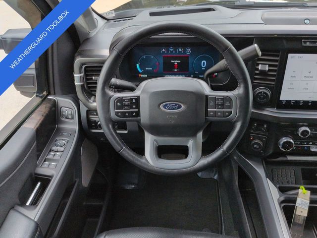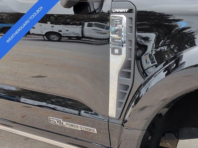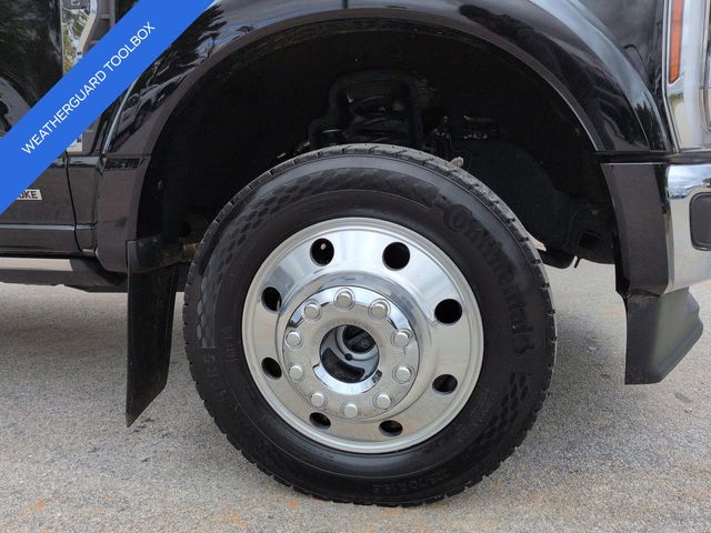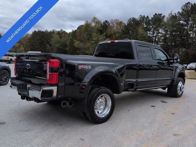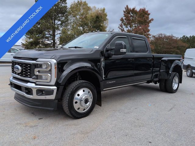 This 2024 Ford F-450SD Lariat in Agate Black Metallic features: 4D Crew Cab, Power Stroke 6.7L V8 DI 32V OHV Turbodiesel, 10-Speed Automatic, 4WD, **LOCAL TRADE**, **WEATHERGUARD BED TOOLBOX**, 12" LCD Productivity Touchscreen, 19.5" Forged Polished Aluminum Wheels, 360-Degree Camera, 4-Way Adjustable Headrests, 4-Wheel Disc Brakes, 5G WiFi Hotspot Telematics, ABS brakes, Auto Emergency Braking, Auto LED Headlights, Automatic temperature control, Backup Camera, Blind Spot Monitoring, BLIS w/ Cross Traffic Alert, Bluetooth w/ Audio Streaming, Brake assist, Compass, Delay-off headlights, Dual rear wheels, Electronic Stability Control, Emergency communication system: SYNC 4 911 Assist, Exterior Parking Camera Rear, Front dual zone A/C, Front Sensing System, Fully automatic headlights, FX4 Off-Road Package, GVWR: 14,000 lb Payload Package, Head-Up Display, Heated door mirrors, Hill Descent Control, Illuminated entry, Intelligent Adaptive Cruise Control w/Stop-and-Go, Lariat Package, Lariat Ultimate Package, Leather Seats, Limited Slip w/4.30 Axle Ratio, Off Road Package, Off-Road Specifically Tuned Shock Absorbers, Order Code 678A, Outside temperature display, Overhead console, Panoramic Sunroof/Moonroof, Parking Sensors, Power door mirrors, Power Mirror Package, Power Package, Power Running Boards, Power Sliding Rear Window, Power steering, Power windows, Power-Deployable Running Boards, Pre Collision Assist w/ AEB, Pro Trailer Backup Assist, Pro Trailer Hitch Assist, Radio: B&O Unleashed Sound System by Bang & Olufsen, Rear step bumper, Remote keyless entry, Reverse Brake Assist, Reverse Sensing, SiriusXM Radio w/360L, Skid Plate Package, Speed control, Split folding rear seat, Steering wheel mounted audio controls, SYNC 4 w/Enhanced Voice Recognition, Tailgate Step & Handle, Telescoping steering wheel, Tilt steering wheel, Tow Package, Traction control, Trailer Package, Trip computer, Turn signal indicator mirrors, Twin Panel Power Moonroof, Unique FX4 Off-Road Box Decal, Upfitter Switches (6), Variably intermittent wipers, Wireless Charging Pad.