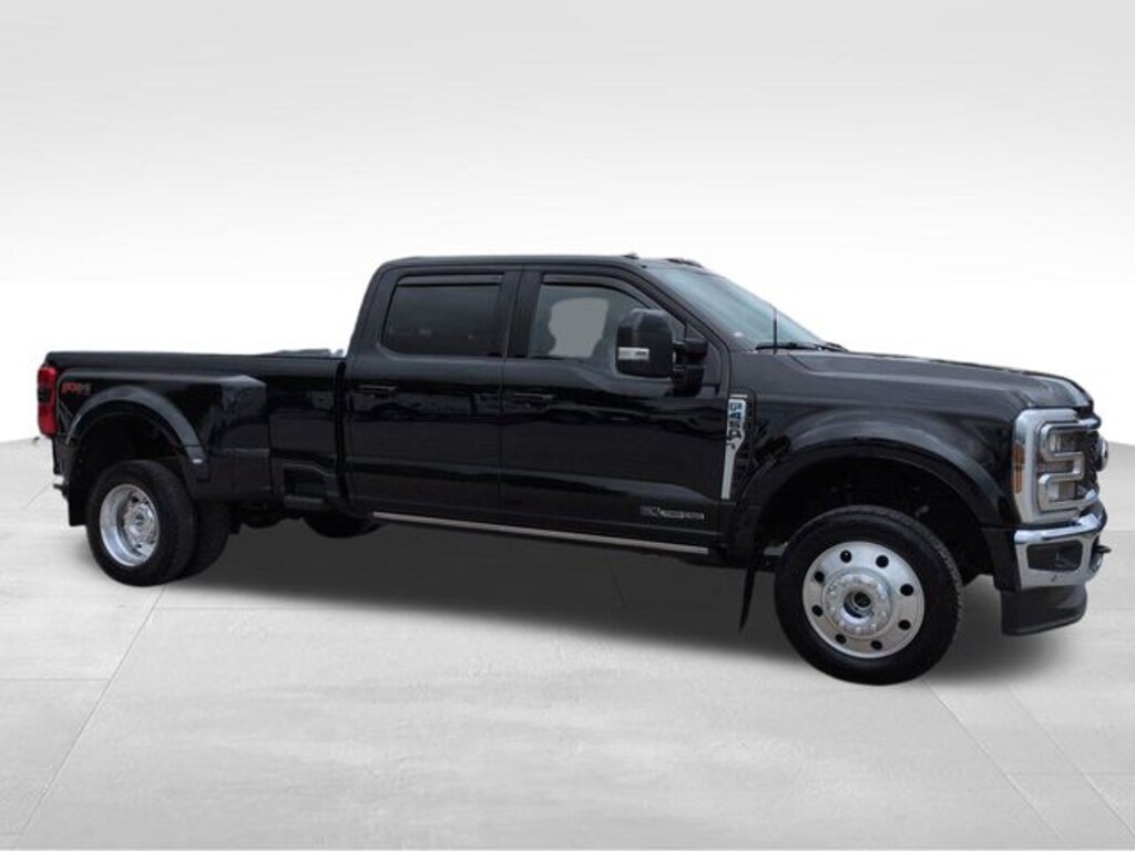 This 2024 Ford F-450SD Lariat in Agate Black Metallic features: 4D Crew Cab, Power Stroke 6.7L V8 DI 32V OHV Turbodiesel, 10-Speed Automatic, 4WD, **LOCAL TRADE**, 12" LCD Productivity Touchscreen, 19.5" Forged Polished Aluminum Wheels, 360-Degree Camera, 4-Way Adjustable Headrests, 4-Wheel Disc Brakes, 5G WiFi Hotspot Telematics, ABS brakes, Auto Emergency Braking, Auto LED Headlights, Automatic temperature control, Backup Camera, Blind Spot Monitoring, BLIS w/ Cross Traffic Alert, Bluetooth w/ Audio Streaming, Brake assist, Compass, Delay-off headlights, Dual rear wheels, Electronic Stability Control, Emergency communication system: SYNC 4 911 Assist, Exterior Parking Camera Rear, Front dual zone A/C, Front Sensing System, Fully automatic headlights, FX4 Off-Road Package, GVWR: 14,000 lb Payload Package, Head-Up Display, Heated door mirrors, Hill Descent Control, Illuminated entry, Intelligent Adaptive Cruise Control w/Stop-and-Go, Lariat Package, Lariat Ultimate Package, Leather Seats, Limited Slip w/4.30 Axle Ratio, Off Road Package, Off-Road Specifically Tuned Shock Absorbers, Order Code 678A, Outside temperature display, Overhead console, Panoramic Sunroof/Moonroof, Parking Sensors, Power door mirrors, Power Mirror Package, Power Package, Power Running Boards, Power Sliding Rear Window, Power steering, Power windows, Power-Deployable Running Boards, Pre Collision Assist w/ AEB, Pro Trailer Backup Assist, Pro Trailer Hitch Assist, Radio: B&O Unleashed Sound System by Bang & Olufsen, Rear step bumper, Remote keyless entry, Reverse Brake Assist, Reverse Sensing, SiriusXM Radio w/360L, Skid Plate Package, Speed control, Split folding rear seat, Steering wheel mounted audio controls, SYNC 4 w/Enhanced Voice Recognition, Tailgate Step & Handle, Telescoping steering wheel, Tilt steering wheel, Tow Package, Traction control, Trailer Package, Trip computer, Turn signal indicator mirrors, Twin Panel Power Moonroof, Unique FX4 Off-Road Box Decal, Upfitter Switches (6), Variably intermittent wipers, Wireless Charging Pad.