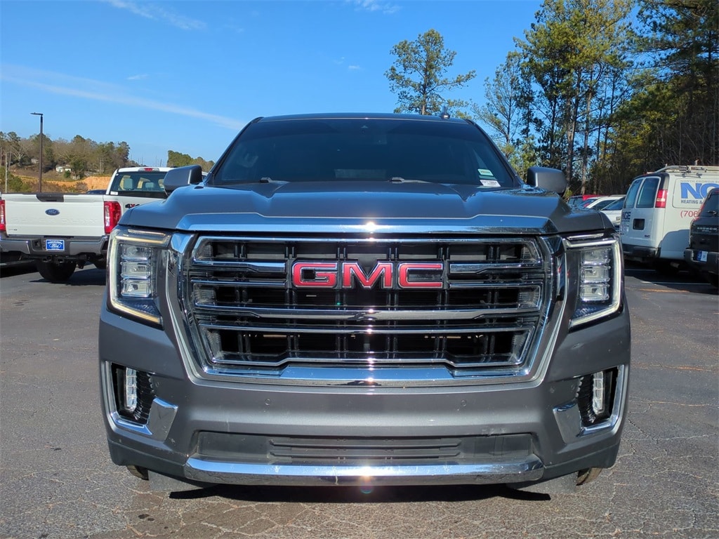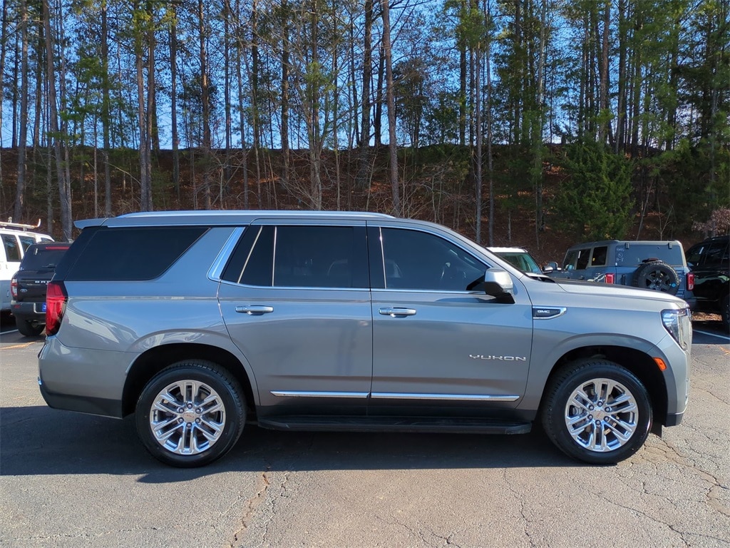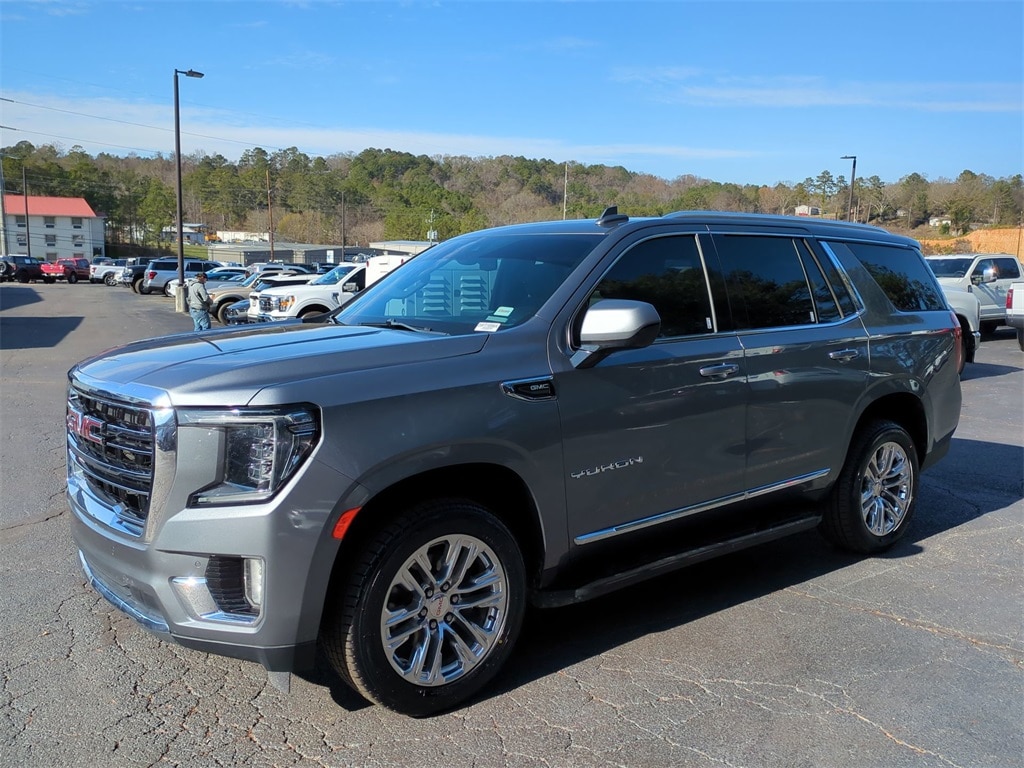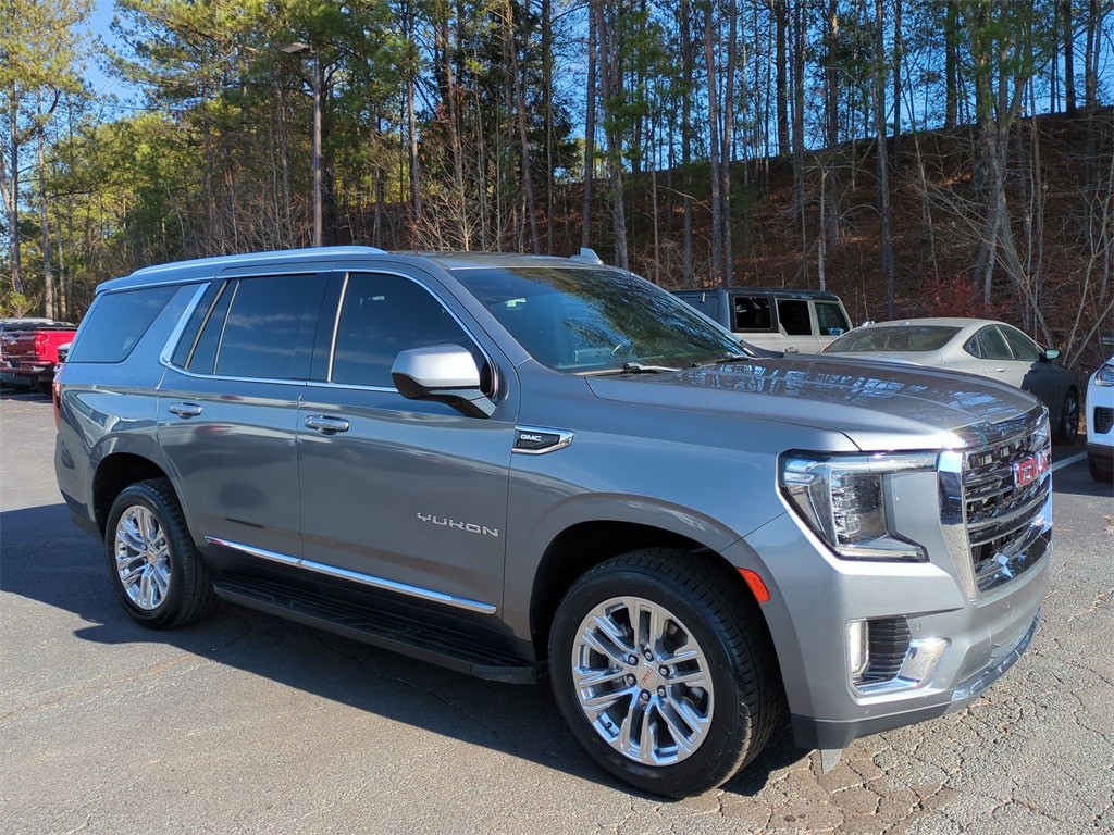 Satin Steel Metallic 2021 GMC Yukon SLT RWD SLT 10.25" Color Touchscreen, 3rd Row Seating, 4G WiFi Hotspot Telematics, Android Auto, Apple Carplay, Auto Emergency Braking, Auto LED Headlights, Backup Camera, Blind Spot Monitoring, Bluetooth w/ Audio Streaming, Bose High End Sound Package, Following Distance Indicator, Foward Collison Alert, Front & Rear Park Assist, Front Pedestrian Braking, HD Surround Vision, Lane Departure Warning, Lane Keeping System, Leather Seats, LED Foglights, Mechanical Limited Slip Differential, Memory Package, Multi Zone Climate Control, Parking Sensors, Power Mirror Package, Power Package, Premium Audio Package, Premium Sound Package, Push Button Start, Rear Climate Package, Rear Cross Traffic Alert, Remote Start, Reverse Brake Assist, Reverse Sensing, Safety Package, SLT Package, Wireless Charging Pad, 4D Sport Utility, EcoTec3 5.3L V8, 10-Speed Automatic with Overdrive, RWD, 12-Way Power Seat Adjusters, 2 Presets For Power Driver Seat, 3rd row seats: split-bench, 4-Wheel Disc Brakes, ABS brakes, AM/FM radio: SiriusXM with 360L, Apple CarPlay/Android Auto, Auto High-beam Headlights, Auto-dimming Rear-View mirror, Automatic Emergency Braking, Automatic temperature control, Bose 9-Speaker Stereo Audio System Feature, Brake assist, Bright Chrome Bodyside Moldings, Bright Front & Rear Door Sill Plates, Chrome Door Handles w/Body-Color Strip, Compass, Delay-off headlights, Electronic Stability Control, Emergency communication system: OnStar and GMC connected services capable, Following Distance Indicator, Forward Collision Alert, Four wheel independent suspension, Front & Rear Park Assist, Front Center Armrest, Front dual zone A/C, Front fog lights, Front Pedestrian Braking, Fully automatic headlights, Garage door transmitter, Hands-Free Power Programmable Rear Liftgate, HD Radio, Heated & Ventilated Driver & Front Passenger Seats, Heated door mirrors, Heated Driver & Front Passenger Seats, Illuminated entry, Inside Rear-View Auto-Dimming Mirror, IntelliBeam Automatic High Beam On/Off, Lane Change Alert w/Side Blind Zone Alert, Lane Keep Assist w/Lane Departure Warning, Leather steering wheel, Low tire pressure warning, Memory seat, Outside temperature display, Overhead console, Panic alarm, Perforated Leather Seating Surfaces, Power door mirrors, Power Liftgate, Power passenger seat, Preferred Equipment Group 4SA, Premium Smooth Ride Suspension, Radio: AM/FM/SiriusXM, Rain sensing wipers, Rear air conditioning, Rear Cross Traffic Alert, Rear seat center armrest, Rear window wiper, Remote keyless entry, Roof rack: rails only, Safety Alert Seat, Security system, SiriusXM w/360L, Speed control, Speed-sensing steering, Split folding rear seat, Spoiler, Steering wheel mounted audio controls, Telescoping steering wheel, Tilt steering wheel, Traction control, Trip computer, Universal Home Remote, Ventilated front seats, Wheels: 20" x 9" 6-Spoke Polished Aluminum.