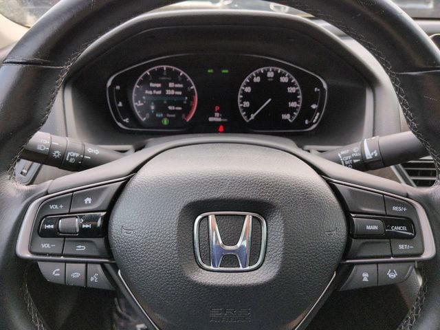 This 2019 Honda Accord EX-L in Platinum White Pearl features: 4D Sedan, 1.5T I4 DOHC 16V Turbocharged VTEC, CVT, FWD, **LOCAL TRADE**, 10 Speakers, 17" Machine-Finished Alloy Wheels, 4-Wheel Disc Brakes, ABS brakes, Adaptive Cruise Control, AM/FM radio: SiriusXM, Apple CarPlay/Android Auto, Auto High-beam Headlights, Auto-dimming Rear-View mirror, Automatic temperature control, Backup Camera, Blind Spot Information (BSI) System warning, Blind Spot Monitoring, Bluetooth w/ Audio Streaming, Brake assist, Delay-off headlights, Electronic Stability Control, Emergency communication system: HondaLink, Exterior Parking Camera Rear, Forward collision: Collision Mitigation Braking System (CMBS) + FCW mitigation, Four wheel independent suspension, Front Center Armrest, Front dual zone A/C, Front fog lights, Fully automatic headlights, Garage door transmitter: HomeLink, Heated door mirrors, Heated Front Bucket Seats, Illuminated entry, Lane Keeping System, Leather Seats, Leather Shift Knob, Leather steering wheel, Leather-Trimmed Seats, Low tire pressure warning, Memory Package, Memory seat, Outside temperature display, Overhead console, Panic alarm, Parking Sensors, Power door mirrors, Power driver seat, Power Mirror Package, Power moonroof, Power Package, Power passenger seat, Power steering, Power windows, Premium Audio Package, Premium Sound Package, Radio data system, Radio: 450-Watt AM/FM/HD Premium Audio System, Rear seat center armrest, Remote keyless entry, Reverse Brake Assist, Reverse Sensing, Security system, Speed control, Speed-sensing steering, Speed-Sensitive Wipers, Split folding rear seat, Steering wheel mounted audio controls, Telescoping steering wheel, Tilt steering wheel, Traction control, Trip computer, Turn signal indicator mirrors.