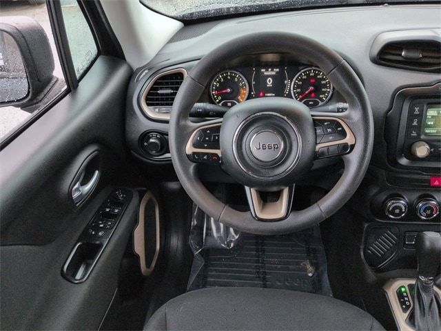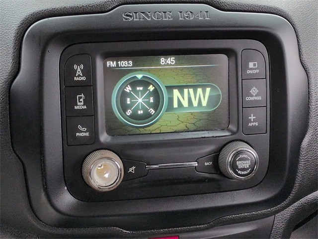 This 2016 Jeep Renegade Sport in Black features: 4D Sport Utility, 2.4L I4 MultiAir, 9-Speed 948TE Automatic, FWD, **LOCAL TRADE**, 16" x 6.5" Aluminum Wheels, 4-Wheel Disc Brakes, 5.0" Touchscreen Display, 6 Speakers, ABS brakes, Air Conditioning, Backup Camera, Black Side Roof Rails, Brake assist, Cloth Low-Back Bucket Seats, Compass, Deep Tint Sunscreen Glass, Delay-off headlights, Electronic Stability Control, Exterior Mirrors w/Heating Element, Four wheel independent suspension, Front Bucket Seats, Front Center Armrest, GPS Antenna Input, Hill Start Assist, Illuminated entry, Integrated Voice Command w/Bluetooth, Low tire pressure warning, No Satellite Coverage HI/AK, Outside temperature display, Overhead console, Panic alarm, ParkView Rear Back Up-Camera, Passive Entry Keyless Go Package, Passive Entry/Keyless Go, Power & Air Group, Power Heated Mirrors, Power Mirror Package, Power Package, Power steering, Power windows, Preferred Equipment Package, Push Button Start, Quick Order Package 27A, Radio data system, Radio: Uconnect 5.0, Rear window wiper, Remote keyless entry, Remote Start, Remote Start Package, Remote Start System, Remote USB Port - Charge Only, SIRIUS Satellite Radio Sound Group, SIRIUSXM Satellite Radio, Speed Control, Split folding rear seat, Spoiler, Sport Appearance Group, Steering wheel mounted audio controls, Telescoping steering wheel, Tilt steering wheel, Traction control, Trip computer, Uconnect 5.0 Radio w/Back-Up Camera.