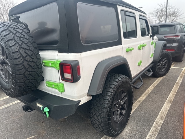 This 2020 Jeep Wrangler Unlimited Sport S in Bright White Clearcoat features: 4D Sport Utility, 2.0L I4 DOHC, 4WD, **LOCAL TRADE**, 4-Wheel Disc Brakes, 7.0" Touchscreen Display, 7" Color Touchscreen, 8 Speakers, ABS brakes, Air Conditioning w/Auto Temperature Control, Air Filtering, Android Auto, Apple CarPlay, Apple Carplay, Apple CarPlay (DISC), Automatic Headlamps, Backup Camera, Bluetooth w/ Audio Streaming, Brake assist, Cluster 7.0" TFT Color Display, Compass, Deep Tint Sunscreen Windows, Electronic Stability Control, Front 1-Touch Down Power Windows, Front Center Armrest w/Storage, Google Android Auto, Google Android Auto (DISC), GPS Antenna Input, Hill Descent Control, Hill Start Assist, Integrated Center Stack Radio, Integrated roll-over protection, Integrated Voice Command w/Bluetooth, Leather Wrapped Steering Wheel, Low tire pressure warning, Outside temperature display, ParkView Rear Back-Up Camera, Power Heated Mirrors, Power Mirror Package, Power Package, Power steering, Preferred Equipment Package, Push Button Start, Quick Order Package 22S Sport S, Radio data system, Radio: Uconnect 4 w/7" Display, Remote Keyless Entry, Security Alarm, SiriusXM Satellite Radio, Skid Plate Package, Speed control, Speed Sensitive Power Locks, Split folding rear seat, Sport Package, Steering wheel mounted audio controls, Sun Visors w/Illuminated Vanity Mirrors, Technology Group, Technology Package, Telescoping steering wheel, Tilt steering wheel, Traction control, Trip computer, USB Host Flip, Variably intermittent wipers, Wheels: 17" x 7.5" Tech Silver Aluminum.