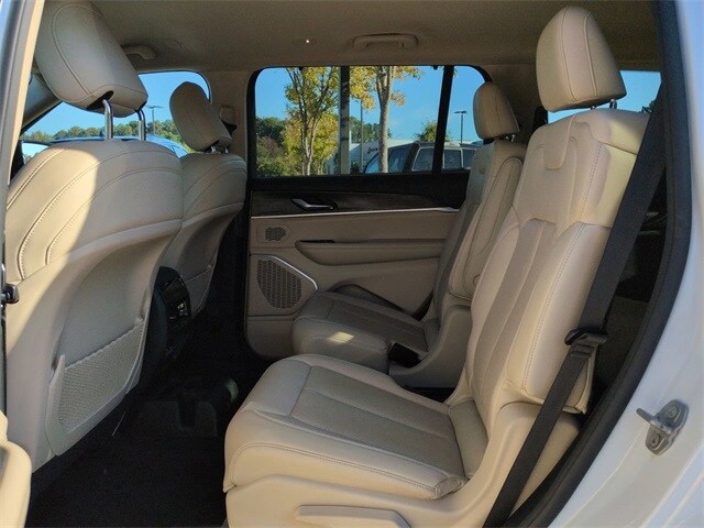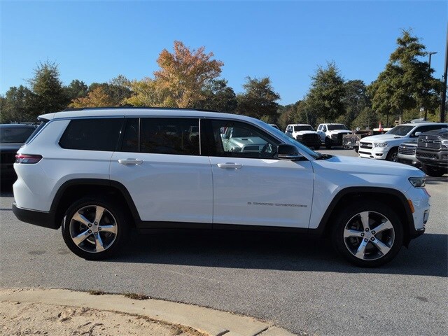 This 2021 Jeep Grand Cherokee L Limited in Bright White Clearcoat features: Grand Cherokee L Limited 4WD, 4D Sport Utility, 3.6L V6 24V VVT, 4WD, 10.1" Touchscreen Display, 220 Amp Alternator, 2nd Row Manual Window Shades, 3rd Row Seating, 3rd row seats: split-bench, 4-Wheel Disc Brakes, 4G WiFi Hotspot Telematics, 506 Watt Amplifier, 7 & 4 Pin Wiring Harness, 9 Amplified Speakers w/Subwoofer, ABS brakes, Adaptive Cruise Control, Android Auto, Apple CarPlay, Apple Carplay, Apple CarPlay/Android Auto, Audio memory, Auto High-beam Headlights, Auto-Dimming Exterior Driver Mirror, Automatic Headlamp Leveling System, Automatic temperature control, Backup Camera, Blind Spot Monitoring, Bluetooth w/ Audio Streaming, Brake assist, Capri Leather Seats w/Perforated Inserts, Class IV Receiver Hitch, Cold Weather Package, Compass, Connected Travel & Traffic Services, Connectivity - US/Canada, Delay-off headlights, Disassociated Touchscreen Display, Electronic Stability Control, Emergency communication system, Four wheel independent suspension, Front & Rear Park Assist, Front Center Armrest w/Storage, Front dual zone A/C, Front fog lights, Front Pedestrian Braking, Full Speed Auto Collision Warning Plus, Fully automatic headlights, Garage door transmitter, Google Android Auto, GPS Antenna Input, GPS Navigation, HD Radio, Heated door mirrors, Heated front seats, Heated rear seats, Heated steering wheel, Heavy-Duty Engine Cooling, Hill Start Assist, Illuminated entry, Integrated Center Stack Radio, Integrated Off-Road Camera, Integrated Voice Command w/Bluetooth, Intersection Assist, Intersection Collision Assist System, Lane Keeping System, Leather Seats, Leather steering wheel, Limited Package, Low tire pressure warning, Luxury Package, Luxury Tech Group II, Memory Package, Memory seat, Memory Steering Column, Multi Zone Climate Control, Navigation System, Outside temperature display, Panic alarm, Parking Sensors, ParkSense Front/Rear Park Assist w/Stop, ParkView Rear Back-Up Camera, Passive Entry - Front/Rear Doors, Liftgate, Power door mirrors, Power Liftgate, Power Mirror Package, Power Package, Power passenger seat, Power Tilt/Telescope Steering Column, Preferred Equipment Package, Premium Audio Package, Premium Sound Package, Quick Order Package 22E, Radio data system, Radio: Uconnect 5 Nav w/10.1" Display, Rain Sensitive Windshield Wipers, Rear air conditioning, Rear Back Up Camera Washer, Rear Cross Traffic Alert, Rear Load Leveling Suspension, Rear window wiper, Rearview Autodim Digital Display Mirror, Reclining 3rd row seat, Remote keyless entry, Reverse Brake Assist, Reverse Sensing, Roof rack: rails only, Safety Package, Security system, SiriusXM Satellite Radio, SiriusXM w/360L, Speed control, Speed-Sensitive Wipers, Split folding rear seat, Spoiler, Steering wheel mounted audio controls, Surround View Camera System, Technology Package, Telescoping steering wheel, Tilt steering wheel, Tow Package, Traction control, Trailer Hitch Zoom, Trailer Package, Trailer Tow Package (DISC), Trip computer, Turn signal indicator mirrors, USB Host Flip, Ventilated Front Seats, Wheels: 20" x 8.5" Polished/Painted Aluminum (DISC), Wireless Charging Pad, Wireless Charging Pad.