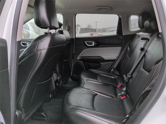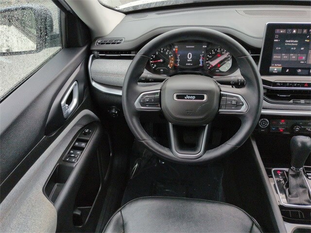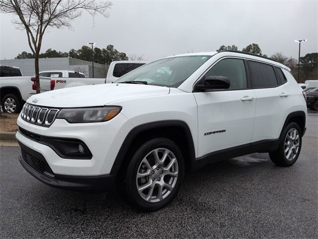 This 2022 Jeep Compass Latitude Lux in Bright White Clearcoat features: 4D Sport Utility, 2.4L I4, 9-Speed 948TE Automatic, 4WD, 10.1" Portriat Touchscreen, 4-Wheel Disc Brakes, ABS brakes, AM/FM radio: SiriusXM, Android Auto, Apple Carplay, Auto High-beam Headlights, Auto LED Headlights, Auto-dimming Rear-View mirror, Backup Camera, Blind Spot Monitoring, Bluetooth w/ Audio Streaming, Brake assist, Cold Weather Package, Compass, Delay-off headlights, Electronic Stability Control, Emergency communication system: SiriusXM Guardian, Four wheel independent suspension, Front Center Armrest w/Storage, Front fog lights, Front Pedestrian Braking, Full Speed Auto Collision Warning Plus, Fully automatic headlights, Heated door mirrors, Heated front seats, Heated steering wheel, Illuminated entry, Leather Seats, Leather Shift Knob, Leather Trimmed Bucket Seats, Low tire pressure warning, Outside temperature display, Overhead console, Panic alarm, ParkView Rear Back-Up Camera, Power door mirrors, Power driver seat, Power Mirror Package, Power Package, Power steering, Power windows, Preferred Equipment Package, Push Button Start, Quick Order Package 2GL, Radio: Uconnect 5 w/10.1" Display, Rear seat center armrest, Rear window wiper, Remote keyless entry, Remote Start, Roof rack: rails only, Security system, Speed control, Split folding rear seat, Spoiler, Steering wheel mounted audio controls, Telescoping steering wheel, Tilt steering wheel, Traction control, Trip computer, Variably intermittent wipers, Wheels: 18" x 7.0" Painted Aluminum.