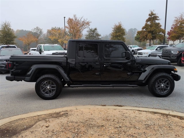 This 2022 Jeep Gladiator Sport in Black Clearcoat features: 4D Crew Cab, 3.6L V6 24V VVT, 8-Speed Automatic, 4WD, 115V Auxiliary Power Outlet, 220 Amp Alternator, 240 Amp Alternator, 4-Wheel Disc Brakes, 400W Inverter, 8.4" Radio & Premium Audio Group, 8.4" Touchscreen Display, ABS brakes, Air Conditioning w/Auto Temperature Control, Alpine Premium Audio System, Android Auto, Apple Carplay, Apple CarPlay/Android Auto, Auto-Dimming Rear-View Mirror, Automatic Headlamps, Backup Camera, Black 3-Piece Hard Top, Bluetooth w/ Audio Streaming, Body Color Fender Flares (2-Piece), Brake assist, Class IV Receiver Hitch, Cloth Low-Back Bucket Seats, Compass, Console Bin Task Light, Convenience Group, Convenience Package, Daytime Running Lamp System, Deep Tint Sunscreen Windows, Delay-off headlights, Electronic Stability Control, Emergency communication system: SiriusXM Guardian, Emergency/Assistance Call, For More Info, Call 800-643-2112, Freedom Panel Storage Bag, Front 1-Touch Down Power Windows, Front Center Armrest w/Storage, Front fog lights, GPS Antenna Input, GPS Navigation, HD Radio, Heavy-Duty Dana 44 Axles, Heavy-Duty Engine Cooling, Integrated Center Stack Radio, Integrated roll-over protection, Integrated Voice Command w/Bluetooth, Leather Wrapped Steering Wheel, Low tire pressure warning, Media Hub w/2 Charge Only USBs, Normal Duty Plus Suspension, Off Road Package, Off-Road Info Pages, Outside temperature display, ParkView Rear Back-Up Camera, Popular Equipment Package, Popular Equipment Package, Power Heated Mirrors, Power Mirror Package, Power Package, Power Tailgate Lock, Preferred Equipment Package, Premium Audio Package, Premium Sound Package, Push Button Start, Quick Order Package 24S Sport S, Radio: Uconnect 4C Nav w/8.4" Display, Rear Sliding Window, Rear Window Defroster, Remote Keyless Entry, Remote Start, Security Alarm, SiriusXM Radio Service, SiriusXM Satellite Radio, SiriusXM Traffic Plus, SiriusXM Travel Link, Skid Plate Package, Speed control, Speed Sensitive Power Locks, Split folding rear seat, Sport Package, Sport S, Sun Visors w/Illuminated Vanity Mirrors, Telescoping steering wheel, Tilt steering wheel, Traction control, Trailer Hitch Zoom, Trailer Tow Package, Trip computer, Universal Garage Door Opener, USB Host Flip, Variably intermittent wipers, Wheels: 17" x 7.5" Tech Silver Aluminum.