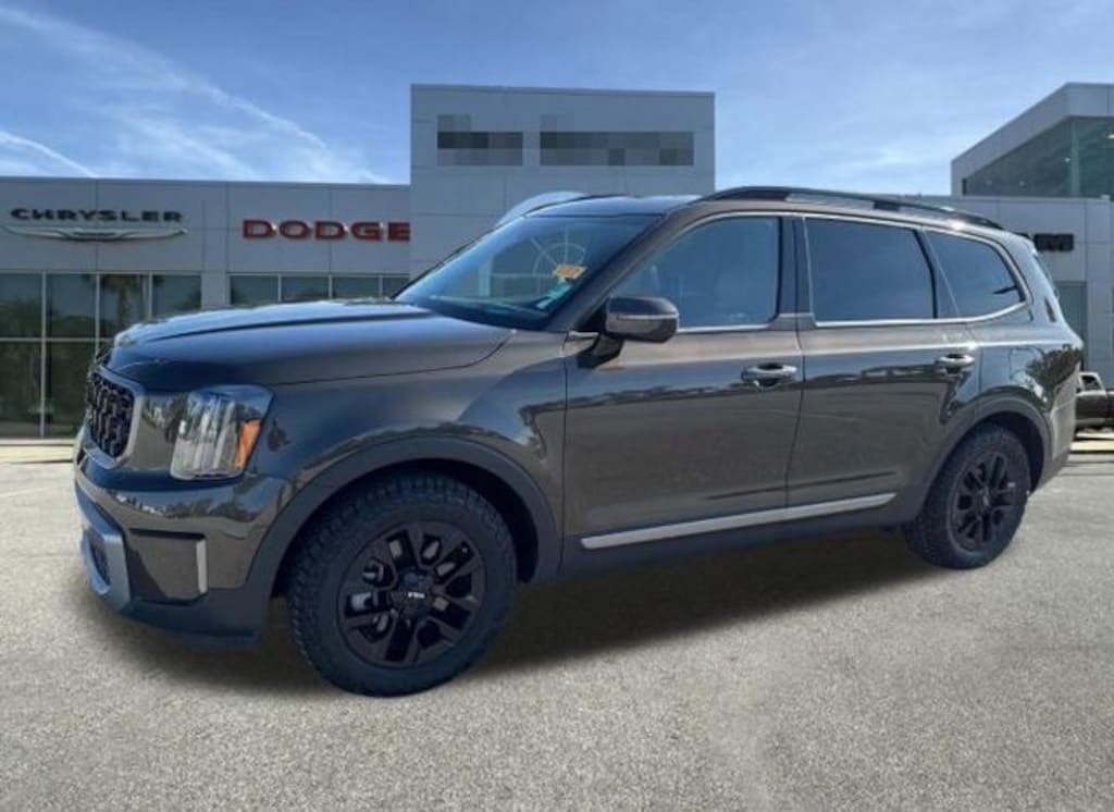 This 2023 Kia Telluride SX-Prestige X-Pro in Dark Moss features: 4D Sport Utility, 3.8L V6 DGI DOHC Dual CVVT, 8-Speed Automatic, AWD, 10 Speakers, 3rd Row Seating, 3rd row seats: split-bench, 4-Wheel Disc Brakes, ABS brakes, Adaptive Suspension, AM/FM radio: SiriusXM, Apple CarPlay & Android Auto, Auto High-beam Headlights, Auto LED Headlights, Auto-dimming Rear-View mirror, Auto-leveling suspension, Automatic temperature control, Backup Camera, Blind Spot Monitoring, Bluetooth w/ Audio Streaming, Brake assist, Cold Weather Package, Compass, Delay-off headlights, DVD Entertainment Package, Electronic Stability Control, Emergency communication system: 911 Connect, Exterior Parking Camera Rear, Four wheel independent suspension, Front dual zone A/C, Front fog lights, Fully automatic headlights, Garage door transmitter: HomeLink, harman/kardon® Speakers, Heads-Up Display, Heated & Ventilated Front Bucket Seats, Heated door mirrors, Heated rear seats, Heated steering wheel, Illuminated entry, Leather Seats, Leather Shift Knob, Leather steering wheel, Low tire pressure warning, Memory Package, Memory seat, Multi Zone Climate Control, Navigation System, Outside temperature display, Overhead console, Panic alarm, Panoramic Sunroof/Moonroof, Parking Sensors, Power door mirrors, Power Liftgate, Power Mirror Package, Power Package, Power passenger seat, Premium Audio Package, Premium Nappa Leather Seat Trim, Premium Sound Package, Radio data system, Radio: AM/FM harman/kardon Audio System, Rain sensing wipers, Rear air conditioning, Rear audio controls, Rear Climate Package, Rear Cross Traffic Alert, Rear Seat Entertainment System, Rear window wiper, Remote keyless entry, Reverse Brake Assist, Reverse Sensing, Roof rack: rails only, Safety Package, Security system, Smart Key w/ Push Button and Remote Start, Speed control, Speed-sensing steering, Split folding rear seat, Spoiler, Steering wheel mounted audio controls, Telescoping steering wheel, Terracotta Interior Color Package, Tilt steering wheel, Tow Package, Traction control, Trailer Package, Trip computer, Turn signal indicator mirrors, Ventilated front seats, Wheels: 18" x 7.5" Black Finish X-PRO Exclusive, Wireless Charging Pad.