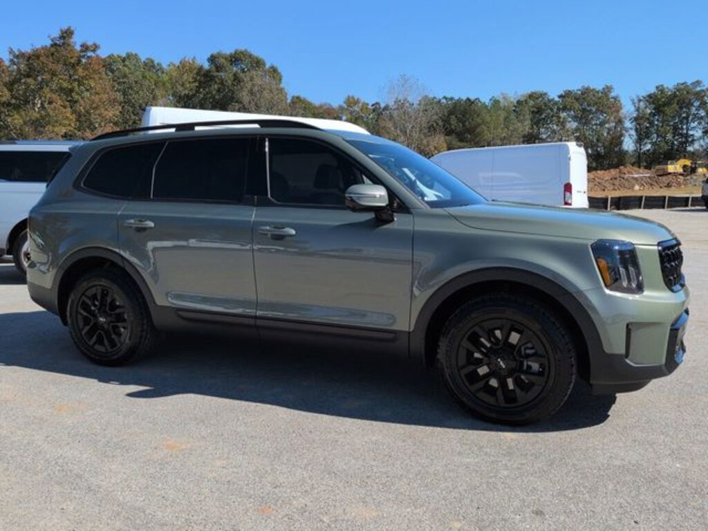 This 2024 Kia Telluride SX X-Pro in Jungle Green features: 4D Sport Utility, 3.8L V6 DOHC, 8-Speed Automatic, AWD, **LOCAL TRADE**, 10 Speakers, 12.3" HD Color Driver Cluster, 12" LCD Productivity Touchscreen, 3rd Row Seating, 3rd row seats: split-bench, 4-Wheel Disc Brakes, ABS brakes, Adaptive Suspension, AM/FM radio: SiriusXM, Apple CarPlay & Android Auto, Auto High-beam Headlights, Auto-dimming Rear-View mirror, Auto-leveling suspension, Automatic temperature control, Backup Camera, Blind Spot Monitoring, Brake assist, Cold Weather Package, Compass, Delay-off headlights, Electronic Stability Control, Emergency communication system: 911 Connect, Exterior Parking Camera Rear, Four wheel independent suspension, Front & Rear Park Assist, Front Center Armrest, Front dual zone A/C, Front fog lights, Fully automatic headlights, Garage door transmitter: HomeLink, harman/kardon® Speakers, Heated & Ventilated Front Bucket Seats, Heated door mirrors, Heated steering wheel, Illuminated entry, Lane Departure Warning, Lane Keeping System, Leather Seat Trim, Leather Seats, Leather Shift Knob, Leather steering wheel, LED Projector Headlights, Low tire pressure warning, Memory Package, Memory seat, Multi Zone Climate Control, Multimedia Package, Navigation System, Outside temperature display, Overhead console, Panic alarm, Panoramic Sunroof/Moonroof, Parking Sensors, Power door mirrors, Power driver seat, Power Liftgate, Power Mirror Package, Power Package, Power passenger seat, Premium Audio Package, Premium Sound Package, Push Button Start, Radio data system, Radio: AM/FM Harman Kardon Audio System, Rear air conditioning, Rear audio controls, Rear Climate Package, Rear Cross Traffic Alert, Rear window wiper, Reclining 3rd row seat, Remote keyless entry, Remote Start, Reverse Brake Assist, Reverse Sensing, Roof rack: rails only, Safety Package, Sage Green Interior Color Package, Security system, Smart Key w/ Push Button and Remote Start, Speed control, Speed-sensing steering, Split folding rear seat, Spoiler, Steering wheel mounted audio controls, Telescoping steering wheel, Tilt steering wheel, Tow Package, Traction control, Trailer Package, Trip computer, Turn signal indicator mirrors, Variably intermittent wipers, Ventilated front seats, Wheels: 18" x 7.5" Black Finish X-PRO Exclusive, Wireless Charging Pad.