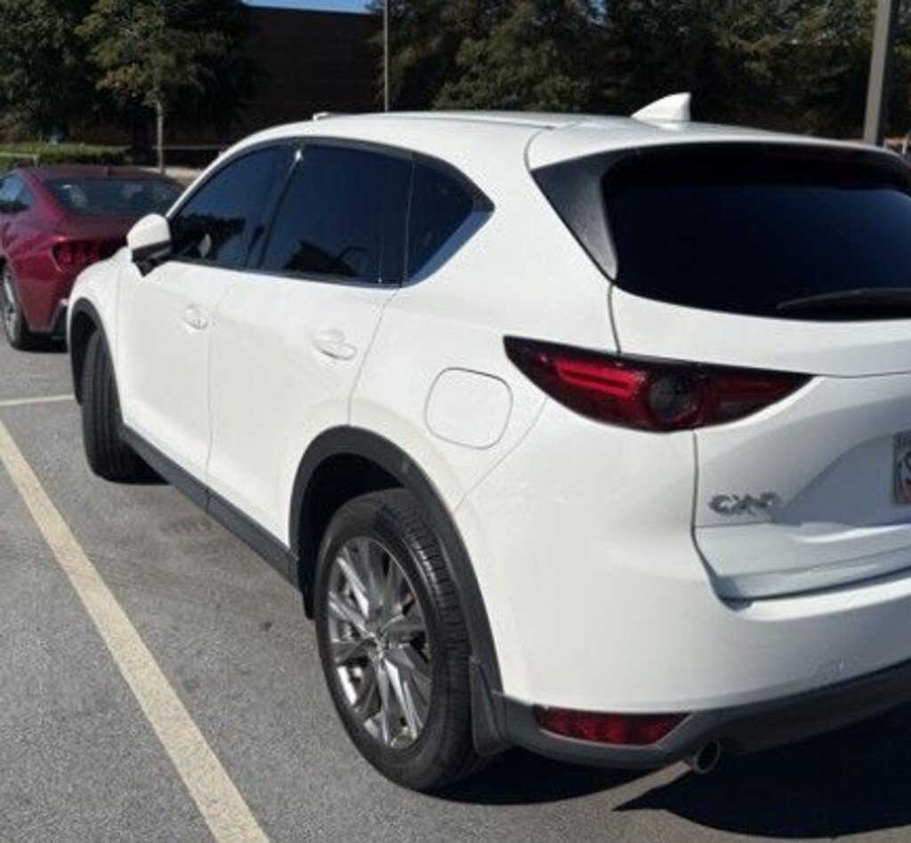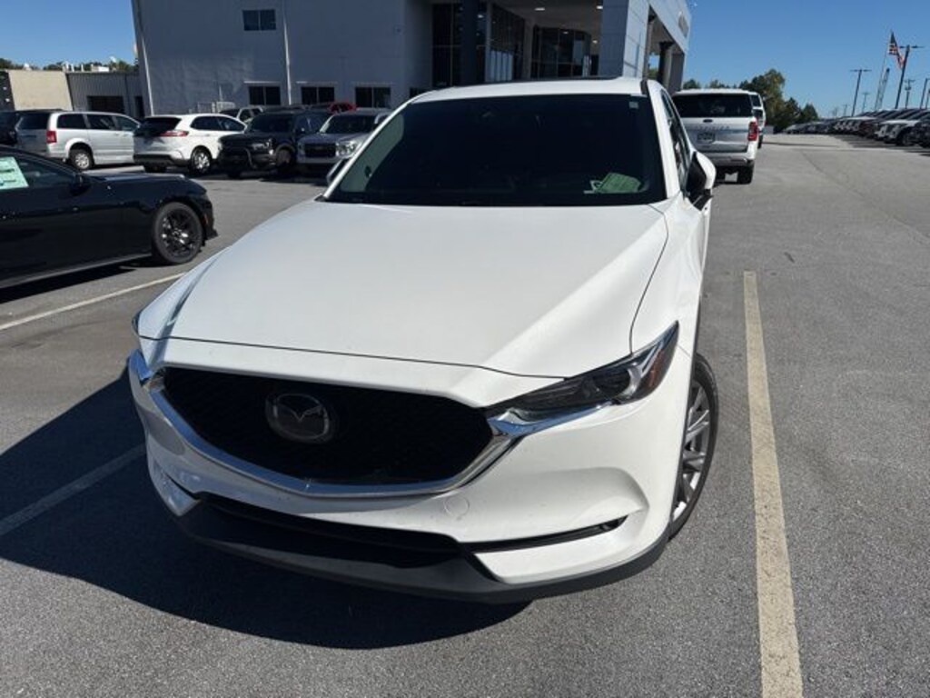 This 2021 Mazda CX-5 Grand Touring in Snowflake White Pearl Mica features: 4D Sport Utility, SKYACTIV® 2.5L 4-Cylinder DOHC 16V, 6-Speed Automatic, FWD, **LOCAL TRADE**, 10 Speakers, 10.25" Color Touchscreen, 4-Wheel Disc Brakes, ABS brakes, Active Driving Display (Windshield Type), AM/FM radio: SiriusXM, AppLink/Apple CarPlay and Android Auto, Auto High-beam Headlights, Auto LED Headlights, Auto-dimming Rear-View mirror, Automatic Power Folding Side Mirrors, Automatic temperature control, Backup Camera, Blind Spot Monitoring, Bluetooth w/ Audio Streaming, Bose 10-Speaker Premium Audio Sound System, Bose High End Sound Package, Brake assist, Cold Weather Package, Delay-off headlights, Electronic Stability Control, Emergency communication system: MAZDA CONNECT, Exterior Parking Camera Rear, Four wheel independent suspension, Front Center Armrest, Front dual zone A/C, Front fog lights, Fully automatic headlights, GT Premium Package, Heated door mirrors, Heated Front Bucket Seats, Heated Rear Seats, Heated Steering Wheel, Hill Start Assist, Illuminated entry, Lane Departure Warning, Lane Keeping System, Leather Seat Trim, Leather Seats, Leather Shift Knob, LED Foglights, Low tire pressure warning, Memory Package, Memory seat, Outside temperature display, Overhead console, Panic alarm, Parking Sensors, Power door mirrors, Power Liftgate, Power Mirror Package, Power moonroof, Power Package, Power passenger seat, Premium Audio Package, Premium Sound Package, Radio data system, Radio: AM/FM/HD Audio System, Rain sensing wipers, Rear Cross Traffic Alert, Rear seat center armrest, Rear window wiper, Remote keyless entry, Reverse Brake Assist, Reverse Sensing, Safety Package, Snowflake White Pearl Mica Paint, Speed control, Speed-sensing steering, Split folding rear seat, Spoiler, Steering wheel mounted audio controls, Sunroof/Moonroof, Telescoping steering wheel, Tilt steering wheel, Traction control, Trip computer, Turn signal indicator mirrors, Ventilated Front Seats, Wheels: 19" x 7J Aluminum Alloy, Windshield Wiper De-Icer.