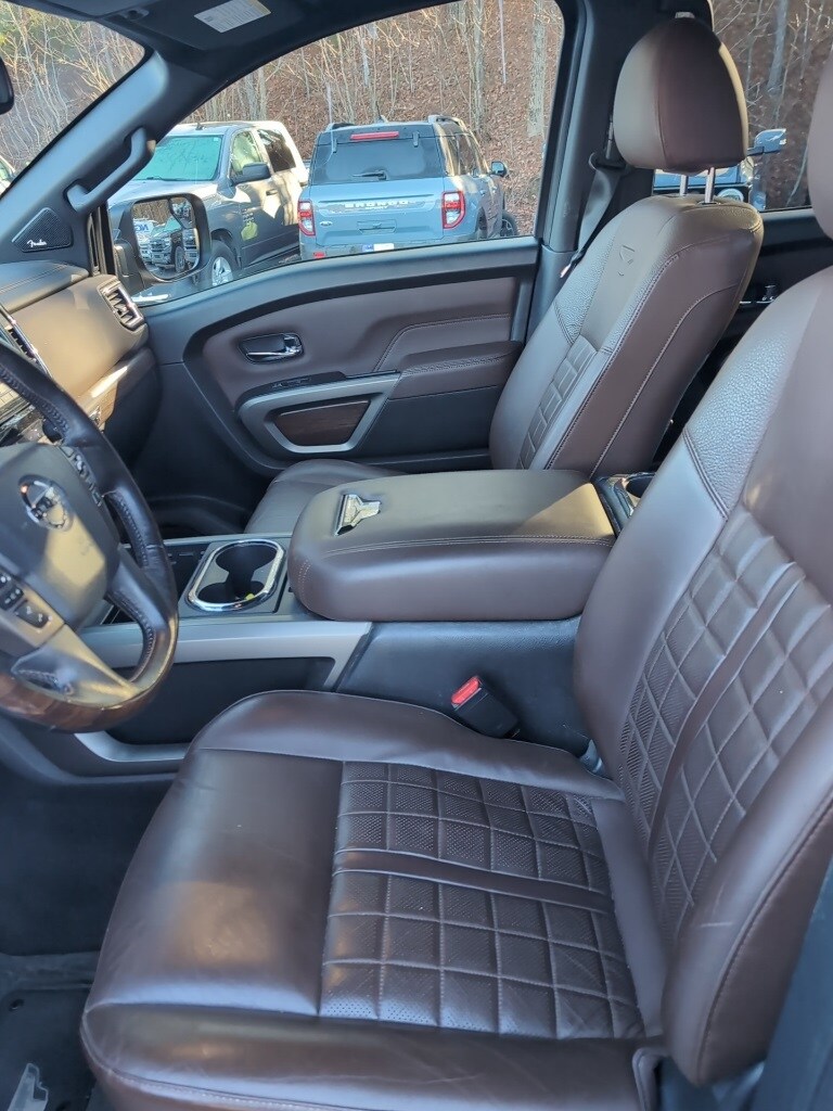 Pearl White Metallic 2021 Nissan Titan Platinum Reserve 4WD 4WD Platinum Reserve 4WD **LOCAL TRADE**, 360-Degree Camera, Android Auto, Apple Carplay, Auto Emergency Braking, Auto LED Headlights, Backup Camera, Blind Spot Monitoring, Bluetooth w/ Audio Streaming, Cold Weather Package, Driver Attention Warning, Foward Collison Alert, Hill Start Assist, Lane Keeping System, Leather Seats, Memory Package, Parking Sensors, Power Mirror Package, Power Package, Power Sliding Rear Window, Push Button Start, Rear Cross Traffic Alert, Remote Start, Reverse Brake Assist, Reverse Sensing, Tow Package, Trailer Package, WiFi Hotspot Capable, 9" Color Touchscreen, 4D Crew Cab, 5.6L V8 DOHC 32V 400hp, 9-Speed Automatic, 4WD, 12 Speakers, 4-Wheel Disc Brakes, ABS brakes, All Season Floor Mats, AM/FM radio: SiriusXM, Auto High-beam Headlights, Auto tilt-away steering wheel, Auto-dimming door mirrors, Auto-dimming Rear-View mirror, Automatic temperature control, Blind Spot Warning, Brake assist, Compass, Delay-off headlights, Electronic Stability Control, Emergency communication system: NissanConnect Services, Exterior Parking Camera Rear, Front Bucket Seats, Front Center Armrest, Front dual zone A/C, Front fog lights, Front wheel independent suspension, Fully automatic headlights, Garage door transmitter: HomeLink, Genuine wood dashboard insert, Genuine wood door panel insert, Heated & Cooled Front Captain's Seats, Heated door mirrors, Heated front seats, Heated rear seats, Heated steering wheel, Illuminated entry, Leather Shift Knob, Leather steering wheel, Low tire pressure warning, Memory seat, Navigation system: NissanConnect Navigation, NissanConnect featuring Apple CarPlay and Android Auto, NissanConnect Services Powered By SiriusXM, Off Road Protection Package, Outside temperature display, Overhead console, Panic alarm, Platinum Reserve Mud Flaps, Power door mirrors, Power driver seat, Premium Leather-Appointed Seat Trim, Radio data system, Radio: NissanConnect w/Navigation, Rain sensing wipers, Rear step bumper, Remote keyless entry, Security system, Speed control, Speed-sensing steering, Speed-Sensitive Wipers, Split folding rear seat, Steering wheel memory, Steering wheel mounted audio controls, Telescoping steering wheel, Tilt steering wheel, Traction control, Trip computer, Turn signal indicator mirrors, Ventilated front seats, Wheels: 20" x 8" Dark Painted & Machined Clad.