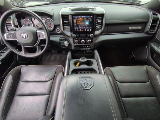 This 2022 Ram 1500 Laramie in Delmonico Red Pearlcoat features: 4D Crew Cab, EcoDiesel 3.0L V6, 8-Speed Automatic, RWD, **LOCAL TRADE**, #1 Seat Foam Cushion, 2nd Row In Floor Storage Bins, 3 Rear Seat Head Restraints, 4 Way Front Headrests, 4-Wheel Disc Brakes, 4G LTE Wi-Fi Hot Spot, 4G WiFi Hotspot Telematics, 8.4" Touchscreen Display, ABS brakes, All Plant-Installed Decals, All R1 High Radios, All Radio Equipped Vehicles, Android Auto, Apple CarPlay, Apple Carplay, Apple CarPlay/Android Auto, Audio memory, Auto High Beam Headlamp Control, Auto-dimming door mirrors, Auto-Dimming Exterior Driver Mirror, Auto-dimming Rear-View mirror, Automatic temperature control, Backup Camera, Black Interior Accents, Blind Spot & Cross Path Detection, Blind Spot Monitoring, Bluetooth w/ Audio Streaming, Body Color Door Handles, Body Color Exterior Mirrors, Body Color Front Bumper, Body Color Premium Power Mirrors, Body Color Rear Bumper w/Step Pads, Brake assist, Bucket Seats, Cold Weather Package, Connected Travel & Traffic Services, Connectivity - US/Canada, Convex Wide-Angle Mirror Insert, Delay-off headlights, Delete LED Lamp - Floor Console Bin, Disassociated Touchscreen Display, Driver Seat Memory, Electronic Stability Control, Exterior Mirrors Courtesy Lamps, Exterior Mirrors w/Heating Element, Exterior Mirrors w/Memory, Exterior Mirrors w/Supplemental Signals, Exterior Parking Camera Rear, Foam Bottle Insert (Door Trim Panel), For Details, Visit DriveUconnect.com, For More Info, Call 800-643-2112, Front & Rear Park Assist, Front Center Armrest w/Storage, Front dual zone A/C, Front fog lights, Front Seat Back Map Pockets, Front wheel independent suspension, Full Length Upgraded Floor Console, Full Speed Auto Collision Warning Plus, Fully automatic headlights, Global Telematics Box Module (TBM), Google Android Auto, GPS Antenna Input, GPS Navigation, Grille Surround 3 Body Color Tex 2 Black, HD Radio, Heated door mirrors, Heated Front Seats, Heated Steering Wheel, Heated steering wheel, Illuminated entry, Integrated Center Stack Radio, Integrated Voice Command w/Bluetooth, Laramie Level II Equipment Group, Leather Seats, Leather steering wheel, Leather Trimmed Bucket Seats, LED Foglights, Low tire pressure warning, Memory seat, Outside temperature display, Overhead console, Panic alarm, Parking Sensors, ParkSense Front/Rear Park Assist w/Stop, Pedal memory, Power 2-Way Driver Lumbar Adjust, Power 2-Way Passenger Lumbar Adjust, Power 8-Way Driver & Passenger Seats, Power door mirrors, Power Mirror Package, Power Package, Power passenger seat, Power Sliding Rear Window, Power-Folding Mirrors, Preferred Equipment Package, Premium Audio Package, Premium Sound Package, Push Button Start, Quick Order Package 28H Laramie, Radio: Uconnect 5 Nav w/8.4" Display, Rain Sensitive Windshield Wipers, Rear 60/40 Folding Seat, Rear Cross Traffic Alert, Rear seat center armrest, Rear step bumper, Remote keyless entry, Remote Start, Remote Tailgate Release, Reverse Brake Assist, Reverse Sensing, Safety Package, Security system, SiriusXM w/360L, Split folding rear seat, Sport Appearance Package, Sport Decal, Sport Performance Hood, Steering wheel mounted audio controls, Telescoping steering wheel, Tilt steering wheel, Tow Package, Traction control, Trailer Package, Trip computer, Turn signal indicator mirrors, Twill Film Appliques, USB Host Flip, Variably intermittent wipers, Ventilated Front Seats, Ventilated front seats, Voltmeter, Wheels: 20" x 9" Premium Painted w/Inserts, Wireless Charging Pad.