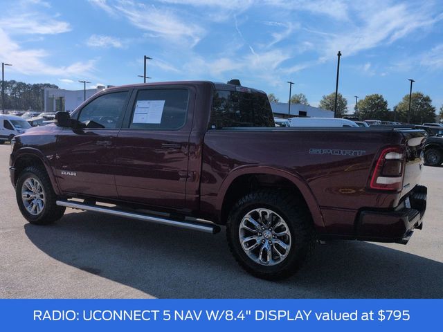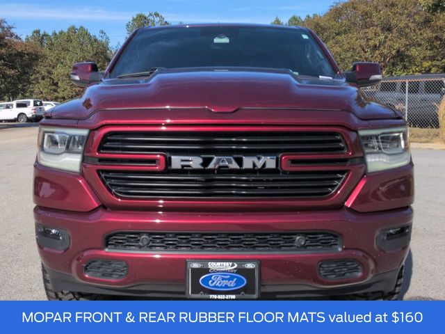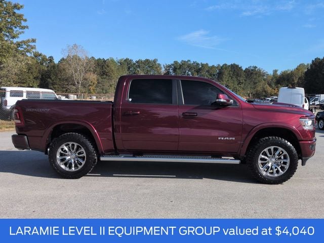 This 2022 Ram 1500 Laramie in Delmonico Red Pearlcoat features: 4D Crew Cab, EcoDiesel 3.0L V6, 8-Speed Automatic, RWD, **LOCAL TRADE**, 2nd Row In Floor Storage Bins, 3 Rear Seat Head Restraints, 4 Way Front Headrests, 4-Wheel Disc Brakes, 4G LTE Wi-Fi Hot Spot, 4G WiFi Hotspot Telematics, 8.4" Touchscreen Display, ABS brakes, Adjustable pedals, All Plant-Installed Decals, All R1 High Radios, All Radio Equipped Vehicles, Android Auto, Apple CarPlay, Apple Carplay, Apple CarPlay/Android Auto, Auto High Beam Headlamp Control, Auto LED Headlights, Auto-Dimming Exterior Driver Mirror, Auto-dimming Rear-View mirror, Automatic temperature control, Backup Camera, Black Interior Accents, Blind Spot & Cross Path Detection, Blind Spot Monitoring, Bluetooth w/ Audio Streaming, Body Color Door Handles, Body Color Exterior Mirrors, Body Color Front Bumper, Body Color Premium Power Mirrors, Body Color Rear Bumper w/Step Pads, Brake assist, Bucket Seats, Compass, Connected Travel & Traffic Services, Connectivity - US/Canada, Convex Wide-Angle Mirror Insert, Delay-off headlights, Delete LED Lamp - Floor Console Bin, Disassociated Touchscreen Display, Driver Seat Memory, Electronic Stability Control, Exterior Mirrors Courtesy Lamps, Exterior Mirrors w/Heating Element, Exterior Mirrors w/Memory, Exterior Mirrors w/Supplemental Signals, Exterior Parking Camera Rear, Foam Bottle Insert (Door Trim Panel), For Details, Visit DriveUconnect.com, For More Info, Call 800-643-2112, Front Center Armrest w/Storage, Front dual zone A/C, Front fog lights, Front Pedestrian Braking, Front Seat Back Map Pockets, Front wheel independent suspension, Full Length Upgraded Floor Console, Full Speed Auto Collision Warning Plus, Fully automatic headlights, Garage door transmitter, Global Telematics Box Module (TBM), Google Android Auto, GPS Antenna Input, GPS Navigation, Grille Surround 3 Body Color Tex 2 Black, harman/kardon 19 Speaker Premium Sound, HD Radio, Heated door mirrors, Heated Front Seats, Heated Steering Wheel, Illuminated entry, Integrated Center Stack Radio, Integrated Voice Command w/Bluetooth, Laramie Level II Equipment Group, Leather Seats, Leather steering wheel, Leather Trim 40/20/40 Bench Seat, Leather Trimmed Bucket Seats, LED Foglights, Low tire pressure warning, Memory seat, Navigation System, Outside temperature display, Overhead console, Panic alarm, Parking Sensors, ParkSense Front/Rear Park Assist w/Stop, Passenger door bin, Pedal memory, Power 2-Way Driver Lumbar Adjust, Power 2-Way Passenger Lumbar Adjust, Power 8-Way Driver & Passenger Seats, Power door mirrors, Power Mirror Package, Power Package, Power-Folding Mirrors, Preferred Equipment Package, Premium Audio Package, Premium Sound Package, Push Button Start, Quick Order Package 28H Laramie, Radio: Uconnect 5 Nav w/8.4" Display, Rain Sensitive Windshield Wipers, Rear 60/40 Folding Seat, Rear Cross Traffic Alert, Rear seat center armrest, Rear step bumper, Remote keyless entry, Remote Start, Remote Tailgate Release, Reverse Brake Assist, Reverse Sensing, Safety Package, Security system, SiriusXM Radio Service, SiriusXM w/360L, Speed control, Split folding rear seat, Sport Appearance Package, Sport Decal, Sport Performance Hood, Steering wheel mounted audio controls, Telescoping steering wheel, Tilt steering wheel, Tow Package, Traction control, Trailer Package, Trip computer, Turn signal indicator mirrors, Twill Film Appliques, USB Host Flip, Ventilated Front Seats, Ventilated front seats, Wheel to Wheel Side Steps, Wheels: 18" x 8" Aluminum Base Painted, Wheels: 20" x 9" Premium Painted w/Inserts, Wireless Charging Pad.
