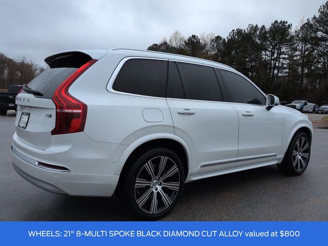 This 2022 Volvo XC90 T6 Inscription in Crystal White Metallic features: 4D Sport Utility, 2.0L I4 Turbocharged DOHC 16V LEV3-ULEV70 316hp, Automatic with Geartronic, AWD, **LOCAL TRADE**, 12.3" HD Color Driver Cluster, 14 Speakers, 3rd Row Seating, 3rd row seats: bucket, 4-Wheel Disc Brakes, ABS brakes, Adaptive Cruise Control, Android Auto, Apple Carplay, Apple CarPlay/Android Auto, Auto Emergency Braking, Auto High-beam Headlights, Auto LED Headlights, Auto-dimming door mirrors, Auto-dimming Rear-View mirror, Automatic temperature control, Backup Camera, Blind Spot Monitoring, Bluetooth w/ Audio Streaming, Brake assist, Delay-off headlights, Driver Attention Warning, Electronic Stability Control, Emergency communication system: Volvo Cars App w/4 Year Subscription, Four wheel independent suspension, Foward Collison Alert, Front & Rear Park Assist, Front Center Armrest w/Storage, Front dual zone A/C, Front fog lights, Front Pedestrian Braking, Fully automatic headlights, Garage door transmitter: HomeLink, Genuine wood dashboard insert, Genuine wood door panel insert, harman/kardon® Speakers, Heated & Ventilated Front Bucket Seats, Heated door mirrors, Illuminated entry, Lane Departure Warning, Lane Keeping System, Leather Seats, Leather Shift Knob, Low tire pressure warning, Memory Package, Memory seat, Multi Zone Climate Control, Multimedia Package, Navigation System, Navigation system: Sensus Navigation, Outside temperature display, Panic alarm, Panoramic Sunroof/Moonroof, Parking Sensors, Perforated Nappa Leather Upholstery, Power door mirrors, Power driver seat, Power Mirror Package, Power Package, Power passenger seat, Power steering, Power windows, Premium Audio Package, Premium audio system: Sensus Connect, Premium Sound Package, Radio data system, Radio: harman/kardon Premium Audio System, Rain sensing wipers, Rear air conditioning, Rear Climate Package, Rear dual zone A/C, Rear fog lights, Rear seat center armrest, Rear window wiper, Remote keyless entry, Reverse Brake Assist, Reverse Sensing, Security system, Speed control, Speed-sensing steering, Split folding rear seat, Spoiler, Steering wheel mounted audio controls, Telescoping steering wheel, Tilt steering wheel, Traction control, Trip computer, Turn signal indicator mirrors, Ventilated front seats, Wheels: 20" 10-Spoke Black Diamond Cut Alloy, WiFi Hotspot Capable, Wireless Charging Pad.