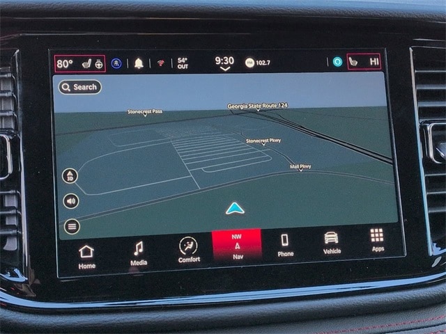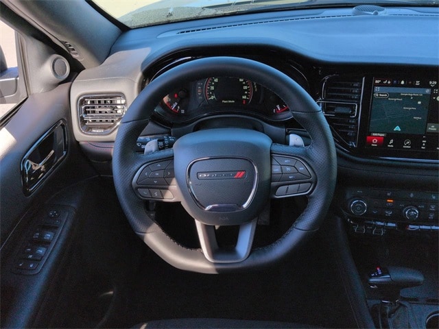 Blacktop Package (Black Roof Rails, Gloss Black Badges, Integrated Roof Rail Crossbars, and Satin Black Dodge Tail Lamp Badge), Quick Order Package 22S GT, 3.09 Rear Axle Ratio, 3rd row seats: split-bench, 4-Wheel Disc Brakes, 9 Speakers, ABS brakes, Air Conditioning, Alloy wheels, AM/FM radio: SiriusXM w/360L, Apple CarPlay/Android Auto, Auto-dimming Rear-View mirror, Auto-leveling suspension, Automatic temperature control, Brake assist, Bumpers: body-color, Cloth Bucket Seats with Shift Insert, Compass, Delay-off headlights, Driver door bin, Driver vanity mirror, Dual front impact airbags, Dual front side impact airbags, Electronic Stability Control, Emergency communication system: Dodge Connect, Exterior Mirrors with Heating Element, Four wheel independent suspension, Front anti-roll bar, Front Bucket Seats, Front Center Armrest w/Storage, Front dual zone A/C, Front reading lights, Fully automatic headlights, Garage door transmitter, Gloss Black Exterior Mirrors, Heated door mirrors, Heated front seats, Heated steering wheel, Illuminated entry, Knee airbag, Leather steering wheel, Low tire pressure warning, Navigation System, Occupant sensing airbag, Outside temperature display, Overhead airbag, Overhead console, Panic alarm, ParkView Rear Back-Up Camera, Passenger door bin, Passenger vanity mirror, Power door mirrors, Power driver seat, Power Liftgate, Power steering, Power windows, Radio data system, Radio: Uconnect 5 Nav with 10.1" Display, Rain sensing wipers, Rear air conditioning, Rear anti-roll bar, Rear Load Leveling Suspension, Rear reading lights, Rear seat center armrest, Rear window defroster, Rear window wiper, Red Accent Stitching, Remote keyless entry, Security system, Speed control, Speed-sensing steering, Speed-Sensitive Wipers, Split folding rear seat, Spoiler, Sport steering wheel, Steering wheel mounted audio controls, Tachometer, Telescoping steering wheel, Tilt steering wheel, Traction control, Trip computer, Variably intermittent wipers, Voltmeter, Wheels: 20" x 8" Black Noise Split 5-Spoke, and Wheels: 20" x 8" Satin Carbon Split 5-Spoke.