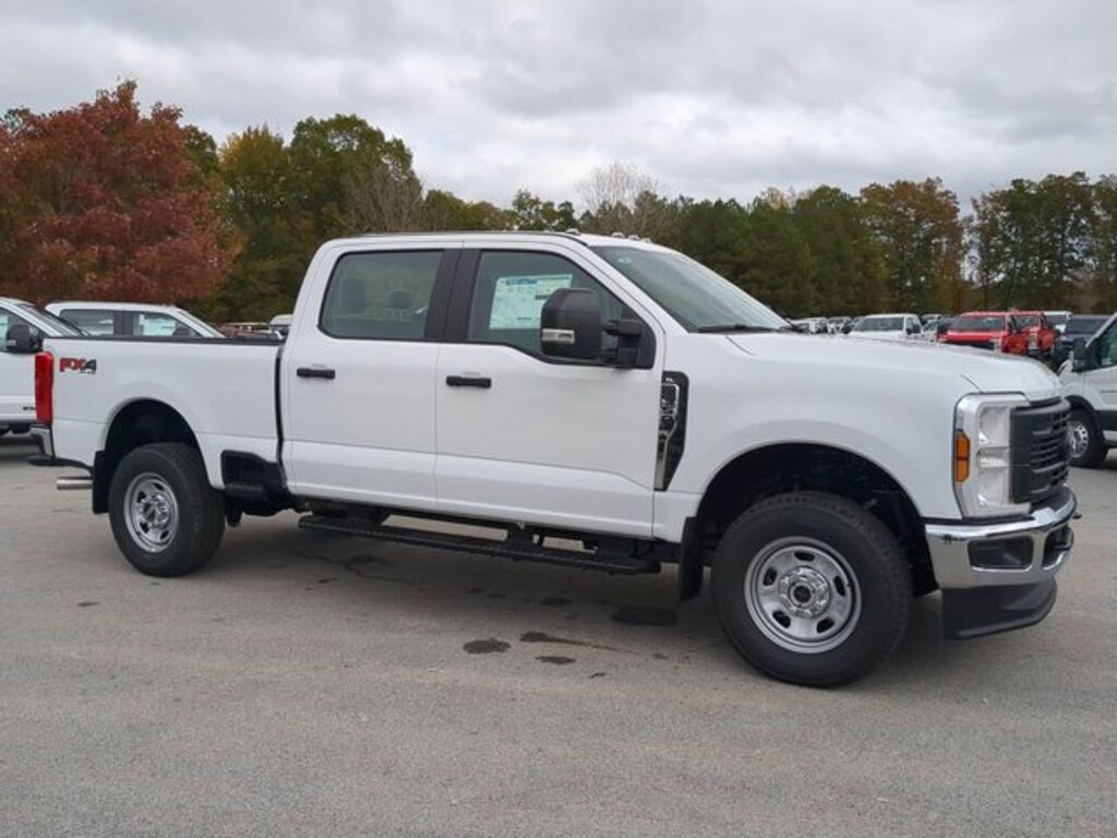 2024 Oxford White 2024 Ford F-350SD XL XL 4D Crew Cab 4WD 6.8L V8 5G WiFi Hotspot Telematics, 8" Color Touchscreen, Backup Camera, SPRAY IN LINER, 4WD. FX4 Off-Road Package, Order Code 610A, XL Chrome Package (Bright Chrome Hub Covers & Center Ornaments, Chrome Rear Step Bumper, and Halogen Fog Lamps), XL Driver Assist Package, 4WD, 18" Argent Painted Steel Wheels, 4-Wheel Disc Brakes, 6 Speakers, ABS brakes, Air Conditioning, AM/FM radio, AM/FM Stereo w/MP3 Player, Brake assist, Compass, Delay-off headlights, Dual 68 AH/65 AGM Batteries, Dual front impact airbags, Dual front side impact airbags, Electronic Stability Control, Electronic-Locking w/3.73 Axle Ratio, Emergency communication system: SYNC 4 911 Assist, Exterior Parking Camera Rear, Front & Rear Wheel Well Liners (Pre-Installed), Front anti-roll bar, Front Center Armrest w/Storage, Front reading lights, Front Splash Guards/Mud Flaps (Pre-Installed), Fully automatic headlights, HD Vinyl 40/20/40 Split Bench Seat, Heated door mirrors, Illuminated entry, LED Box Lighting, LED Roof Clearance Lights, Low tire pressure warning, Outside temperature display, Overhead airbag, Overhead console, Panic alarm, Passenger vanity mirror, Platform Running Boards, Power door mirrors, Power steering, Power windows, Pro Power Onboard - 2kW, Rear reading lights, Rear Splash Guards/Mud Flaps (Pre-Installed), Rear step bumper, Remote keyless entry, Speed control, Split folding rear seat, Steering wheel mounted audio controls, SYNC 4, Tachometer, Tailgate Step & Handle, Telescoping steering wheel, Tilt steering wheel, Traction control, Trip computer, Turn signal indicator mirrors, and Variably intermittent wipers.