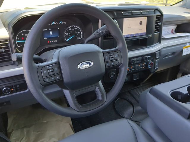2024 Oxford White 2024 Ford F-350SD XL DRW XL 2D Standard Cab RWD Power Stroke 6.7L V8 DI 32V OHV Turbodiesel GVWR: 14,000 lb Payload Package, Order Code 640A, XL Chrome Package (Bright Grille, Chrome Front Bumper, Halogen Fog Lamps, and Remote Start), 17" Argent Painted Steel Wheels, 4 Speakers, 4-Ton Hydraulic Jack, 4-Wheel Disc Brakes, ABS brakes, Air Conditioning, AM/FM radio, AM/FM Stereo w/MP3 Player, Brake assist, Compass, Delay-off headlights, Dual 68 AH/65 AGM Battery, Dual front impact airbags, Dual front side impact airbags, Dual rear wheels, Emergency communication system: SYNC 4 911 Assist, Engine Block Heater, Exterior Backup Alarm (Pre-Installed), Front anti-roll bar, Front Center Armrest w/Storage, Front License Plate Bracket, Front reading lights, Front wheel independent suspension, Fully automatic headlights, HD Vinyl 40/20/40 Split Bench Seat, Heated door mirrors, Illuminated entry, Low tire pressure warning, Outside temperature display, Overhead airbag, Overhead console, Panic alarm, Passenger cancellable airbag, Passenger vanity mirror, Platform Running Boards, Power door mirrors, Power steering, Power windows, Rear anti-roll bar, Rear View Camera & Prep Kit, Remote keyless entry, Speed control, Steering wheel mounted audio controls, SYNC 4 Communications & Entertainment System, Tachometer, Telescoping steering wheel, Tilt steering wheel, Traction control, Trip computer, Turn signal indicator mirrors, and Variably intermittent wipers.