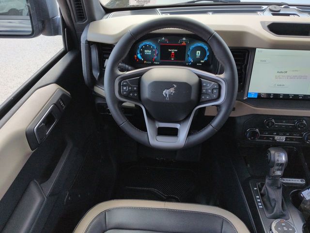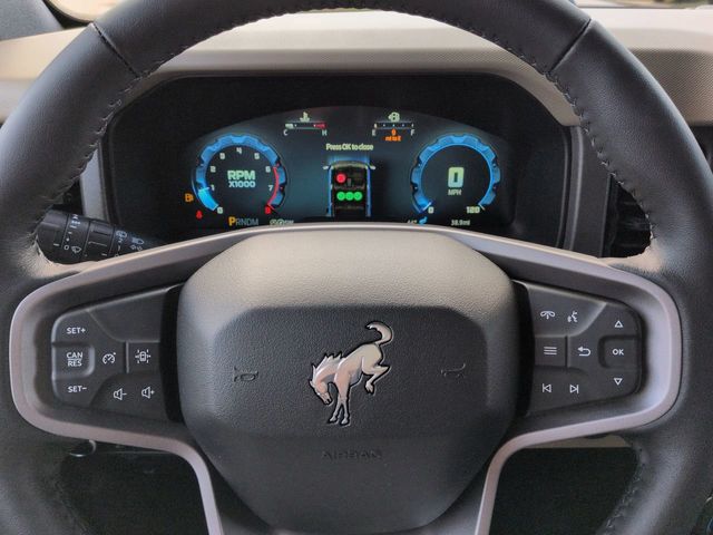 2025 Shadow Black 2025 Ford Bronco Big Bend cc Big Bend 4D Sport Utility 4WD 2.3L EcoBoost I-4 4D Sport Utility, 2.3L EcoBoost I-4, 10-Speed Automatic, 4WD, 12" LCD Productivity Touchscreen, 2-Door Intelligent Access w/Lock/Unlock, Ambient Footwell Lighting, Auto Emergency Braking, Auto LED Headlights, Backup Camera, Black Appearance Package, Black Molded-In-Color Door Handles, Black Molded-In-Color Fender Flares, Black Molded-In-Color Sideview Mirror Caps, Black-Painted Molded-In-Color Grille, Connected Navigation, Dr & Pass Illuminated Sliding Visor Vanity Mirrors, Dual Smart Charging USB Ports, Dual-Zone Electronic Automatic Temperature Control, Equipment Group 222A Mid Package, Front Row Heated Seats, Hill Start Assist, Off Road Package, Power Outlet - Back Side of Center Floor Console, Pre Collision Assist w/ AEB, Push Button Start, Rear Parking Sensors, Remote Start, Trailer Tow Package (DIO). Black Appearance Package (Black Molded-In-Color Door Handles, Black Molded-In-Color Fender Flares, Black Molded-In-Color Sideview Mirror Caps, and Black-Painted Molded-In-Color Grille), Equipment Group 222A Mid Package (2-Door Intelligent Access w/Lock/Unlock, Ambient Footwell Lighting, Connected Navigation, Dr & Pass Illuminated Sliding Visor Vanity Mirrors, Dual Smart Charging USB Ports, Dual-Zone Electronic Automatic Temperature Control, Front Row Heated Seats, Power Outlet - Back Side of Center Floor Console, and Rear Parking Sensors), Trailer Tow Package (DIO), 4D Sport Utility, 2.3L EcoBoost I-4, 10-Speed Automatic, 4WD, 12" LCD Productivity Touchscreen, Auto Emergency Braking, Auto LED Headlights, Backup Camera, Hill Start Assist, Off Road Package, Pre Collision Assist w/ AEB, Push Button Start, Remote Start, 3.73 Axle Ratio, 4-Wheel Disc Brakes, 7 Speakers, ABS brakes, Air Conditioning, Alloy wheels, AM/FM radio: SiriusXM with 360L, AM/FM Stereo, Auto High-beam Headlights, Brake assist, Cloth Bucket Seats, Compass, Delay-off headlights, Driver door bin, Driver vanity mirror, Dual front impact airbags, Dual front side impact airbags, Electronic Stability Control, Emergency communication system: 911 Assist, Exterior Parking Camera Rear, Front anti-roll bar, Front Bucket Seats, Front Center Armrest, Front reading lights, Front wheel independent suspension, Fully automatic headlights, Hard Top Sound Deadening Headliner, Heated door mirrors, Illuminated entry, Integrated roll-over protection, Leather Shift Knob, Low tire pressure warning, Occupant sensing airbag, Outside temperature display, Overhead airbag, Overhead console, Panic alarm, Passenger door bin, Passenger vanity mirror, Power door mirrors, Power steering, Power windows, Radio data system, Rear-Window Defroster & Washer, Remote keyless entry, Security system, Shadow Black Painted Hard Top, SiriusXM w/360L, Speed control, Split folding rear seat, Steering wheel mounted audio controls, SYNC 4, Tachometer, Telescoping steering wheel, Tilt steering wheel, Traction control, Trip computer, Variably intermittent wipers, and Wheels: 17" Carbonized Gray-Painted Aluminum. $1,000 - Exp. 12/31/2026 Retail Trade Assistance. Must trade in a vehicle to qualify $1,000 - Exp. 12/31/2026 Dealer Finance Assistance. Must finance through dealer lender to qualify.