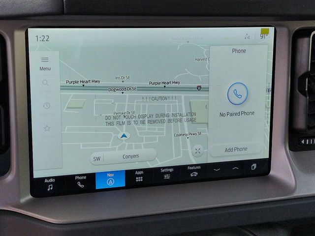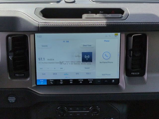 2025 Eruption Green Metallic 2025 Ford Bronco Outer Banks Outer Banks 4D Sport Utility 4WD 2.7L EcoBoost V6 4D Sport Utility, 2.7L EcoBoost V6, 10-Speed Automatic, 4WD, 12" LCD Productivity Touchscreen, 360-Degree Camera, 360-Degree Camera, Adaptive Cruise Control, Adaptive Cruise Control, Equipment Group 314A Lux Package, Evasive Steering Assist, Front Parking Sensors, Hard Top Sound Deadening Headliner, Hill Start Assist, Information on Demand Panel, Leather Seats, Navigation system: Connected Navigation, Painted Hard Top, Push Button Start, Radio: B&O Sound System by Bang & Olufsen, Rear-Window Defroster & Washer, Sideview Mirrors, Trailer Tow Package (DIO), Universal Garage Door Opener. Equipment Group 314A Lux Package (360-Degree Camera, Adaptive Cruise Control, Evasive Steering Assist, Front Parking Sensors, Information on Demand Panel, Radio: B&O Sound System by Bang & Olufsen, Sideview Mirrors, and Universal Garage Door Opener), Trailer Tow Package (DIO), 4D Sport Utility, 2.7L EcoBoost V6, 10-Speed Automatic, 4WD, 12" LCD Productivity Touchscreen, 360-Degree Camera, Adaptive Cruise Control, Hard Top Sound Deadening Headliner, Hill Start Assist, Leather Seats, Navigation system: Connected Navigation, Painted Hard Top, Push Button Start, Rear-Window Defroster & Washer, 18" Bright Machined Aluminum Wheels, 3.73 Axle Ratio, 4-Wheel Disc Brakes, 7 Speakers, ABS brakes, Air Conditioning, Alloy wheels, AM/FM radio: SiriusXM with 360L, AM/FM Stereo, Auto High-beam Headlights, Auto-dimming Rear-View mirror, Automatic temperature control, Brake assist, Compass, Connected Navigation, Delay-off headlights, Driver door bin, Driver vanity mirror, Dual front impact airbags, Dual front side impact airbags, Electronic Stability Control, Emergency communication system: 911 Assist, Exterior Parking Camera Rear, Front anti-roll bar, Front Bucket Seats, Front Center Armrest, Front dual zone A/C, Front fog lights, Front reading lights, Front wheel independent suspension, Fully automatic headlights, Heated door mirrors, Heated front seats, Heated Leather-Trimmed/Vinyl Bucket Seats, Heated steering wheel, Illuminated entry, Integrated roll-over protection, Leather Shift Knob, Low tire pressure warning, Occupant sensing airbag, Outside temperature display, Overhead airbag, Overhead console, Panic alarm, Passenger door bin, Passenger vanity mirror, Power door mirrors, Power driver seat, Power passenger seat, Power steering, Power windows, Radio data system, Rear seat center armrest, Remote keyless entry, Security system, SiriusXM w/360L, Speed control, Split folding rear seat, Steering wheel mounted audio controls, SYNC 4, Tachometer, Telescoping steering wheel, Tilt steering wheel, Traction control, Trip computer, Variably intermittent wipers, and Voltmeter. $1,000 - Exp. 12/31/2026 Retail Trade Assistance. Must trade in a vehicle to qualify $1,000 - Exp. 12/31/2026 Dealer Finance Assistance. Must finance through dealer lender to qualify.