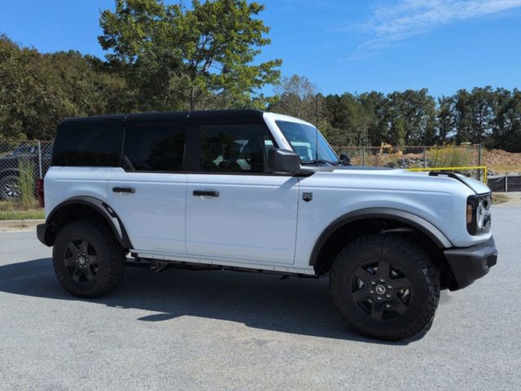 2025 Oxford White 2025 Ford Bronco Big Bend Big Bend 4D Sport Utility 4WD 2.3L EcoBoost I-4 4D Sport Utility, 2.3L EcoBoost I-4, 10-Speed Automatic, 4WD, 12" LCD Productivity Touchscreen, Auto Emergency Braking, Auto LED Headlights, Backup Camera, Black Appearance Package, Black Molded-In-Color Door Handles, Black Molded-In-Color Fender Flares, Black Molded-In-Color Sideview Mirror Caps, Black-Painted Molded-In-Color Grille, Bluetooth w/ Audio Streaming, Equipment Group 222A Mid Package, Hill Start Assist, Pre Collision Assist w/ AEB, Push Button Start, Remote Start, Trailer Tow Package (DIO). Black Appearance Package (Black Molded-In-Color Door Handles, Black Molded-In-Color Fender Flares, Black Molded-In-Color Sideview Mirror Caps, and Black-Painted Molded-In-Color Grille), Equipment Group 222A Mid Package (Connected Navigation), Trailer Tow Package (DIO), 4D Sport Utility, 2.3L EcoBoost I-4, 10-Speed Automatic, 4WD, 12" LCD Productivity Touchscreen, Auto Emergency Braking, Auto LED Headlights, Backup Camera, Bluetooth w/ Audio Streaming, Hill Start Assist, Pre Collision Assist w/ AEB, Push Button Start, Remote Start, 4-Wheel Disc Brakes, 4.46 Axle Ratio, 7 Speakers, ABS brakes, Air Conditioning, Alloy wheels, AM/FM radio: SiriusXM with 360L, AM/FM Stereo, Auto High-beam Headlights, Brake assist, Cloth Bucket Seats, Compass, Delay-off headlights, Driver door bin, Driver vanity mirror, Dual front impact airbags, Dual front side impact airbags, Electronic Stability Control, Emergency communication system: 911 Assist, Exterior Parking Camera Rear, Front anti-roll bar, Front Bucket Seats, Front Center Armrest, Front reading lights, Front wheel independent suspension, Fully automatic headlights, Hard Top Sound Deadening Headliner, Heated door mirrors, Illuminated entry, Integrated roll-over protection, Leather Shift Knob, Low tire pressure warning, Occupant sensing airbag, Outside temperature display, Overhead airbag, Overhead console, Panic alarm, Passenger door bin, Passenger vanity mirror, Power door mirrors, Power steering, Power windows, Radio data system, Rear-Window Defroster & Washer, Remote keyless entry, Security system, Shadow Black Painted Hard Top, SiriusXM w/360L, Speed control, Split folding rear seat, Steering wheel mounted audio controls, SYNC 4, Tachometer, Telescoping steering wheel, Tilt steering wheel, Traction control, Trip computer, Variably intermittent wipers, and Wheels: 17" Carbonized Gray-Painted Aluminum.