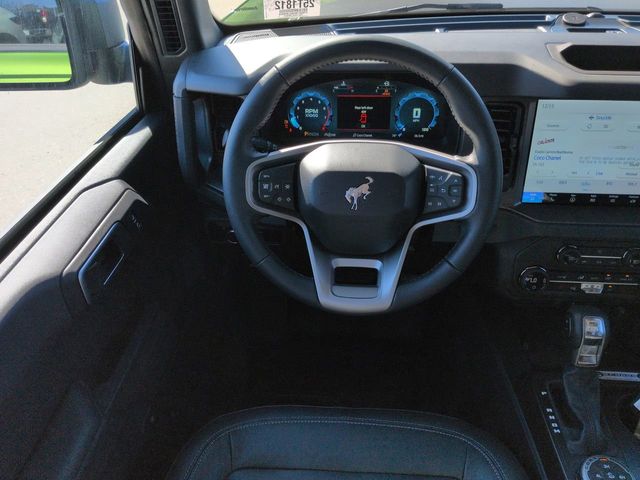 2025 Eruption Green Metallic 2025 Ford Bronco Big Bend Big Bend 4D Sport Utility 4WD 2.3L EcoBoost I-4 4D Sport Utility, 2.3L EcoBoost I-4, 10-Speed Automatic, 4WD, 12" LCD Productivity Touchscreen, 2-Door Intelligent Access w/Lock/Unlock, Ambient Footwell Lighting, Auto Emergency Braking, Auto LED Headlights, Backup Camera, Black Appearance Package, Black Molded-In-Color Door Handles, Black Molded-In-Color Fender Flares, Black Molded-In-Color Sideview Mirror Caps, Black-Painted Molded-In-Color Grille, Bluetooth w/ Audio Streaming, Connected Navigation, Dr & Pass Illuminated Sliding Visor Vanity Mirrors, Dual Smart Charging USB Ports, Dual-Zone Electronic Automatic Temperature Control, Equipment Group 222A Mid Package, Front Row Heated Seats, Hard Top Sound Deadening Headliner, Power Mirror Package, Power Outlet - Back Side of Center Floor Console, Power Package, Push Button Start, Rear Parking Sensors, Rear-Window Defroster & Washer, Remote Start, Shadow Black Painted Hard Top, Trailer Tow Package (DIO). Black Appearance Package (Black Molded-In-Color Door Handles, Black Molded-In-Color Fender Flares, Black Molded-In-Color Sideview Mirror Caps, and Black-Painted Molded-In-Color Grille), Equipment Group 222A Mid Package (2-Door Intelligent Access w/Lock/Unlock, Ambient Footwell Lighting, Connected Navigation, Dr & Pass Illuminated Sliding Visor Vanity Mirrors, Dual Smart Charging USB Ports, Dual-Zone Electronic Automatic Temperature Control, Front Row Heated Seats, Power Outlet - Back Side of Center Floor Console, and Rear Parking Sensors), Trailer Tow Package (DIO), 4D Sport Utility, 2.3L EcoBoost I-4, 10-Speed Automatic, 4WD, 12" LCD Productivity Touchscreen, Auto Emergency Braking, Auto LED Headlights, Backup Camera, Bluetooth w/ Audio Streaming, Hard Top Sound Deadening Headliner, Power Mirror Package, Power Package, Push Button Start, Rear-Window Defroster & Washer, Remote Start, Shadow Black Painted Hard Top, 4-Wheel Disc Brakes, 4.46 Axle Ratio, 7 Speakers, ABS brakes, Air Conditioning, Alloy wheels, AM/FM radio: SiriusXM with 360L, AM/FM Stereo, Auto High-beam Headlights, Brake assist, Cloth Bucket Seats, Compass, Delay-off headlights, Driver door bin, Driver vanity mirror, Dual front impact airbags, Dual front side impact airbags, Electronic Stability Control, Emergency communication system: 911 Assist, Exterior Parking Camera Rear, Front anti-roll bar, Front Bucket Seats, Front Center Armrest, Front reading lights, Front wheel independent suspension, Fully automatic headlights, Heated door mirrors, Illuminated entry, Integrated roll-over protection, Leather Shift Knob, Low tire pressure warning, Occupant sensing airbag, Outside temperature display, Overhead airbag, Overhead console, Panic alarm, Passenger door bin, Passenger vanity mirror, Power door mirrors, Power steering, Power windows, Radio data system, Remote keyless entry, Security system, SiriusXM w/360L, Speed control, Split folding rear seat, Steering wheel mounted audio controls, SYNC 4, Tachometer, Telescoping steering wheel, Tilt steering wheel, Traction control, Trip computer, Variably intermittent wipers, and Wheels: 17" Carbonized Gray-Painted Aluminum. $1,000 - Exp. 12/31/2026 Retail Trade Assistance. Must trade in a vehicle to qualify $1,000 - Exp. 12/31/2026 Dealer Finance Assistance. Must finance through dealer lender to qualify.