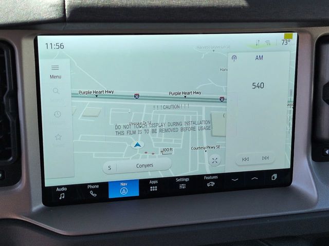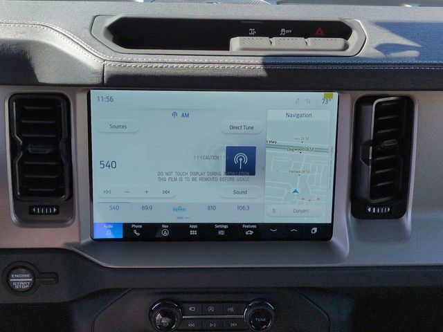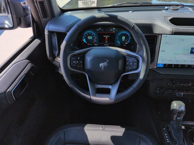 2025 Shadow Black 2025 Ford Bronco Outer Banks Outer Banks 4D Sport Utility 4WD 2.7L EcoBoost V6 4D Sport Utility, 2.7L EcoBoost V6, 4WD, 12" LCD Productivity Touchscreen, 360-Degree Camera, 360-Degree Camera, Adaptive Cruise Control, Adaptive Cruise Control, Auto LED Headlights, Backup Camera, Carbonized Gray Molded-In-Color Hard Top, Equipment Group 314A Lux Package, Evasive Steering Assist, Front Parking Sensors, Hard Top Sound Deadening Headliner, Hill Start Assist, Information on Demand Panel, Navigation system: Connected Navigation, Power Mirror Package, Power Package, Push Button Start, Radio: B&O Sound System by Bang & Olufsen, Rear-Window Defroster & Washer, Sideview Mirrors, Trailer Tow Package (DIO), Universal Garage Door Opener. Equipment Group 314A Lux Package (360-Degree Camera, Adaptive Cruise Control, Evasive Steering Assist, Front Parking Sensors, Information on Demand Panel, Radio: B&O Sound System by Bang & Olufsen, Sideview Mirrors, and Universal Garage Door Opener), Trailer Tow Package (DIO), 4D Sport Utility, 2.7L EcoBoost V6, 4WD, 12" LCD Productivity Touchscreen, 360-Degree Camera, Adaptive Cruise Control, Auto LED Headlights, Backup Camera, Carbonized Gray Molded-In-Color Hard Top, Hard Top Sound Deadening Headliner, Hill Start Assist, Navigation system: Connected Navigation, Power Mirror Package, Power Package, Push Button Start, Rear-Window Defroster & Washer, 18" Bright Machined Aluminum Wheels, 3.73 Axle Ratio, 4-Wheel Disc Brakes, 7 Speakers, ABS brakes, Air Conditioning, Alloy wheels, AM/FM radio: SiriusXM with 360L, AM/FM Stereo, Auto High-beam Headlights, Auto-dimming Rear-View mirror, Automatic temperature control, Brake assist, Compass, Connected Navigation, Delay-off headlights, Driver door bin, Driver vanity mirror, Dual front impact airbags, Dual front side impact airbags, Electronic Stability Control, Emergency communication system: 911 Assist, Exterior Parking Camera Rear, Front anti-roll bar, Front Bucket Seats, Front Center Armrest, Front dual zone A/C, Front fog lights, Front reading lights, Front wheel independent suspension, Fully automatic headlights, Heated door mirrors, Heated front seats, Heated Leather-Trimmed/Vinyl Bucket Seats, Heated steering wheel, Illuminated entry, Integrated roll-over protection, Leather Shift Knob, Low tire pressure warning, Occupant sensing airbag, Outside temperature display, Overhead airbag, Overhead console, Panic alarm, Passenger door bin, Passenger vanity mirror, Power door mirrors, Power driver seat, Power passenger seat, Power steering, Power windows, Radio data system, Rear seat center armrest, Remote keyless entry, Security system, SiriusXM w/360L, Speed control, Split folding rear seat, Steering wheel mounted audio controls, SYNC 4, Tachometer, Telescoping steering wheel, Tilt steering wheel, Traction control, Trip computer, Variably intermittent wipers, and Voltmeter. $1,000 - Exp. 12/31/2026 Retail Trade Assistance. Must trade in a vehicle to qualify $1,000 - Exp. 12/31/2026 Dealer Finance Assistance. Must finance through dealer lender to qualify.