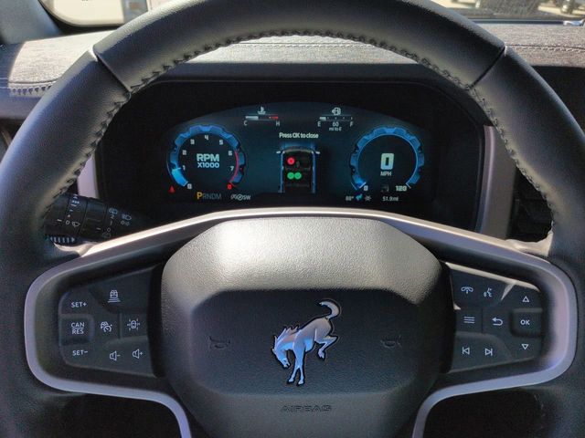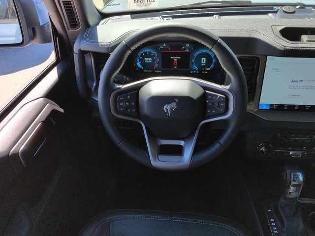 2025 Oxford White 2025 Ford Bronco Outer Banks Outer Banks 4D Sport Utility 4WD 2.3L EcoBoost I-4 4D Sport Utility, 2.3L EcoBoost I-4, 10-Speed Automatic, 4WD, 12" LCD Productivity Touchscreen, 360-Degree Camera, 360-Degree Camera, 4.7 Final Drive Ratio, 5G WiFi Hotspot Telematics, Adaptive Cruise Control, Adaptive Cruise Control, Auto LED Headlights, Backup Camera, Carbonized Gray Molded-In-Color Hard Top, Equipment Group 314A Lux Package, Evasive Steering Assist, Front Parking Sensors, Hard Top Sound Deadening Headliner, High Clearance Fender Flares, High Clearance Suspension, Hill Start Assist, Information on Demand Panel, Leather Seats, Navigation system: Connected Navigation, Off Road Package, Position-Sensitive Bilstein Shock Absorbers, Push Button Start, Radio: B&O Sound System by Bang & Olufsen, Rear-Window Defroster & Washer, Sasquatch Package, Sideview Mirrors, Skid Plate Package, Trailer Tow Package (DIO), Universal Garage Door Opener, Wheels: 17" Carbonized Gray Painted Aluminum. Equipment Group 314A Lux Package (360-Degree Camera, Adaptive Cruise Control, Evasive Steering Assist, Front Parking Sensors, Information on Demand Panel, Radio: B&O Sound System by Bang & Olufsen, Sideview Mirrors, and Universal Garage Door Opener), Sasquatch Package (4.7 Final Drive Ratio, High Clearance Fender Flares, High Clearance Suspension, Position-Sensitive Bilstein Shock Absorbers, and Wheels: 17" Carbonized Gray Painted Aluminum), Trailer Tow Package (DIO), 4D Sport Utility, 2.3L EcoBoost I-4, 10-Speed Automatic, 4WD, 12" LCD Productivity Touchscreen, 360-Degree Camera, 5G WiFi Hotspot Telematics, Adaptive Cruise Control, Auto LED Headlights, Backup Camera, Carbonized Gray Molded-In-Color Hard Top, Hard Top Sound Deadening Headliner, Hill Start Assist, Leather Seats, Navigation system: Connected Navigation, Off Road Package, Push Button Start, Rear-Window Defroster & Washer, Skid Plate Package, 18" Bright Machined Aluminum Wheels, 4-Wheel Disc Brakes, 7 Speakers, ABS brakes, Air Conditioning, Alloy wheels, AM/FM radio: SiriusXM with 360L, AM/FM Stereo, Auto High-beam Headlights, Auto-dimming Rear-View mirror, Automatic temperature control, Brake assist, Compass, Connected Navigation, Delay-off headlights, Driver door bin, Driver vanity mirror, Dual front impact airbags, Dual front side impact airbags, Electronic Stability Control, Emergency communication system: 911 Assist, Exterior Parking Camera Rear, Front anti-roll bar, Front Bucket Seats, Front Center Armrest, Front dual zone A/C, Front fog lights, Front License Plate Bracket, Front reading lights, Front wheel independent suspension, Fully automatic headlights, Heated door mirrors, Heated front seats, Heated Leather-Trimmed/Vinyl Bucket Seats, Heated steering wheel, Illuminated entry, Integrated roll-over protection, Leather Shift Knob, Low tire pressure warning, Occupant sensing airbag, Outside temperature display, Overhead airbag, Overhead console, Panic alarm, Passenger door bin, Passenger vanity mirror, Power door mirrors, Power driver seat, Power passenger seat, Power steering, Power windows, Radio data system, Rear seat center armrest, Remote keyless entry, Security system, SiriusXM w/360L, Speed control, Split folding rear seat, Steering wheel mounted audio controls, SYNC 4, Tachometer, Telescoping steering wheel, Tilt steering wheel, Traction control, Trip computer, Variably intermittent wipers, and Voltmeter. $1,000 - Exp. 12/31/2026 Retail Trade Assistance. Must trade in a vehicle to qualify $1,000 - Exp. 12/31/2026 Dealer Finance Assistance. Must finance through dealer lender to qualify.