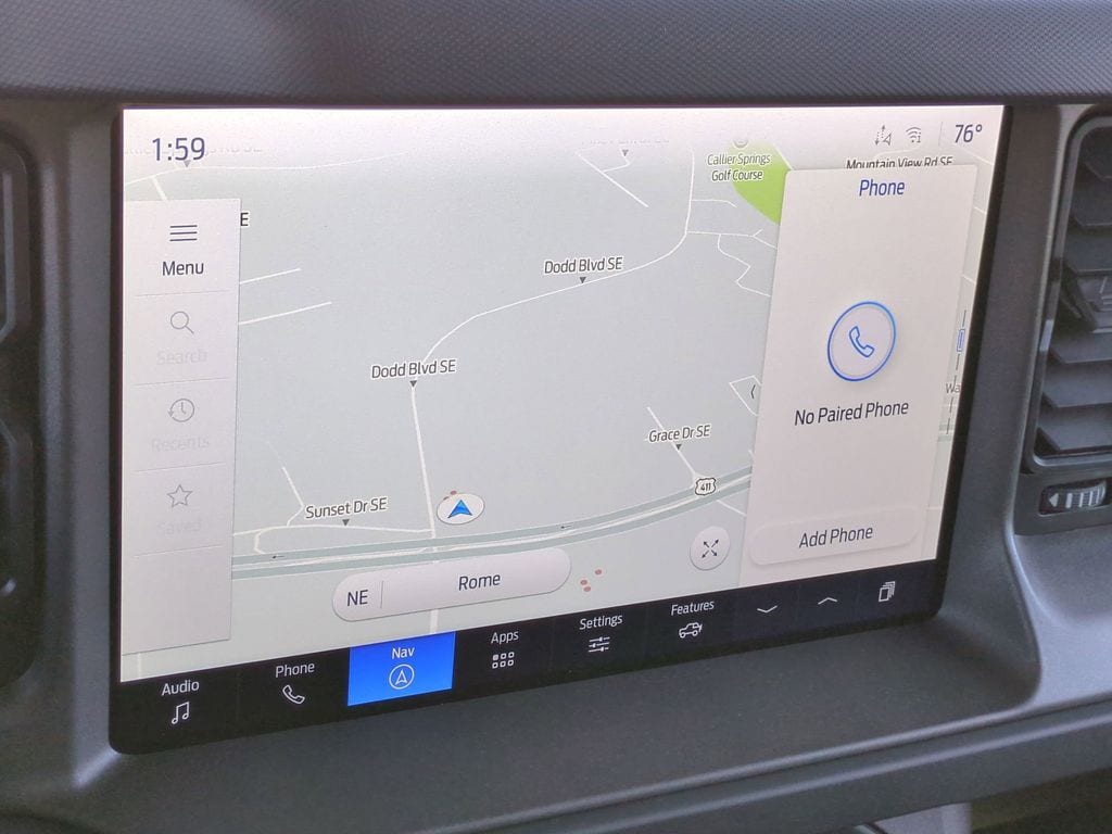 2025 Carbonized Gray Metallic 2025 Ford Bronco Big Bend 4WD 2.3L EcoBoost I-4 12" LCD Productivity Touchscreen, Auto Emergency Braking, Auto LED Headlights, Backup Camera, Hill Start Assist, Pre Collision Assist w/ AEB, Bronco Big Bend, 4D Sport Utility, 2.3L EcoBoost I-4, 4WD, 2-Door Intelligent Access w/Lock/Unlock, 4.46 Final Drive Ratio w/Rear Locking Differential, Ambient Footwell Lighting, Auxiliary Switches, Black Diamond Package, Carbonized Gray Molded-In-Color Hard Top, Connected Navigation, Dr & Pass Illuminated Sliding Visor Vanity Mirrors, Dual Smart Charging USB Ports, Dual-Zone Electronic Automatic Temperature Control, Equipment Group 222A Mid Package, Front Row Heated Seats, Hard Top Sound Deadening Headliner, LED Fog Lamps, Powder Coated Steel Front & Rear Bumpers, Power Outlet - Back Side of Center Floor Console, Rear Parking Sensors, Rear-Window Defroster & Washer, Rock Rails, Trailer Tow Package (DIO), Washout Capable Rubberized Flooring, Wheels: 17" Black High Gloss Painted Aluminum. Black Diamond Package (4.46 Final Drive Ratio w/Rear Locking Differential, Auxiliary Switches, LED Fog Lamps, Powder Coated Steel Front & Rear Bumpers, Rock Rails, Washout Capable Rubberized Flooring, and Wheels: 17" Black High Gloss Painted Aluminum), Equipment Group 222A Mid Package (2-Door Intelligent Access w/Lock/Unlock, Ambient Footwell Lighting, Connected Navigation, Dr & Pass Illuminated Sliding Visor Vanity Mirrors, Dual Smart Charging USB Ports, Dual-Zone Electronic Automatic Temperature Control, Front Row Heated Seats, Power Outlet - Back Side of Center Floor Console, and Rear Parking Sensors), Trailer Tow Package (DIO), Bronco Big Bend, 4D Sport Utility, 2.3L EcoBoost I-4, 4WD, Carbonized Gray Molded-In-Color Hard Top, Hard Top Sound Deadening Headliner, Rear-Window Defroster & Washer, 4-Wheel Disc Brakes, 7 Speakers, ABS brakes, Air Conditioning, Alloy wheels, AM/FM radio: SiriusXM with 360L, AM/FM Stereo, Auto High-beam Headlights, Brake assist, Cloth Bucket Seats, Compass, Delay-off headlights, Driver door bin, Driver vanity mirror, Dual front impact airbags, Dual front side impact airbags, Electronic Stability Control, Emergency communication system: 911 Assist, Exterior Parking Camera Rear, Front anti-roll bar, Front Bucket Seats, Front Center Armrest, Front reading lights, Front wheel independent suspension, Fully automatic headlights, Heated door mirrors, Illuminated entry, Integrated roll-over protection, Leather Shift Knob, Low tire pressure warning, Occupant sensing airbag, Outside temperature display, Overhead airbag, Overhead console, Panic alarm, Passenger door bin, Passenger vanity mirror, Power door mirrors, Power steering, Power windows, Radio data system, Remote keyless entry, Security system, SiriusXM w/360L, Speed control, Split folding rear seat, Steering wheel mounted audio controls, SYNC 4, Tachometer, Telescoping steering wheel, Tilt steering wheel, Traction control, Trip computer, Variably intermittent wipers, and Wheels: 17" Carbonized Gray-Painted Aluminum Courtesy Ford and Lincoln of Rome 101 Hwy 411 E Rome, Ga 30161 ROMEFORDLINC.COM 706.235.4453.